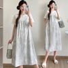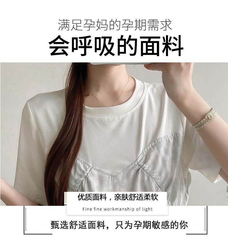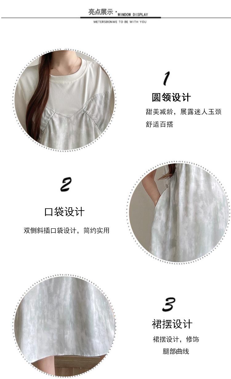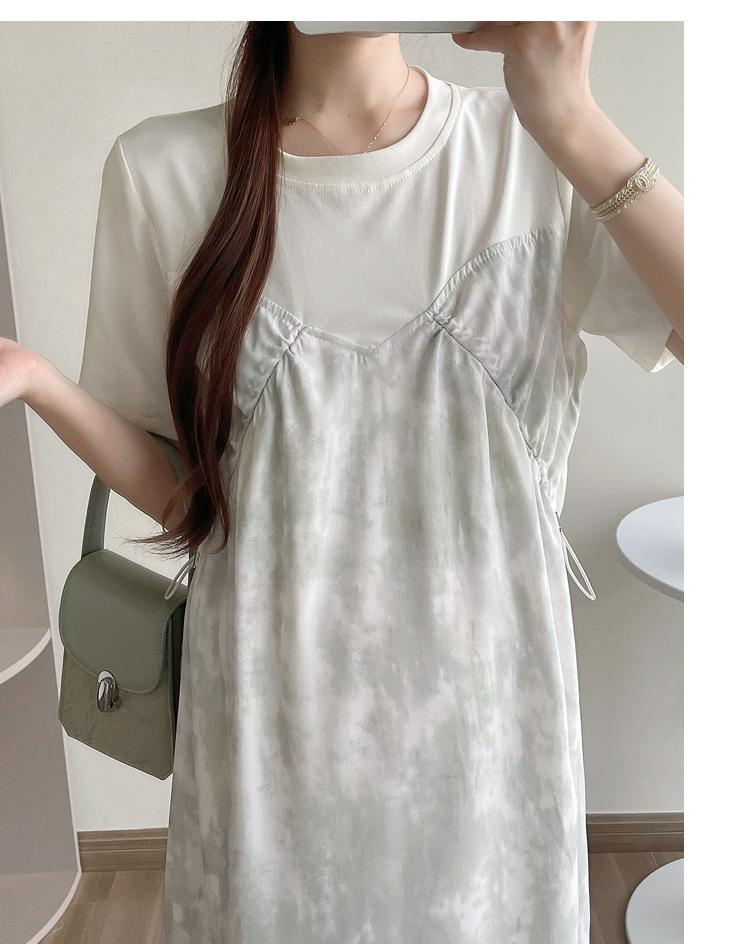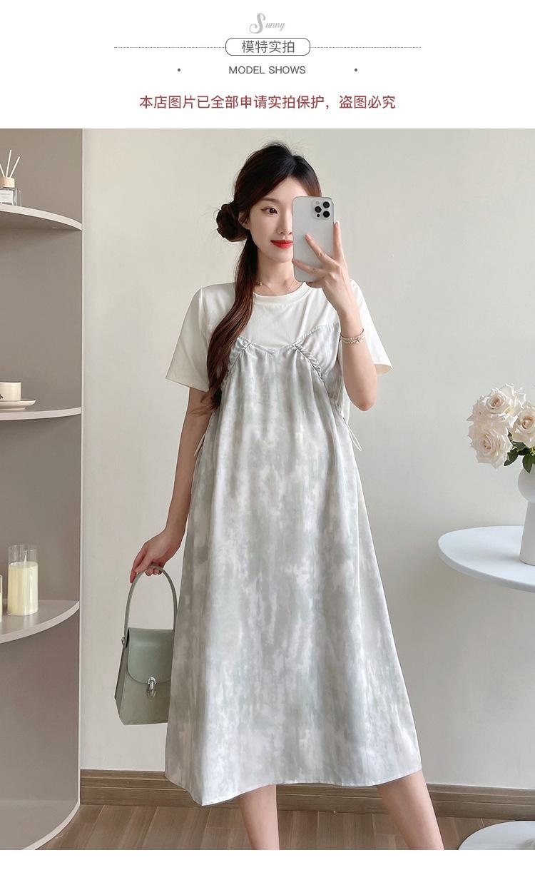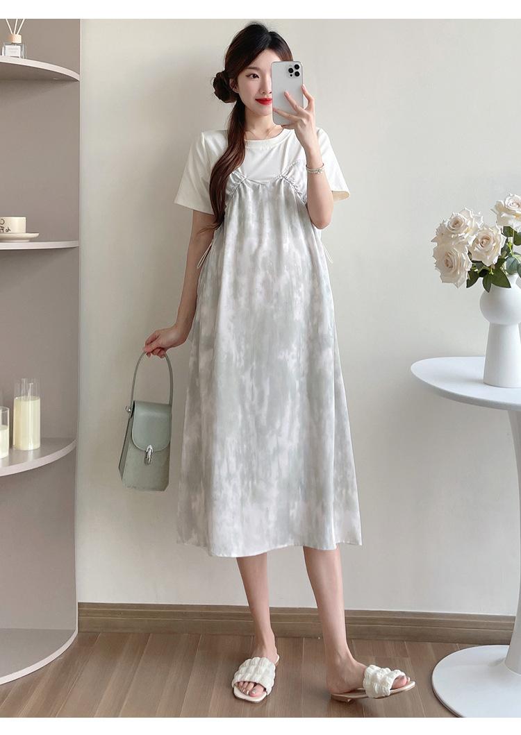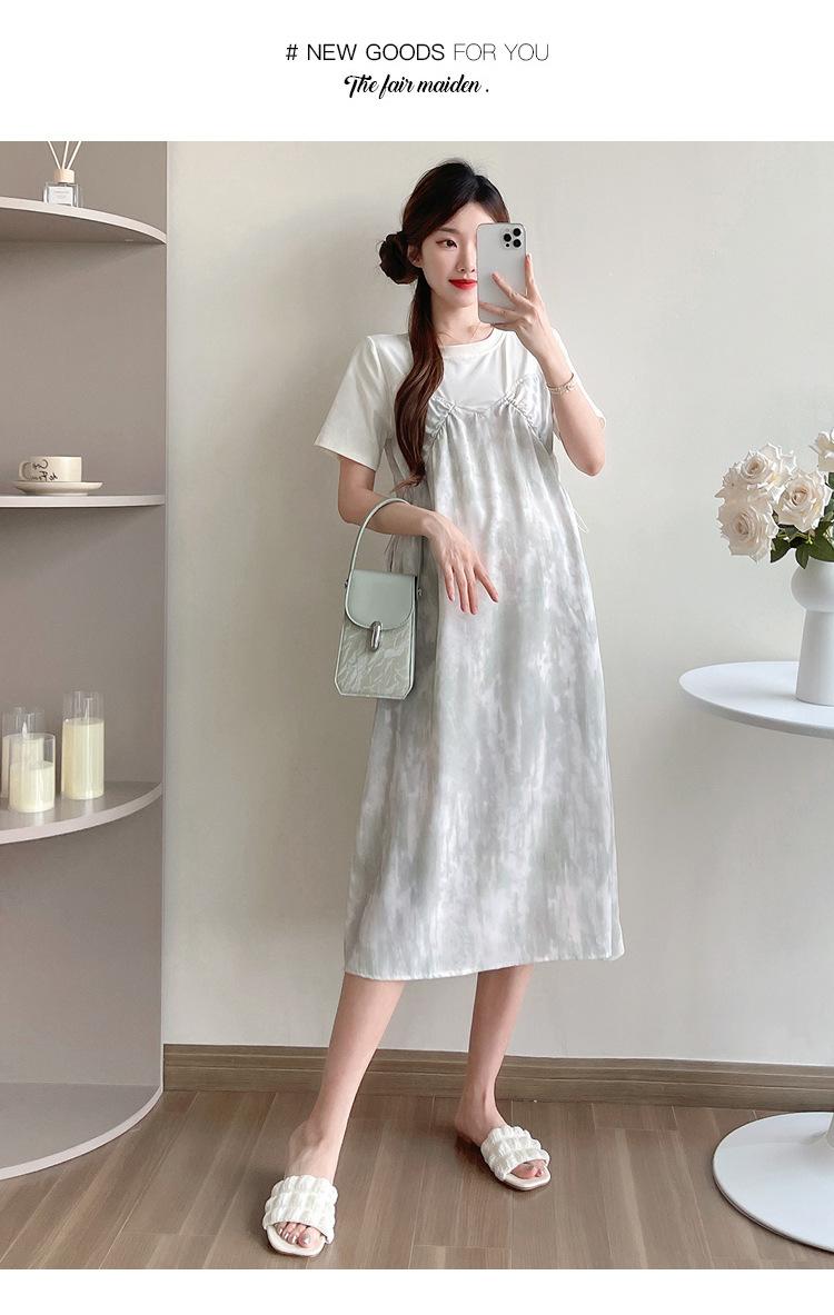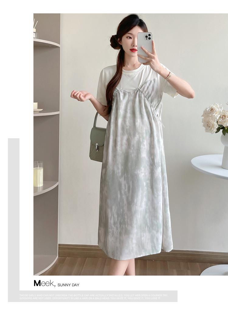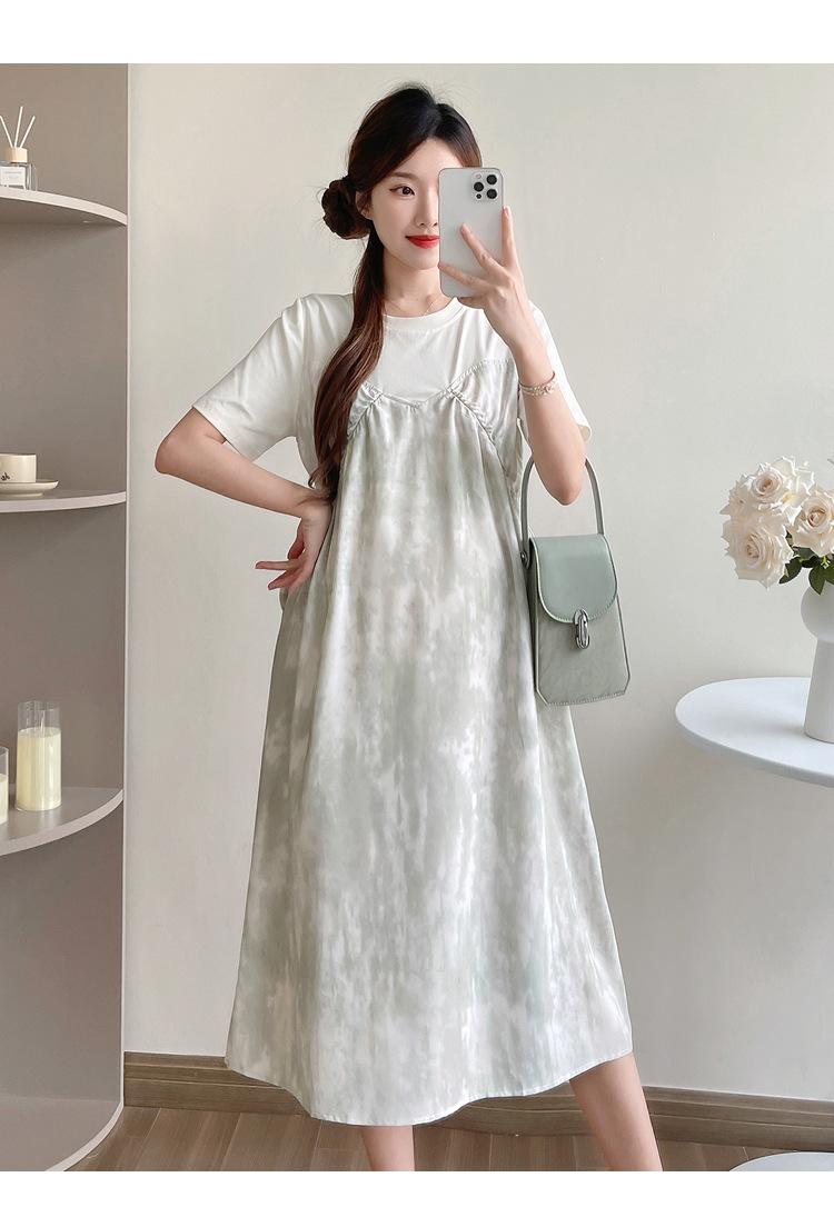 Maternidad 2025 Verano Nueva Moda Contraste Tie-dye Falso Dos Piezas Costura Suelto Adelgazante Talla Grande Vestido