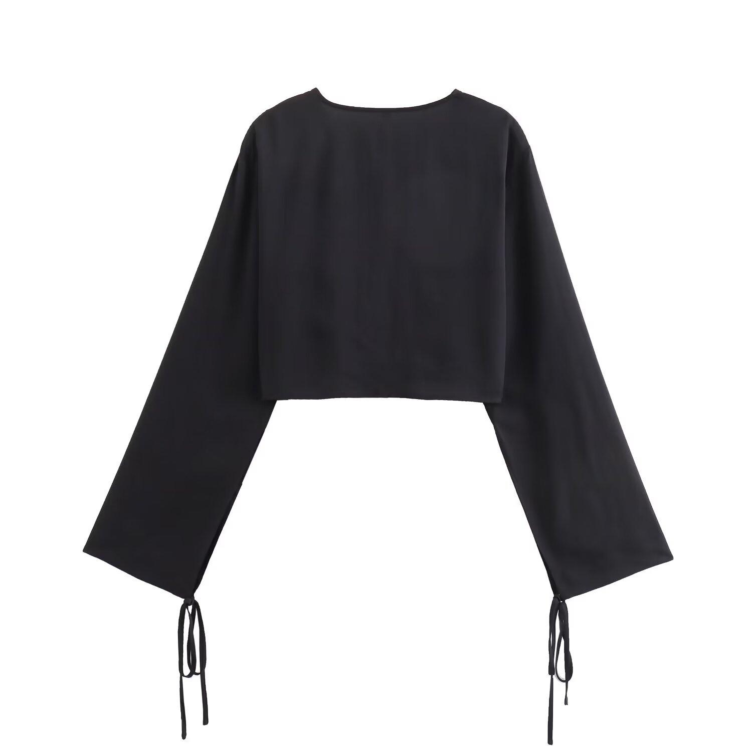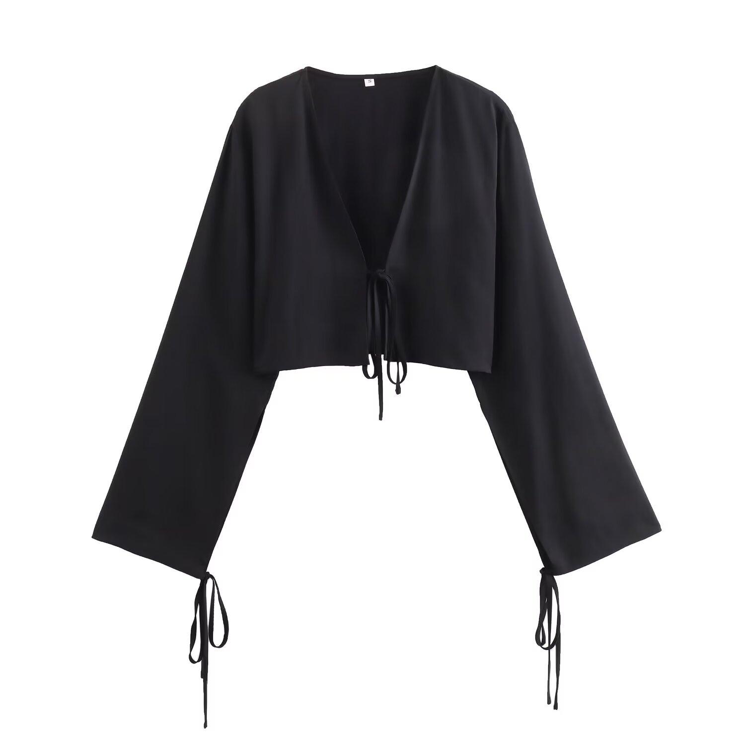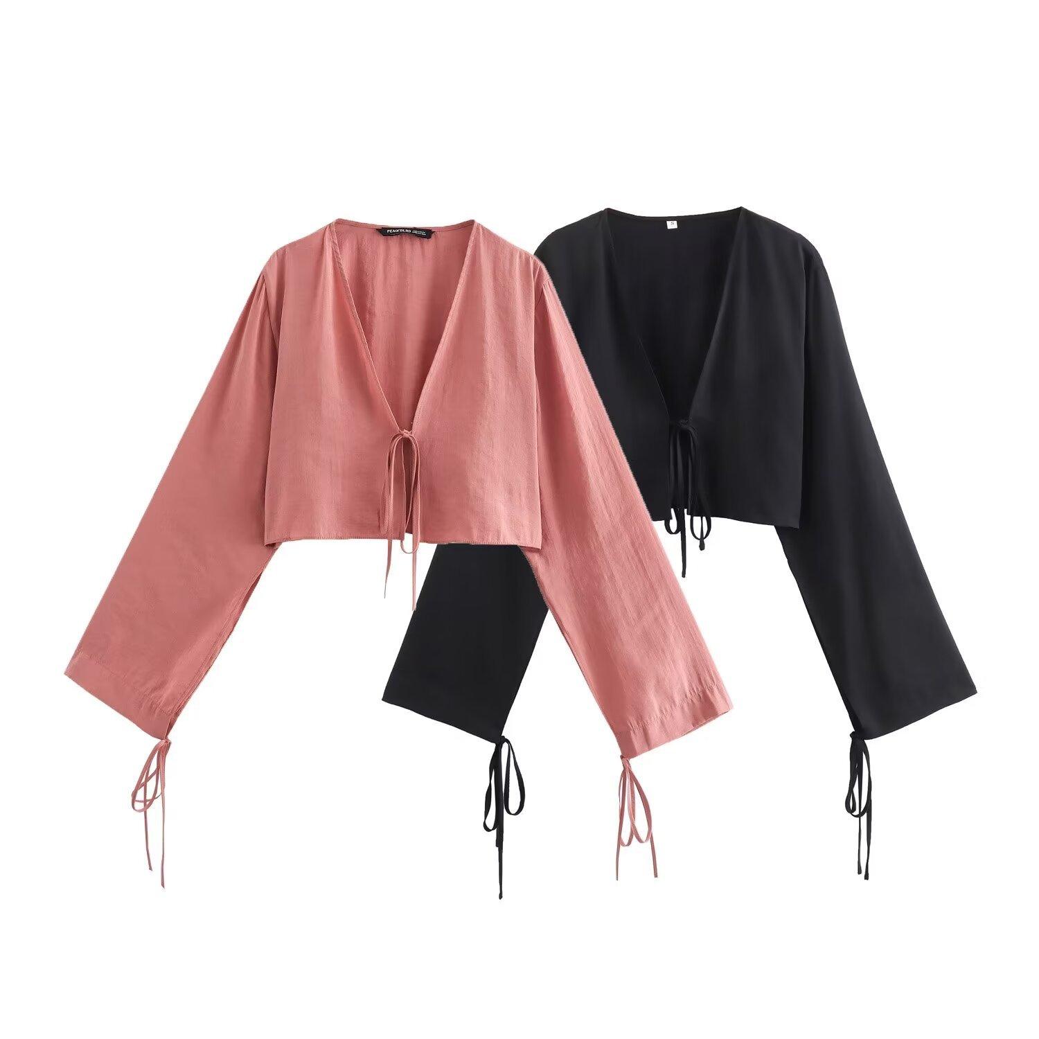 2024 verano nuevo Europeo y Americano transfronterizo moda para mujer lazo colgante camisa corta