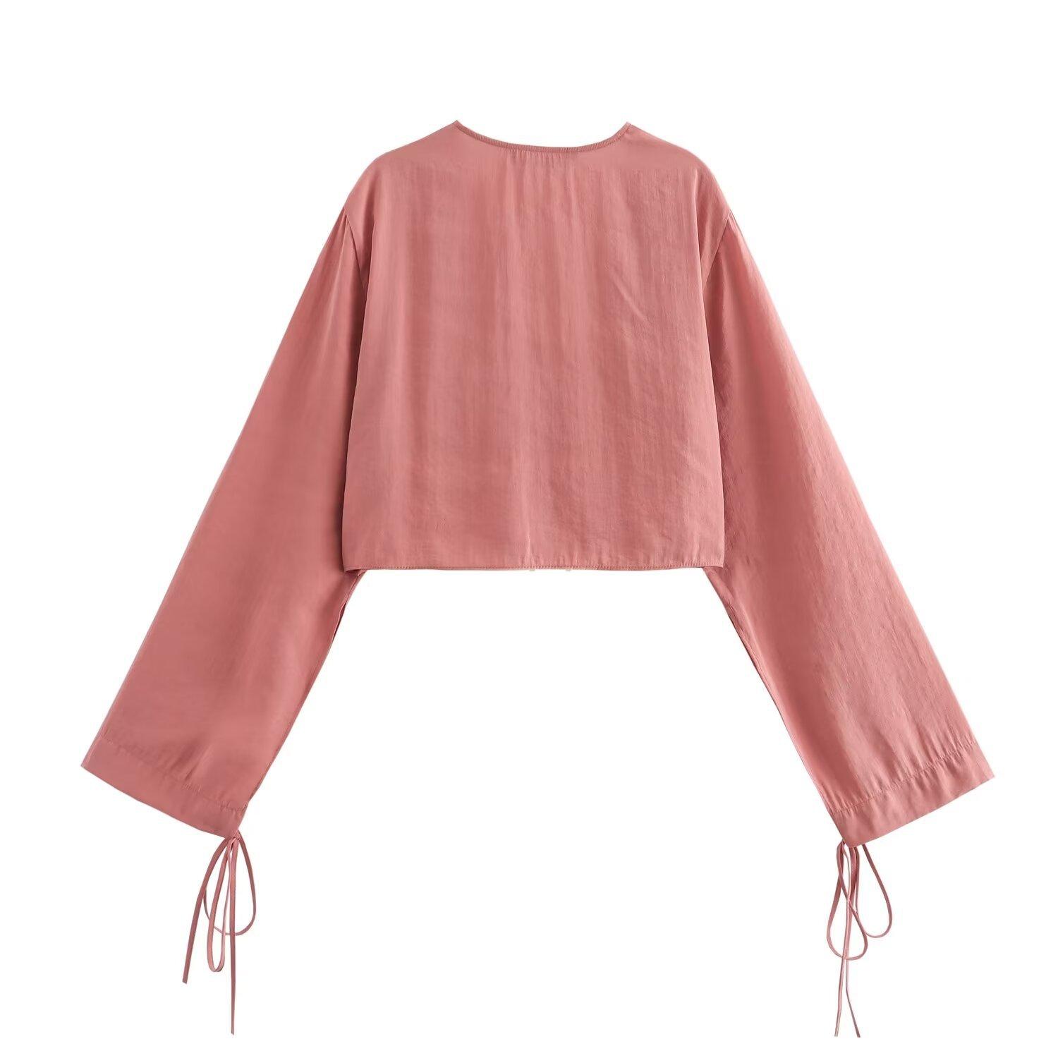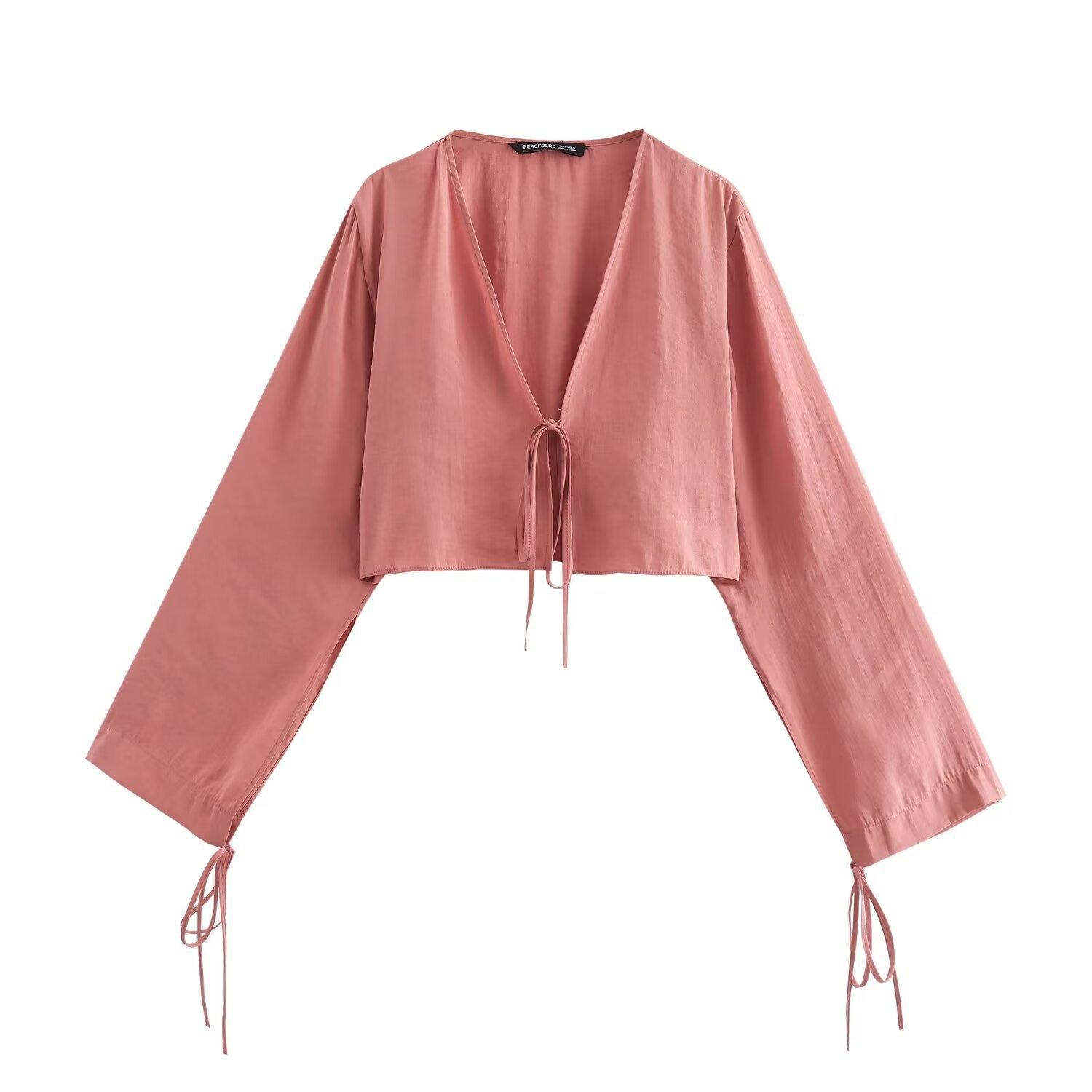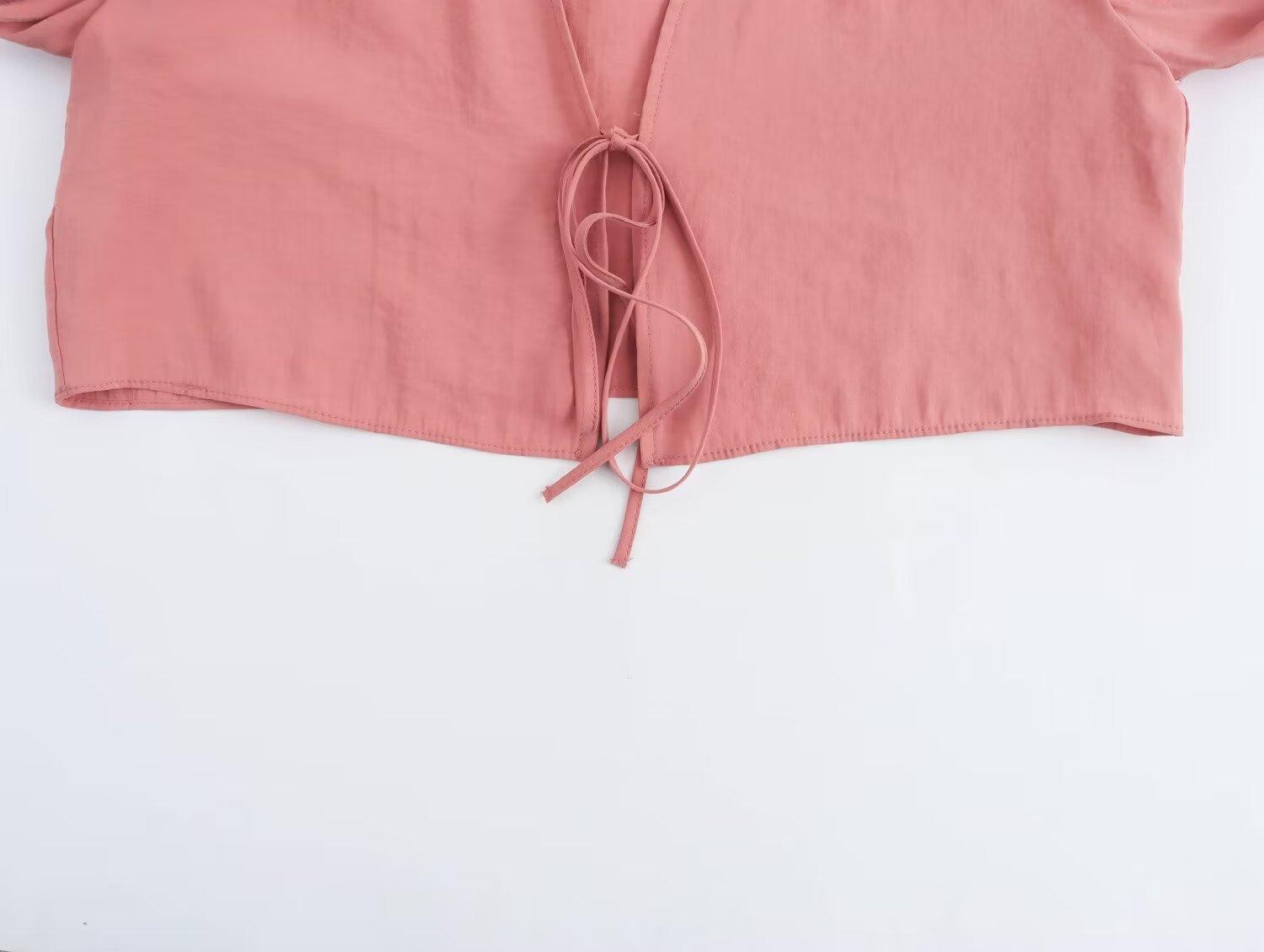2024 verano nuevo Europeo y Americano transfronterizo moda para mujer lazo colgante camisa corta