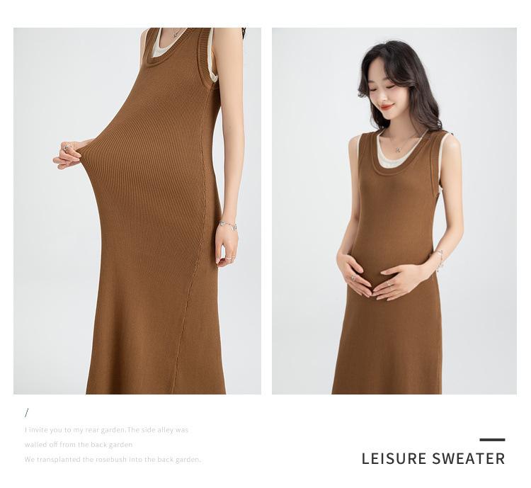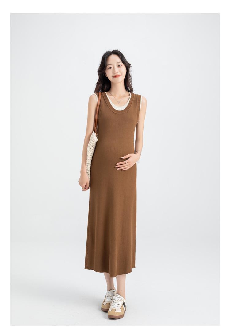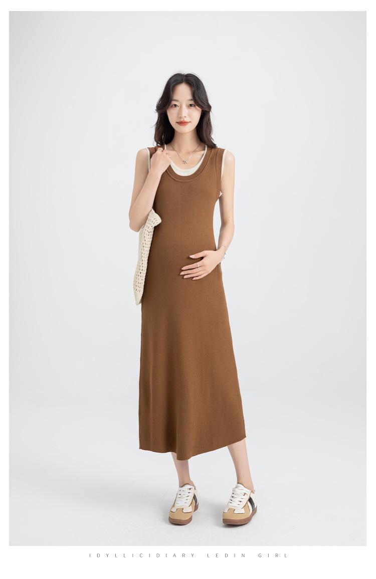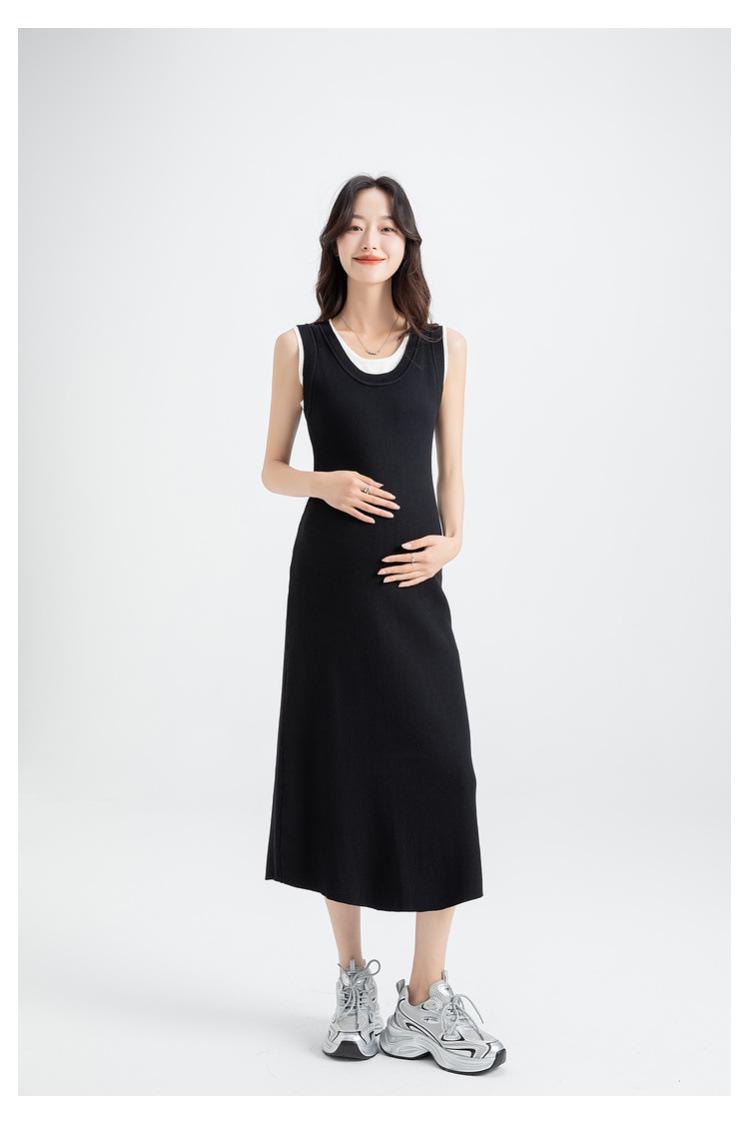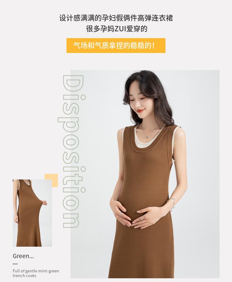 Ropa de Maternidad 2025 Verano Nuevo Estilo Coreano Moda Elegante Sencillo Conjunto Falso de Dos Piezas Empalmado Vestido de Maternidad Holgado