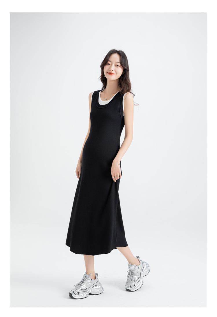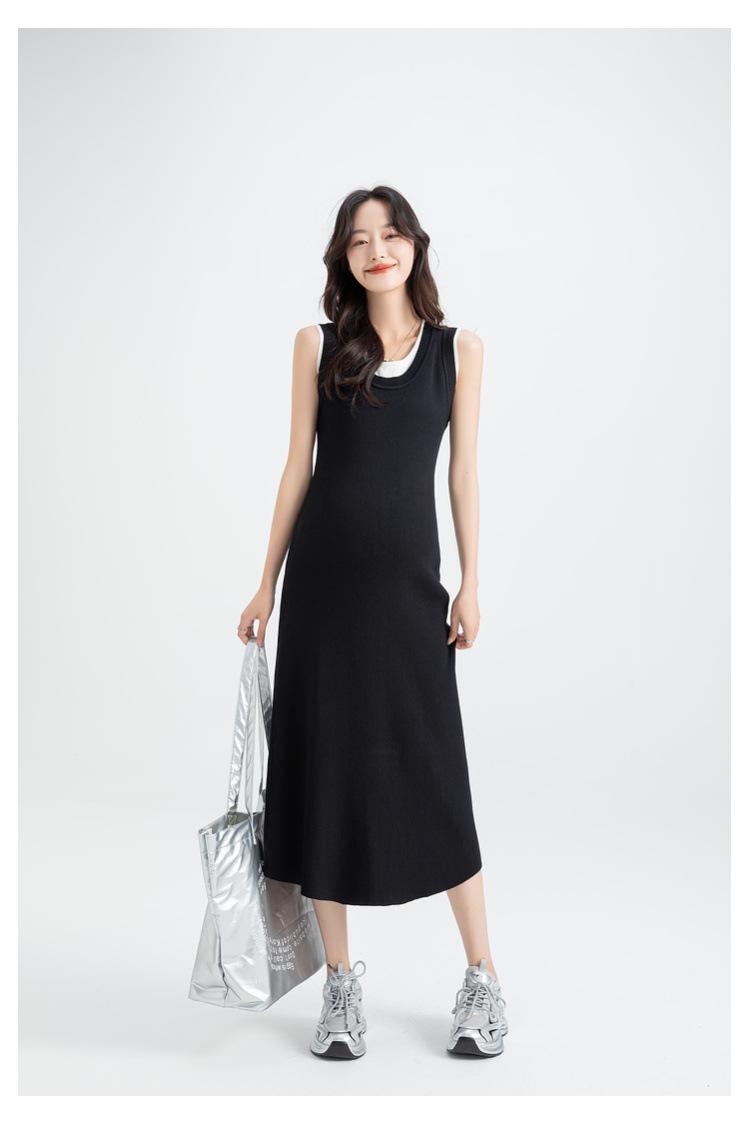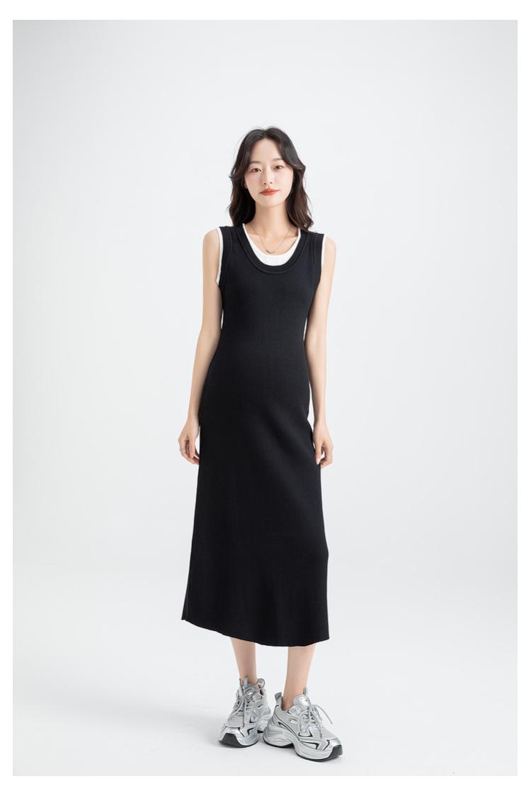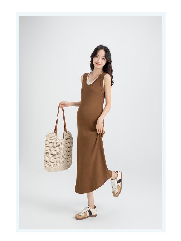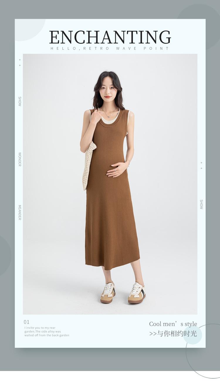 Ropa de Maternidad 2025 Verano Nuevo Estilo Coreano Moda Elegante Sencillo Conjunto Falso de Dos Piezas Empalmado Vestido de Maternidad Holgado