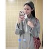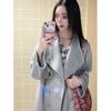 2025 Nuevo Abrigo de Lana de Otoño e Invierno Estilo Coreano Pequeño Invierno Largo Medio Gris Abrigo de Lana para Mujer
