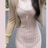 2025 Nuevo Traje de Dos Piezas Estilo Coreano Atmósfera Falda Cárdigan de Punto con Tirantes Vestido Cubre Caderas para Mujer