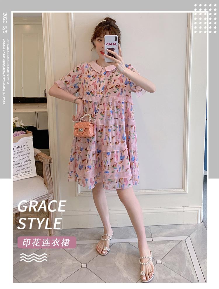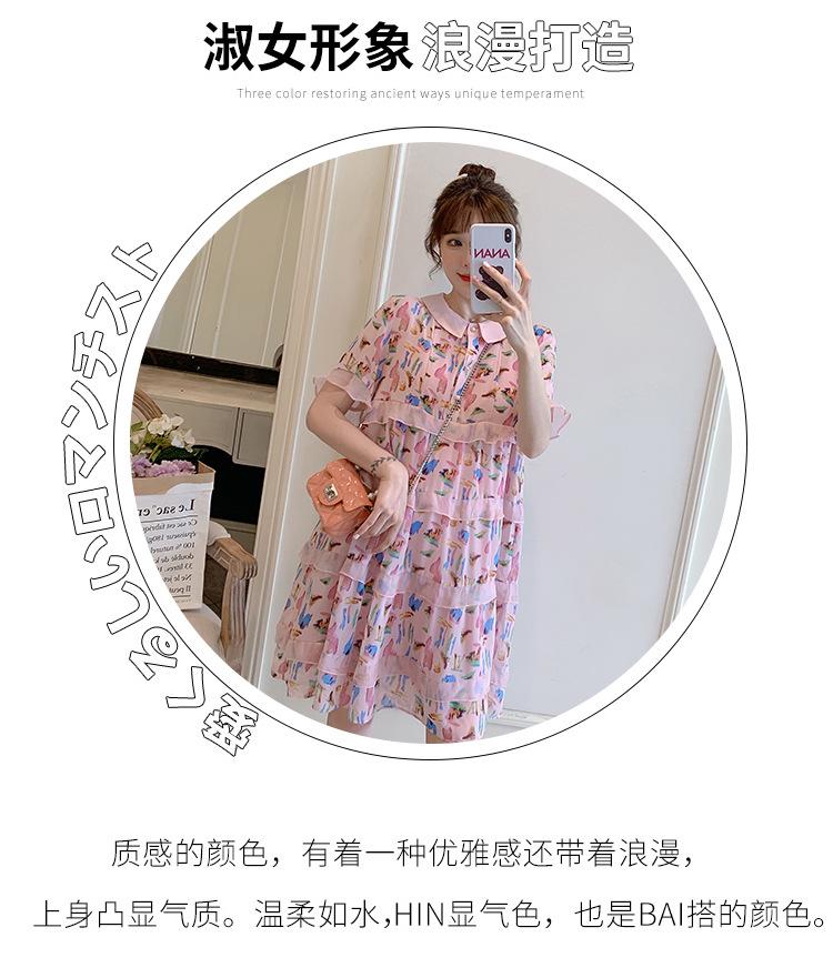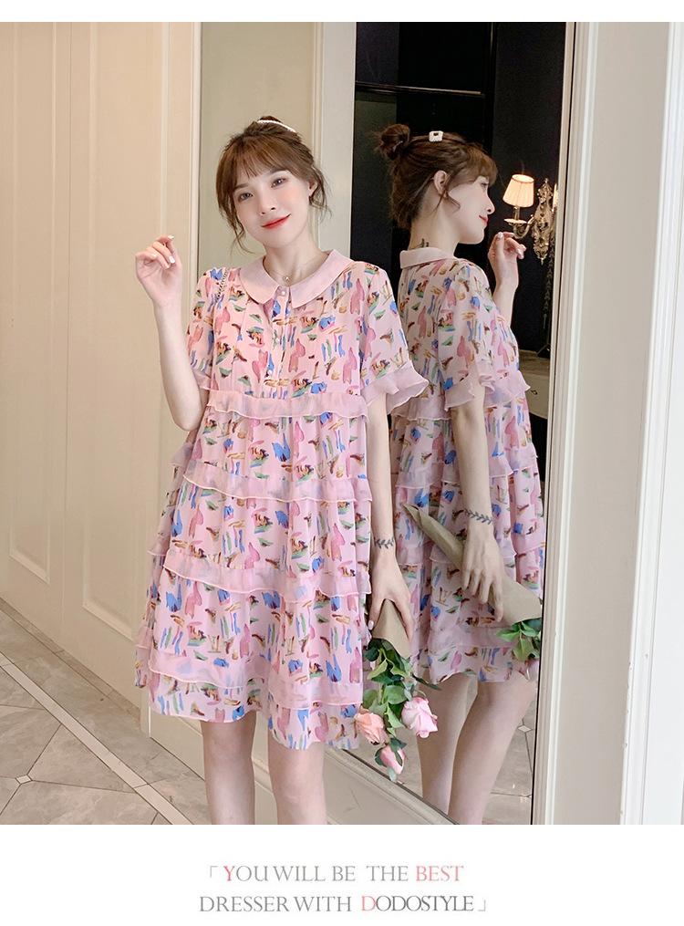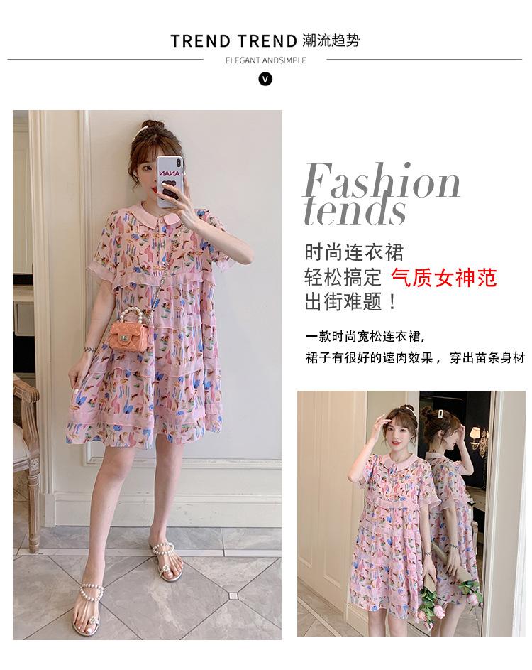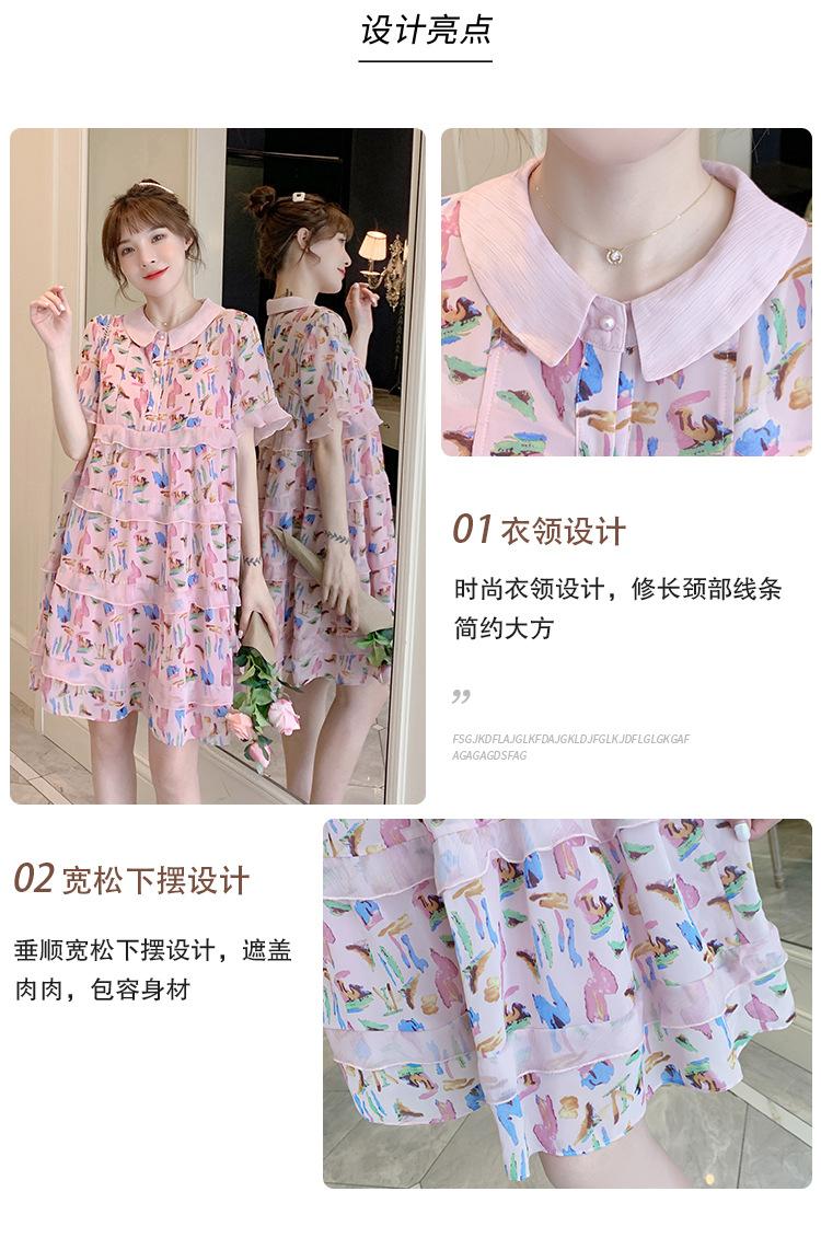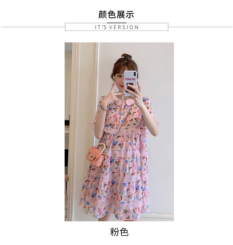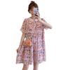 Vestido de Maternidad 2025 Verano Nuevo Dulce Gasa Estampado Falda Pastel Suelto Talla Grande Vestido para Mujeres Embarazadas