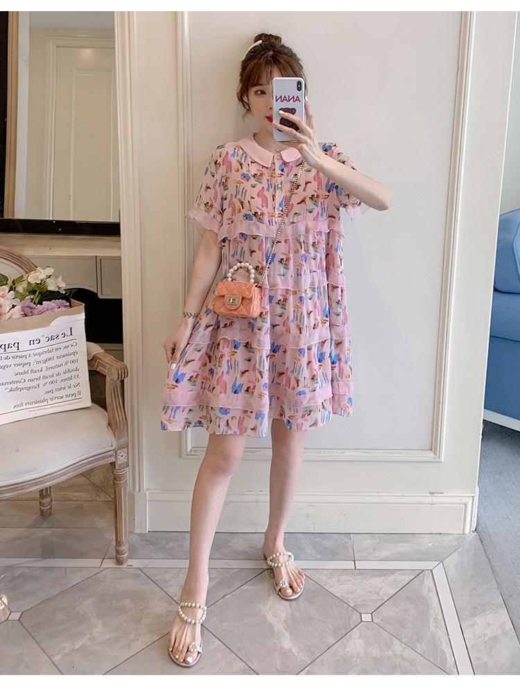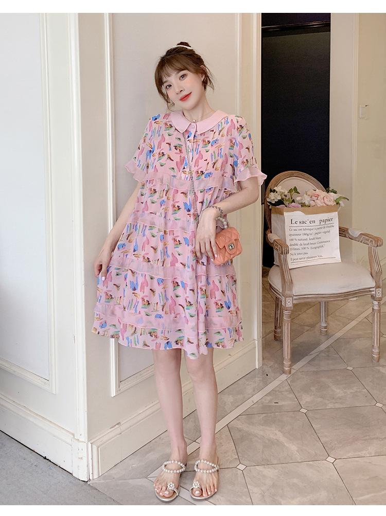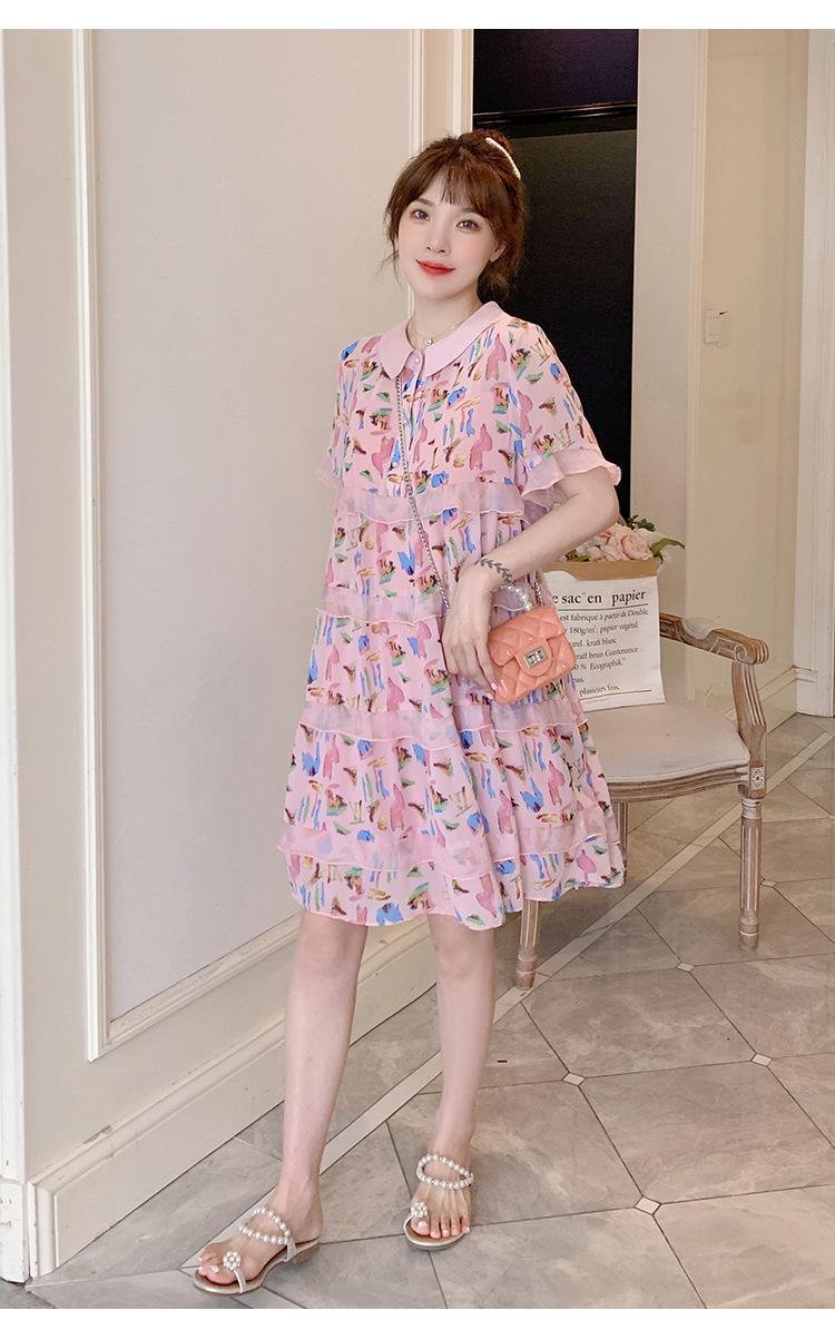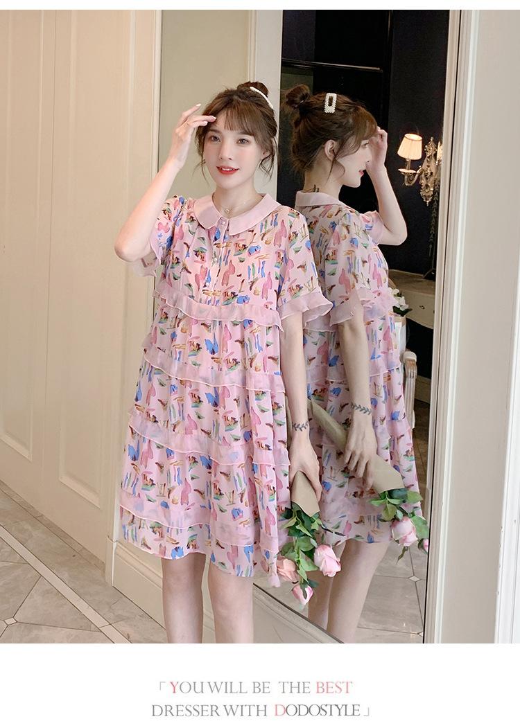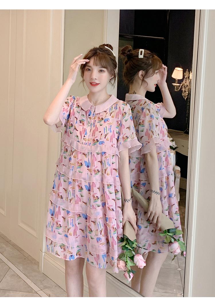 Vestido de Maternidad 2025 Verano Nuevo Dulce Gasa Estampado Falda Pastel Suelto Talla Grande Vestido para Mujeres Embarazadas