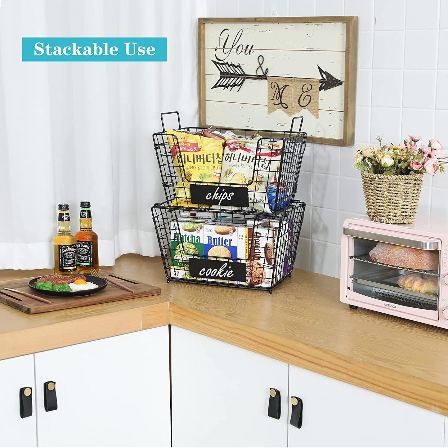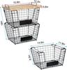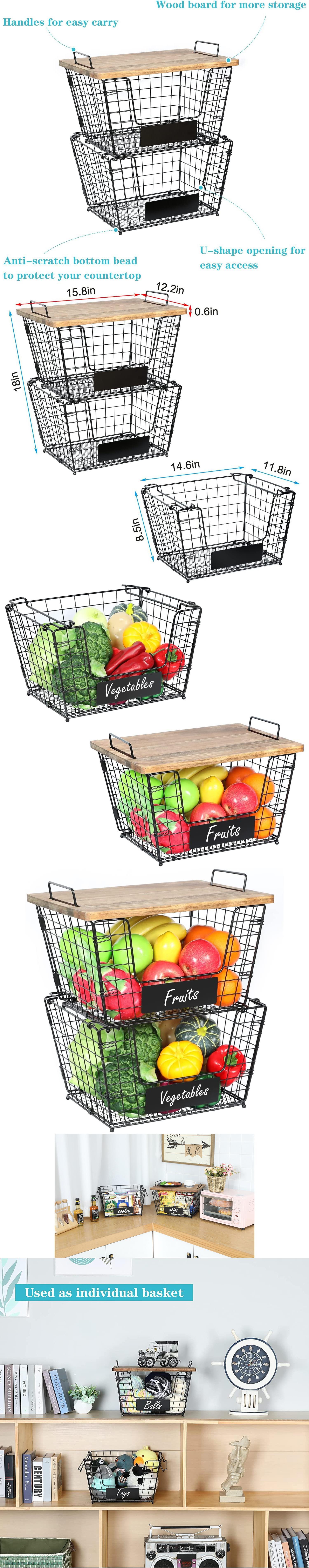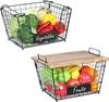 Estante de Almacenamiento de Metal Cesta de Almacenamiento Apilable Cesta de Almacenamiento de Verduras y Frutas con Tabla de Madera