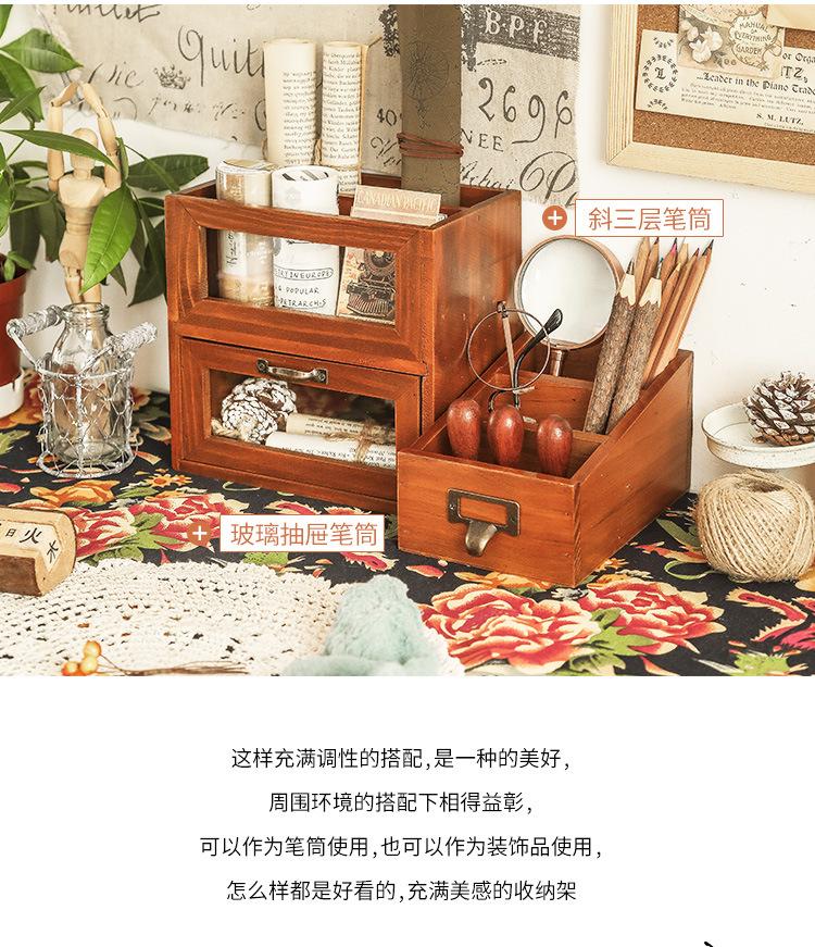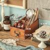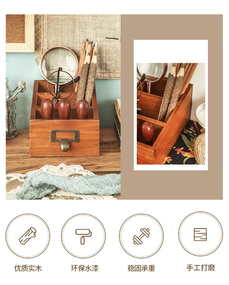Estante de Almacenamiento de Escritorio Control Remoto Papelería Caja de Almacenamiento de Escritorio Lápiz de Escritorio Caja Pequeña de Madera Soporte para Lápices Brochas de Maquillaje