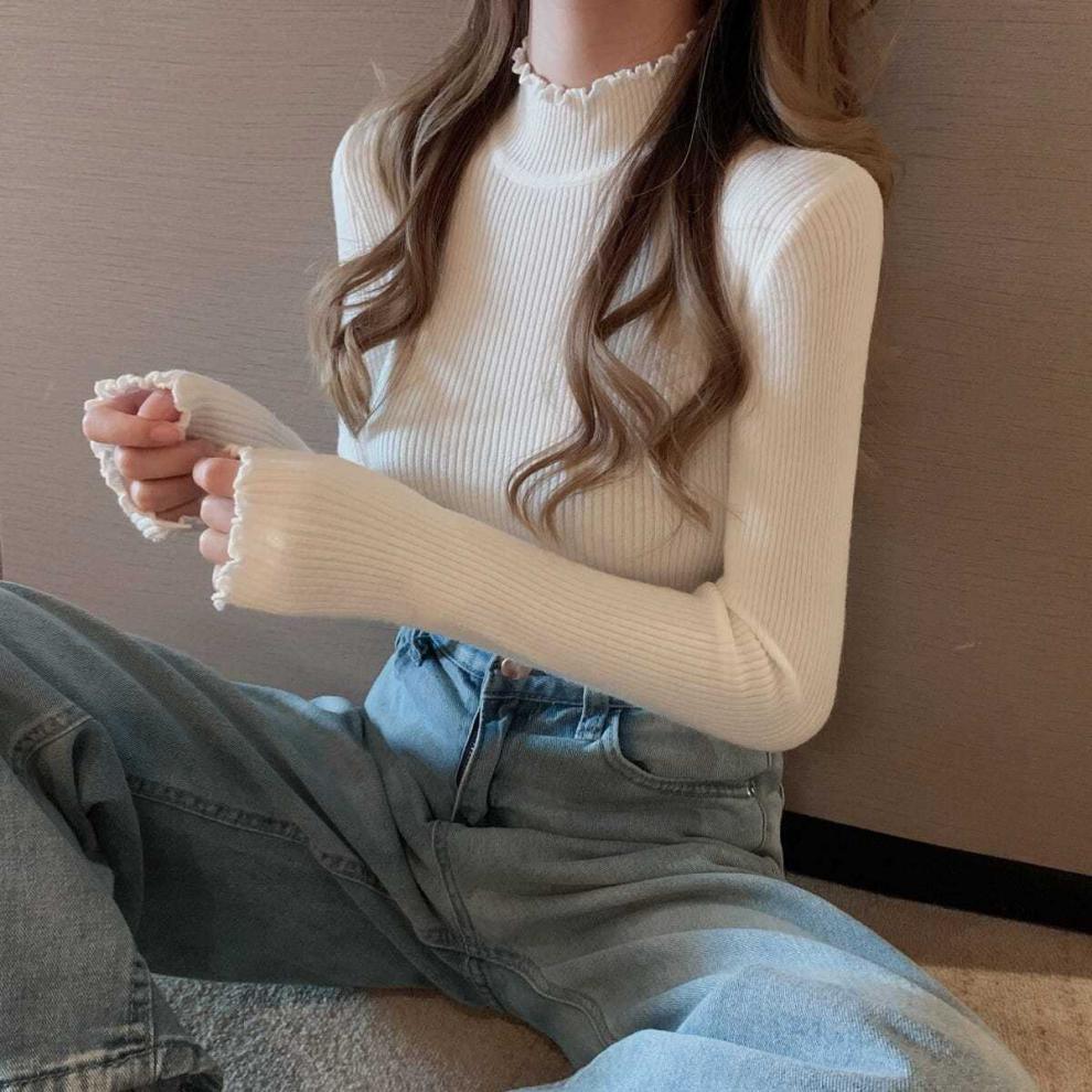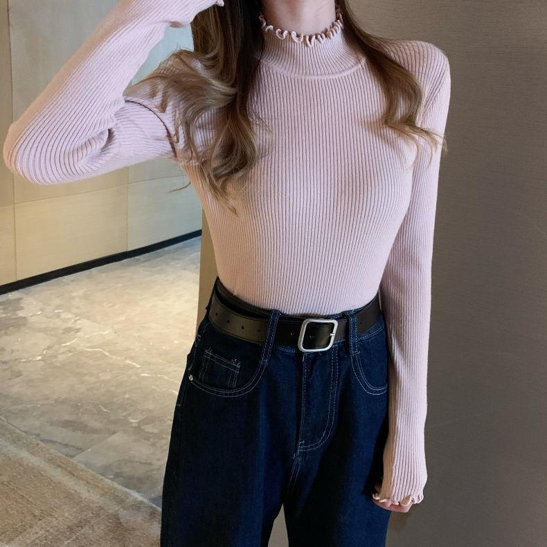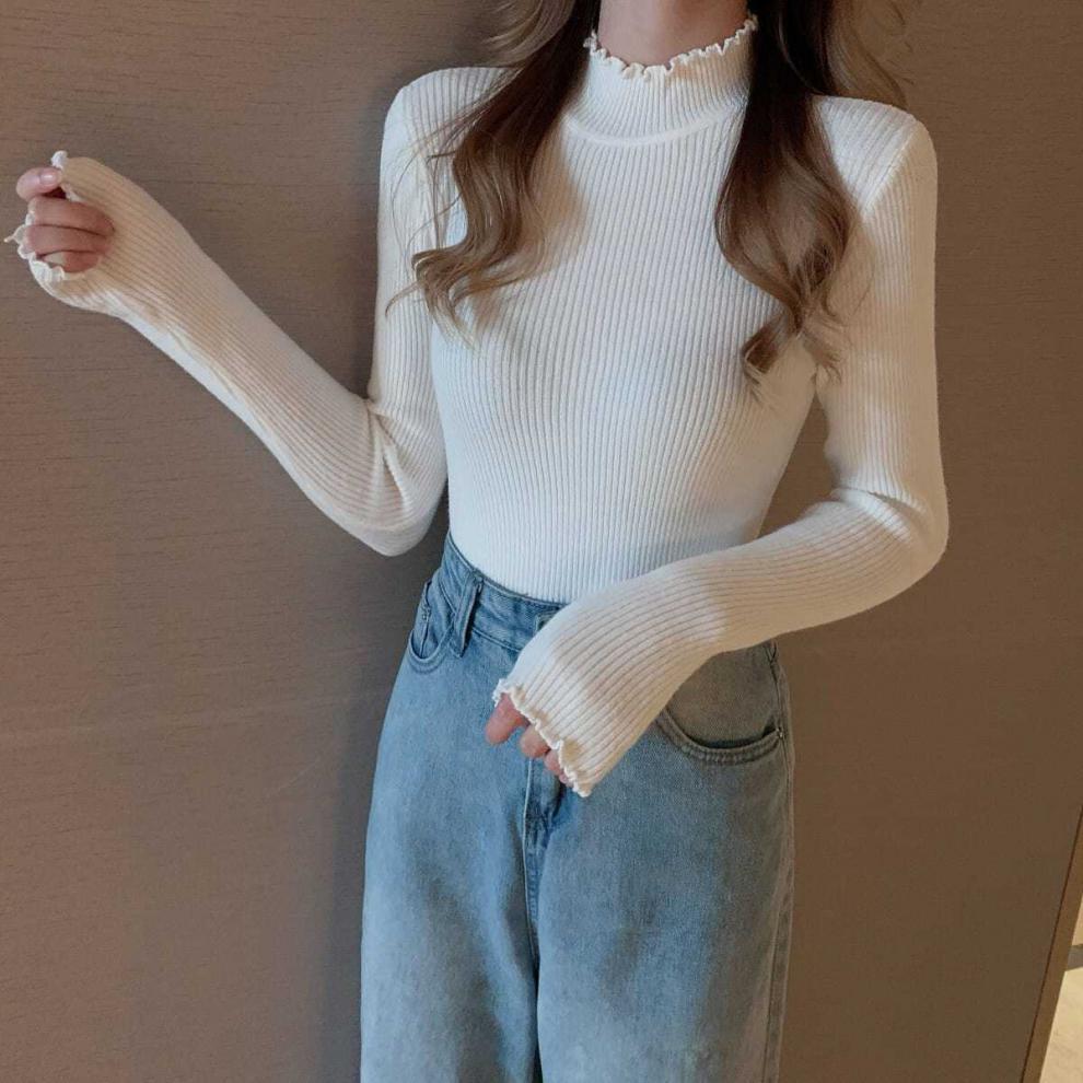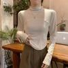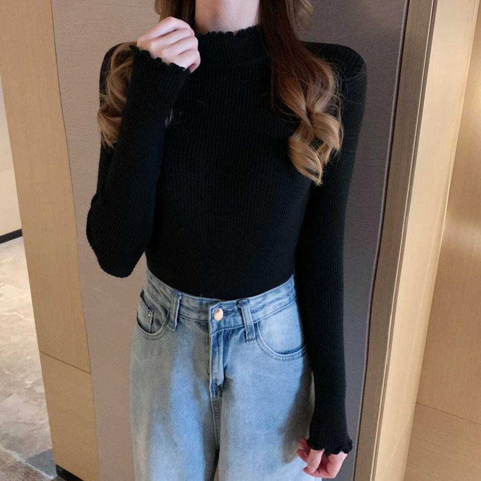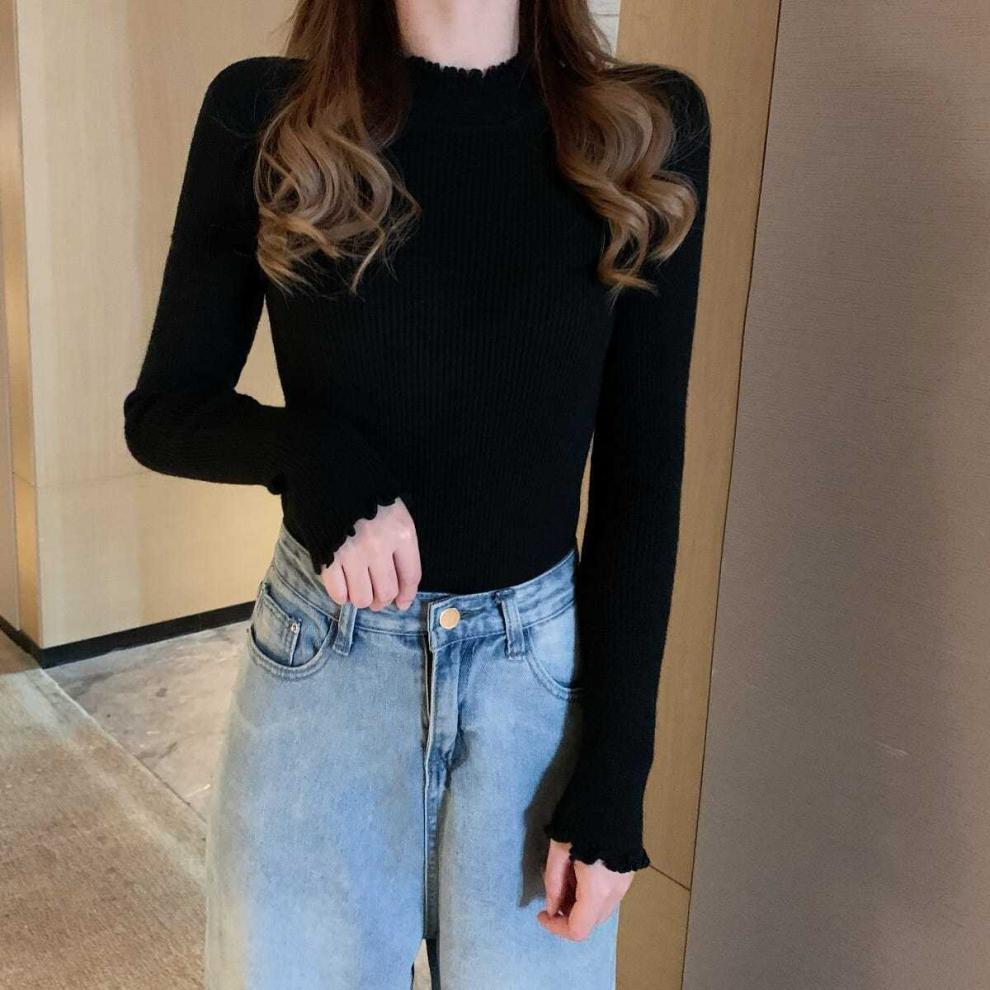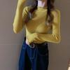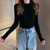Camiseta básica de cuello alto para mujer otoño e invierno 2023 nueva versátil corte ajustado adelgazante top interior suéter negro de manga larga