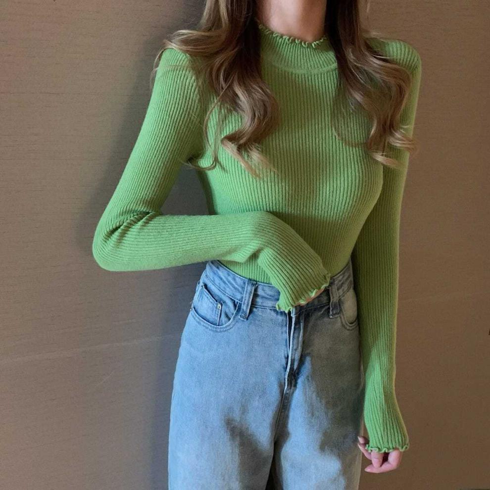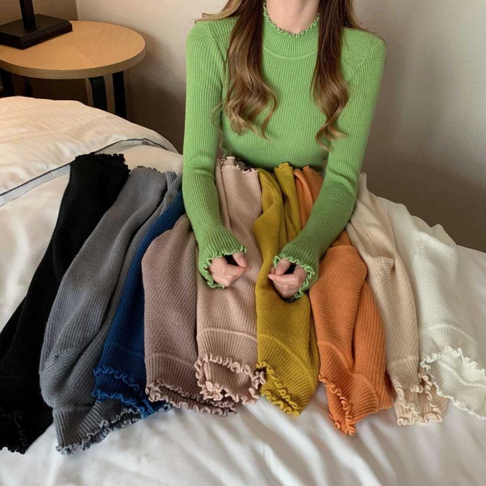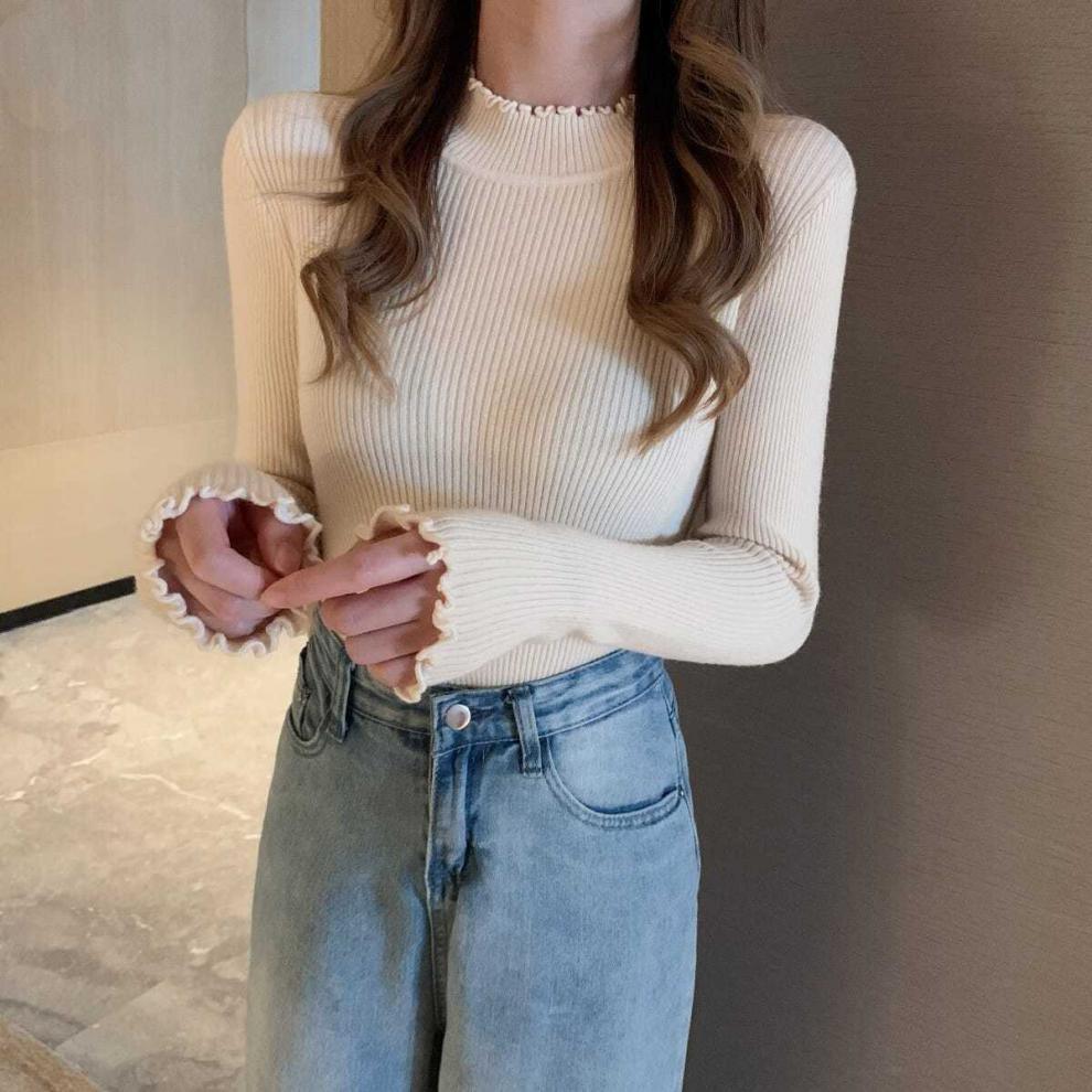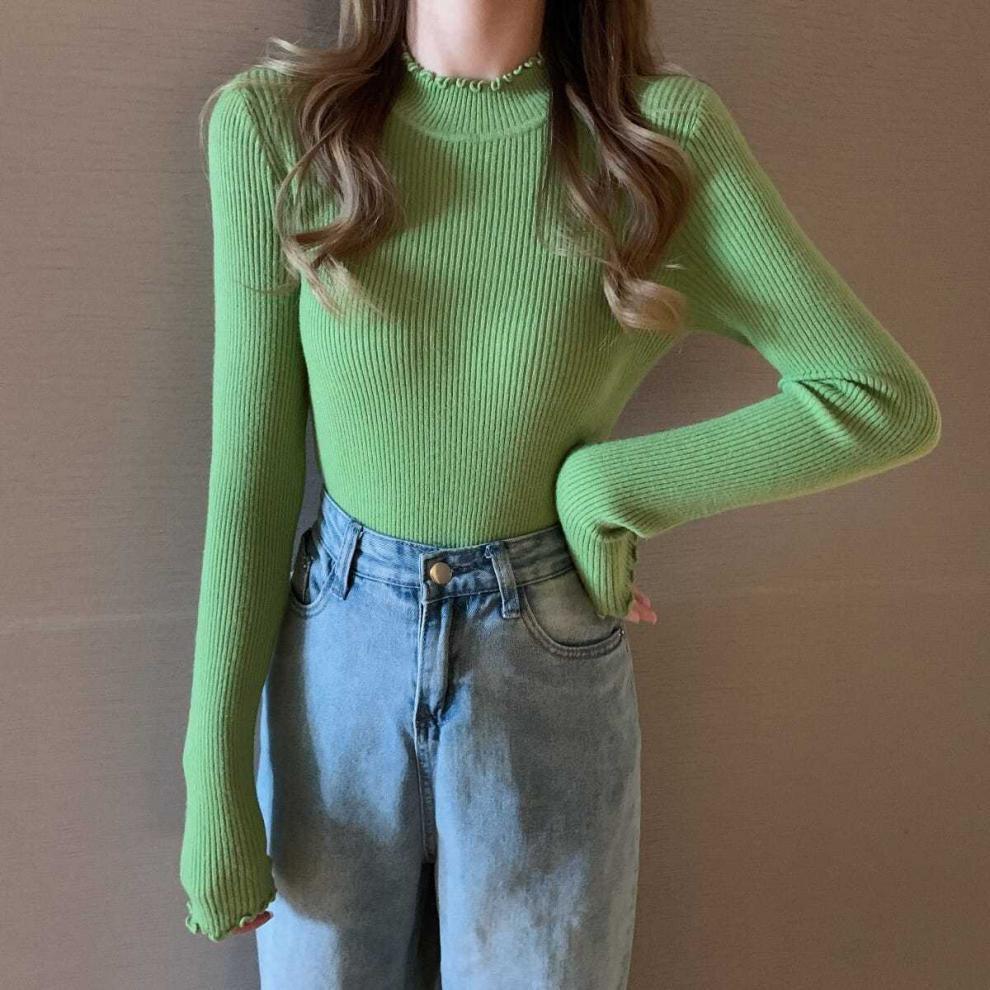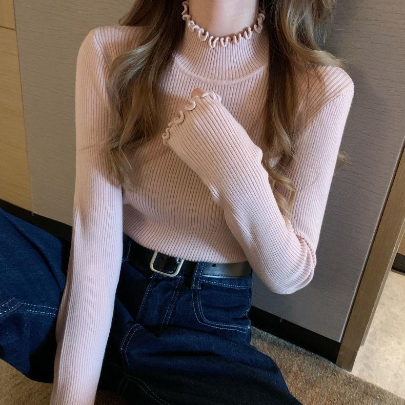Camiseta básica de cuello alto para mujer otoño e invierno 2023 nueva versátil corte ajustado adelgazante top interior suéter negro de manga larga