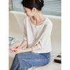 Camisa francesa para mujer, diseño de nicho, estilo ligero y maduro, top holgado de manga corta para verano 2025.