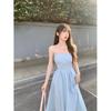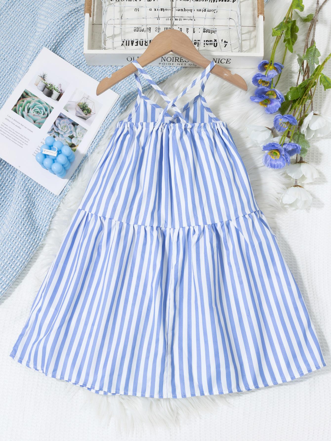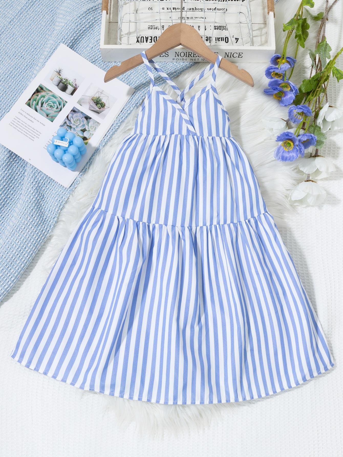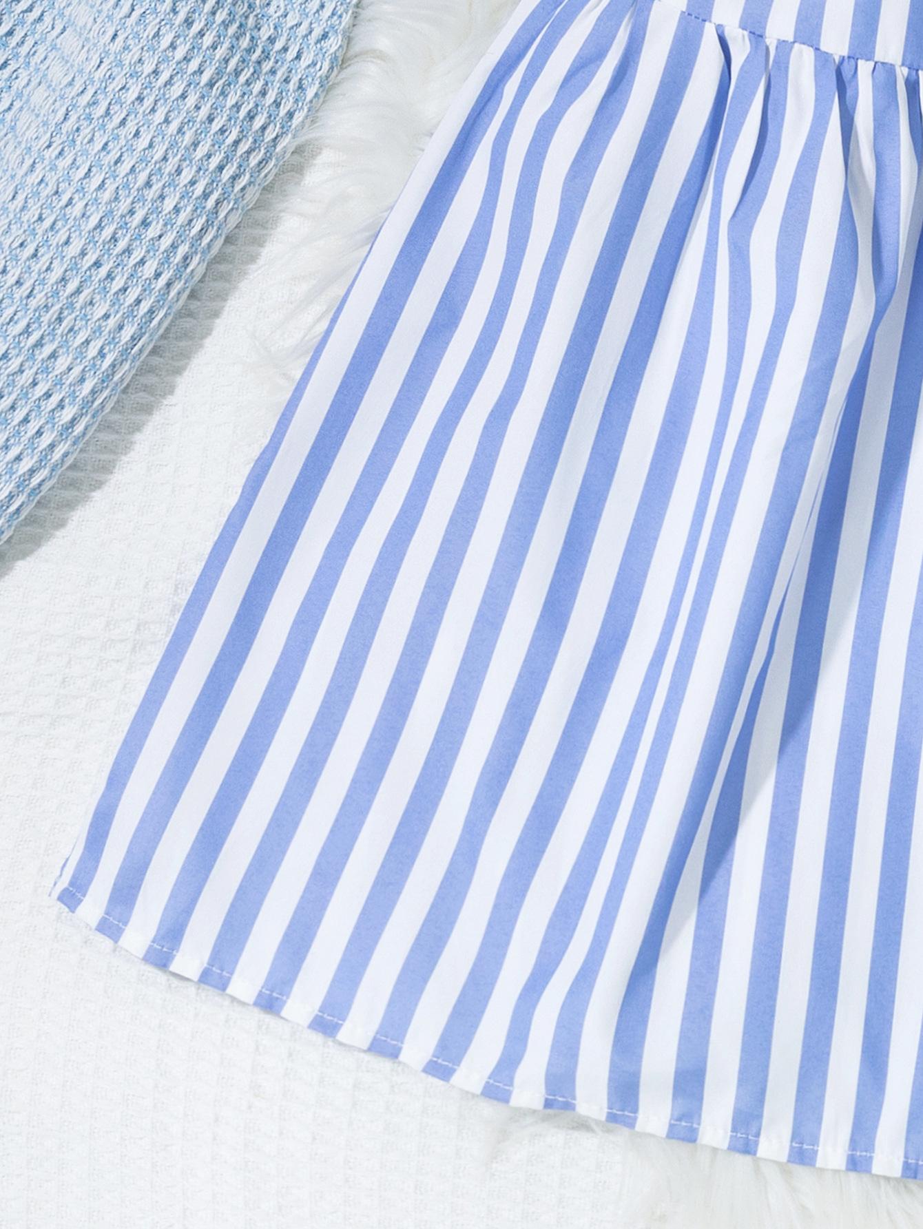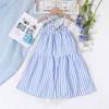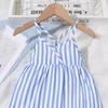 2024 Nuevo Estilo de Verano Vestido Resort Estilo Peto Pequeño de Rayas Verticales Azules y Blancas