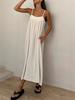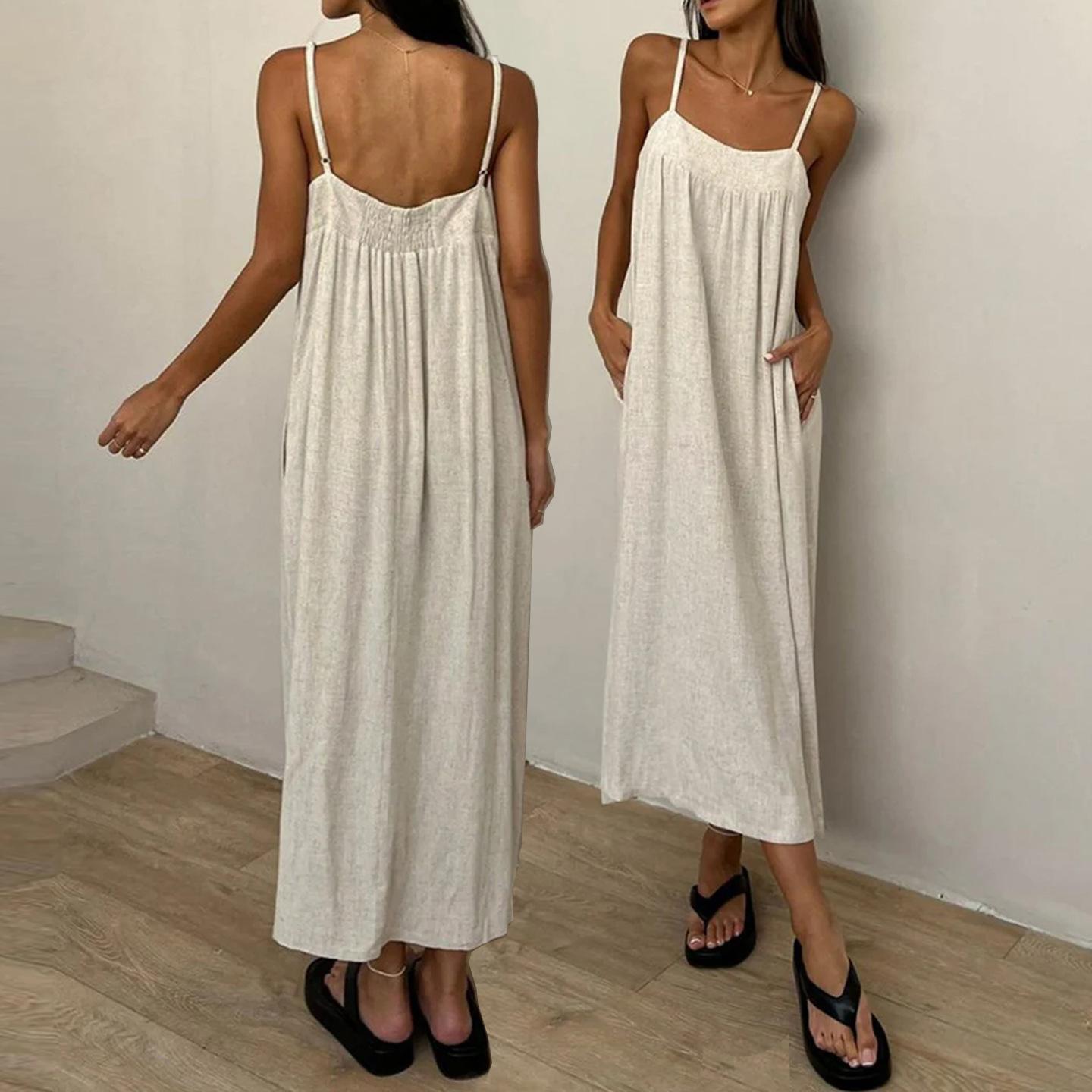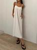 Otoño 2025 Ropa de Mujer Transfronteriza Europea y Americana Vestido de Tirantes Sin Mangas Descubierto Color Sólido Cuadros Transpirable Suelto Falda Larga