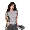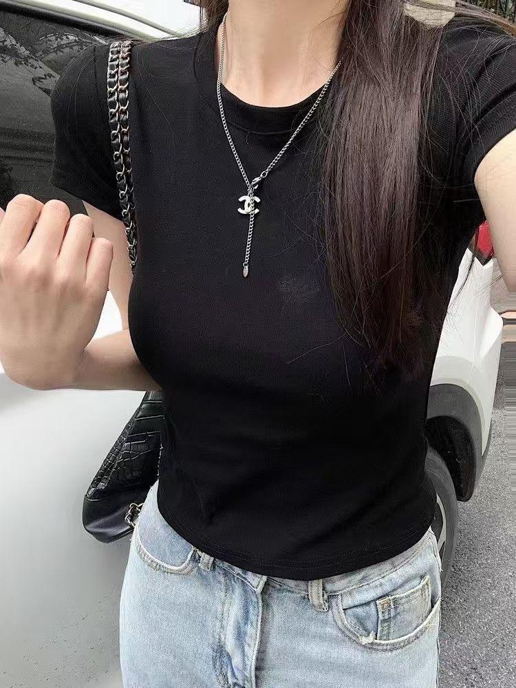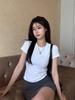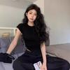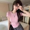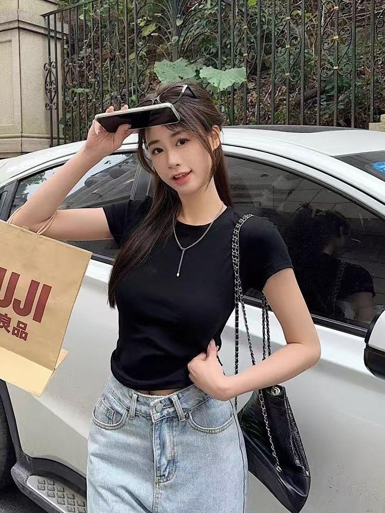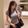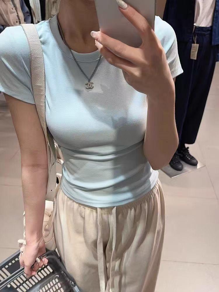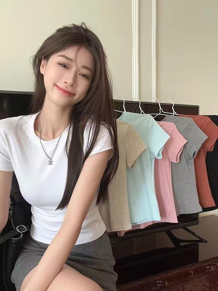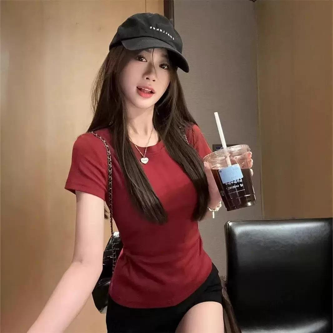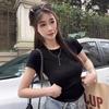 Playera de Manga Corta con Hombro Derecho Descubierto para Mujer Nuevo Verano Casual Coreana Color Puro Exportación Top Camiseta Básica Ajustada Elástica para Mujer