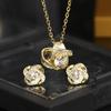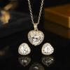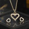 Nuevo Metal Transfronterizo Europeo y Americano Cadena Clavicular Moda Accesorios de Alta Gama Collar Aretes de Cobre Chapado en Oro Amor Zircón para Mujer