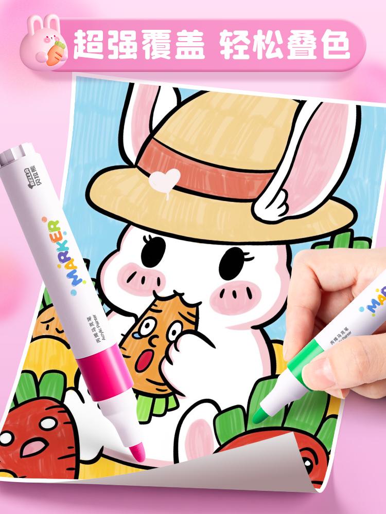 Marcador Acrílico Niños Color Opaco Apilable Estudiante de Primaria Pluma de Acuarela Arte 48 Colores 24 Pinceles Pintura Puede Ser Regada