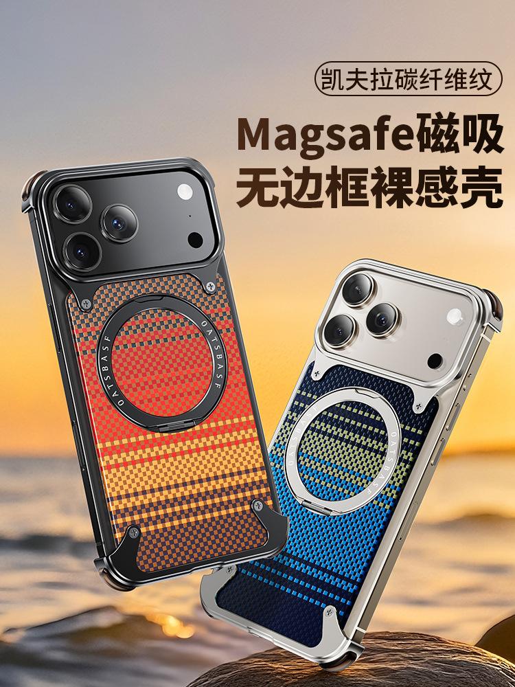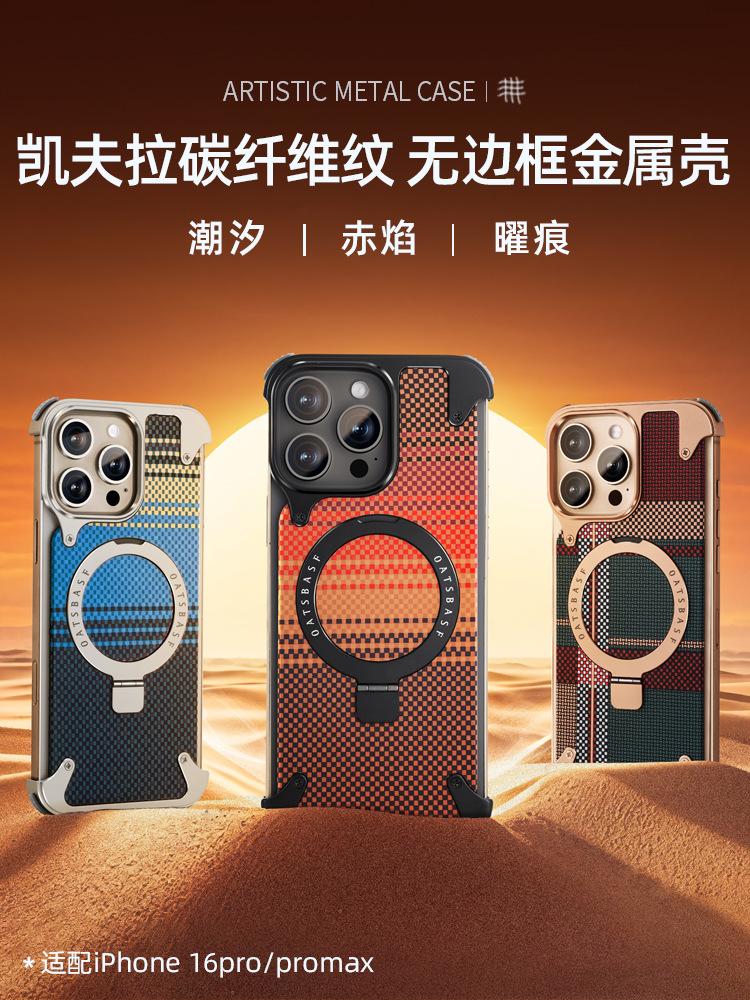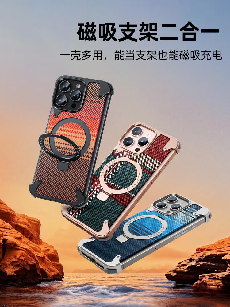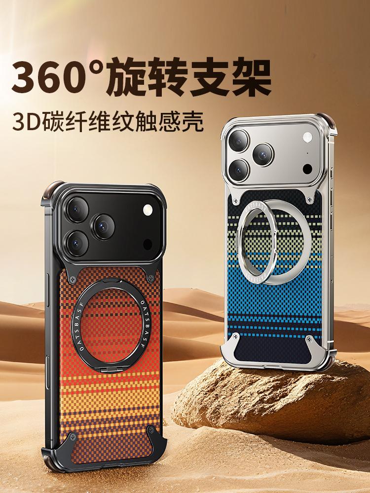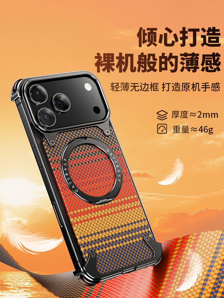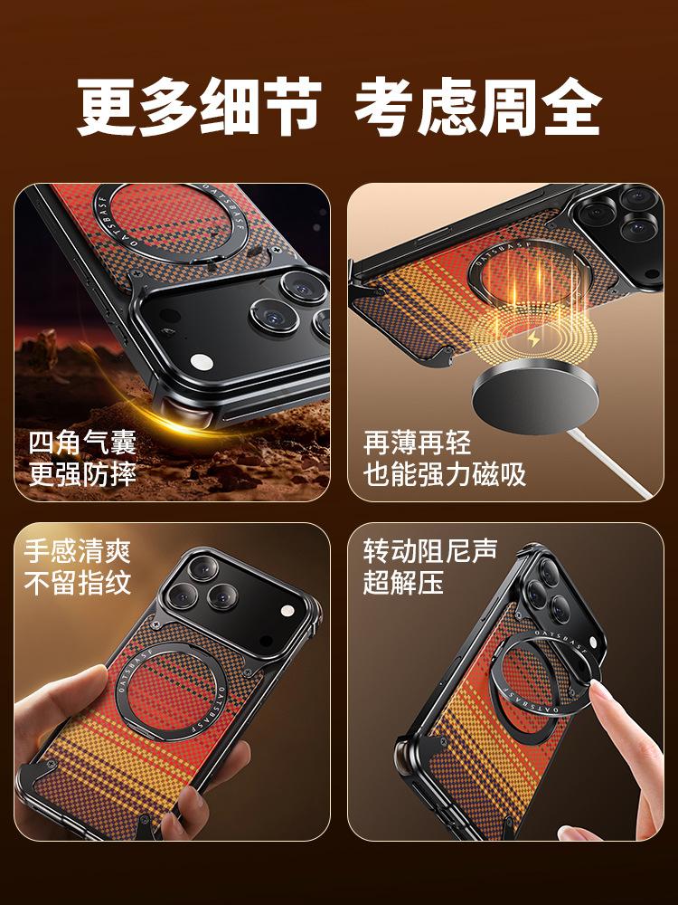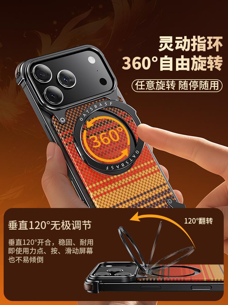 Kevlar es adecuado para la funda de teléfono de fibra de carbono Apple 17 Pro Max con soporte magnético giratorio, 16 Pm funda individual, a prueba de caídas