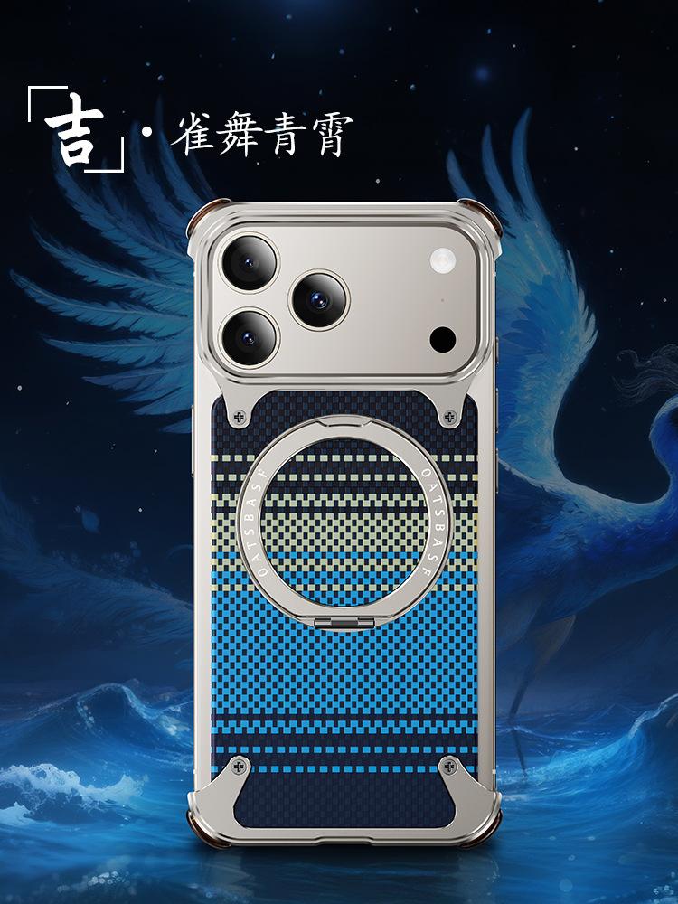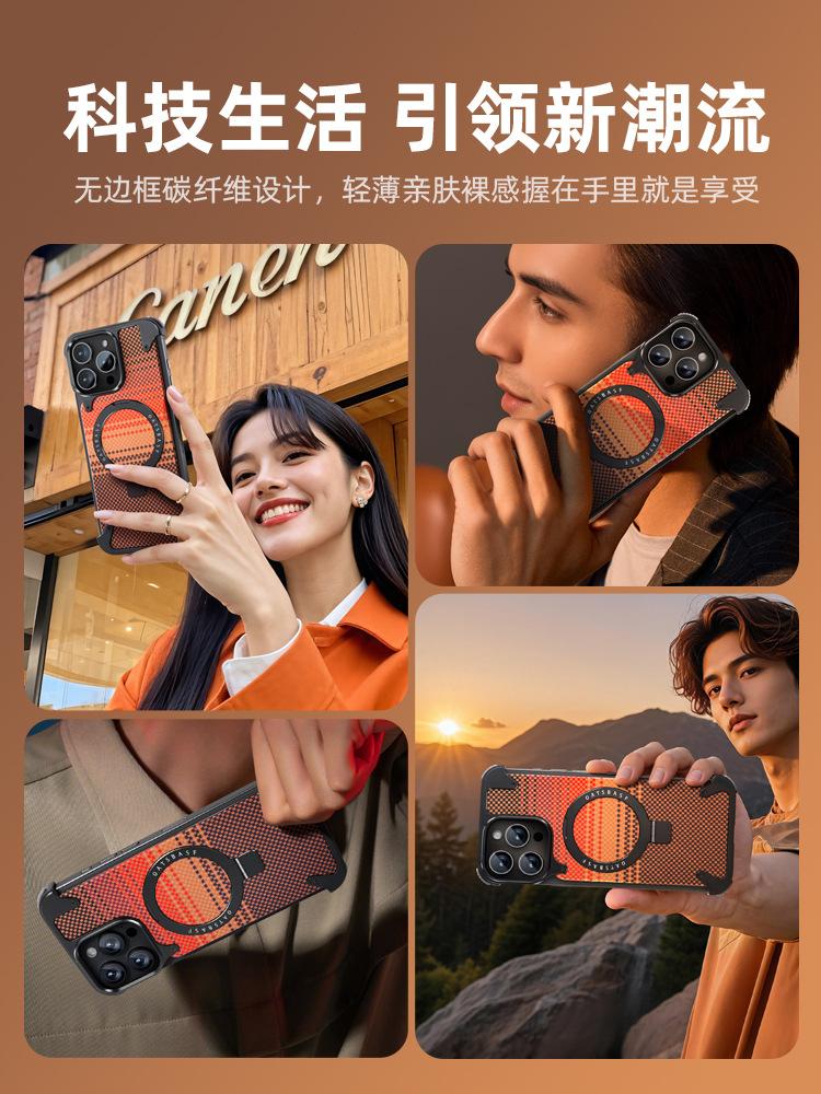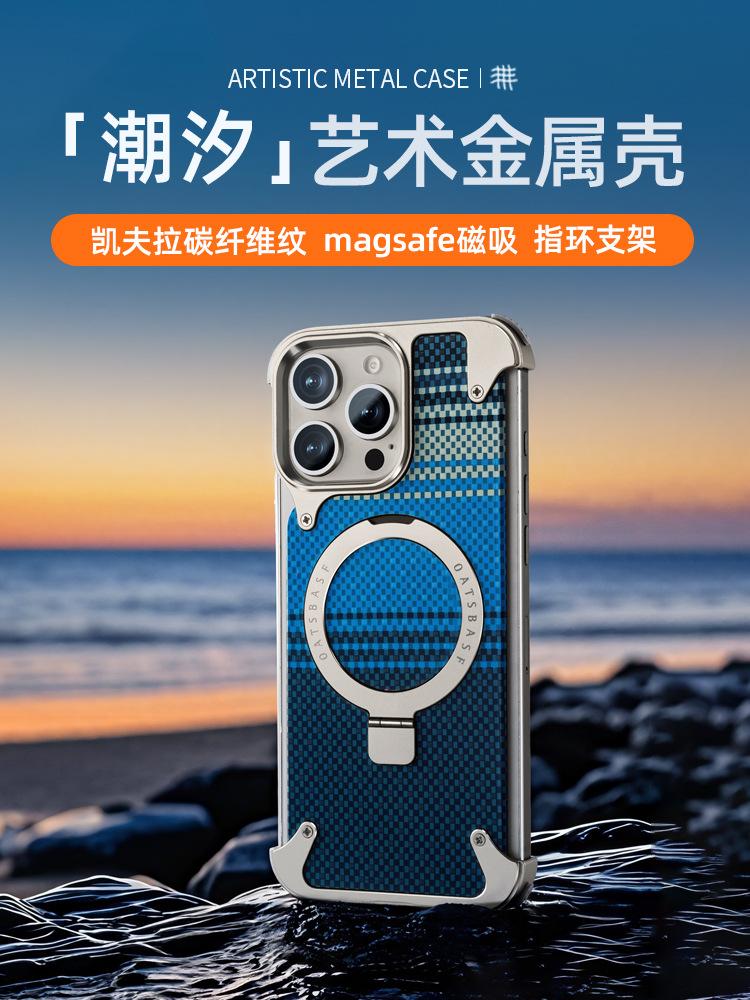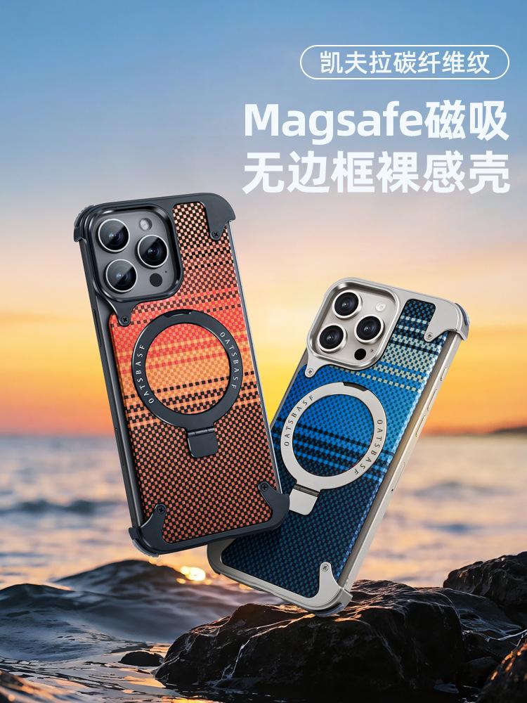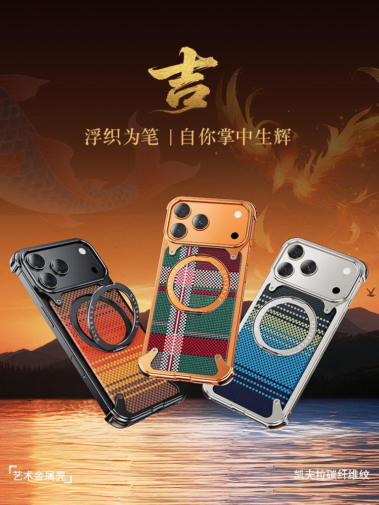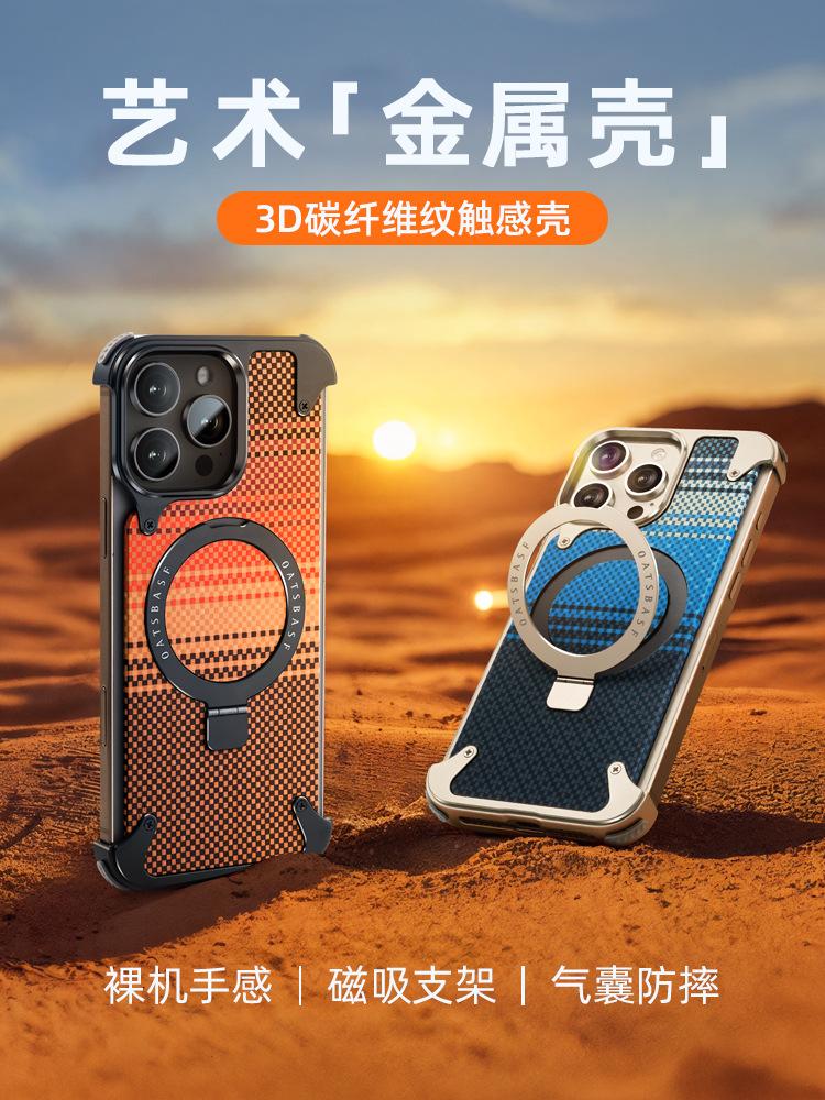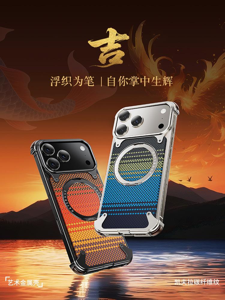 Kevlar es adecuado para la funda de teléfono de fibra de carbono Apple 17 Pro Max con soporte magnético giratorio, 16 Pm funda individual, a prueba de caídas
