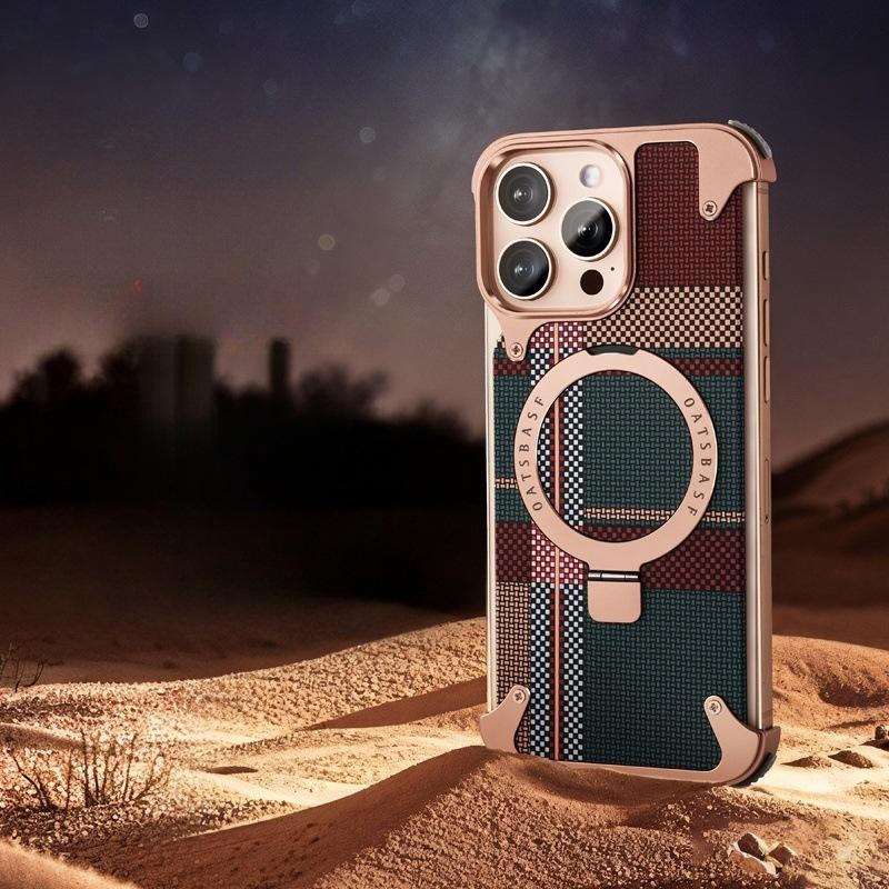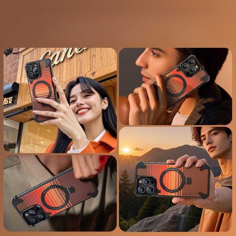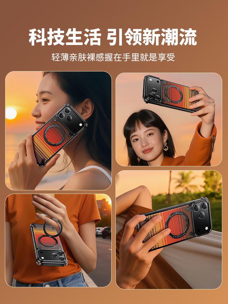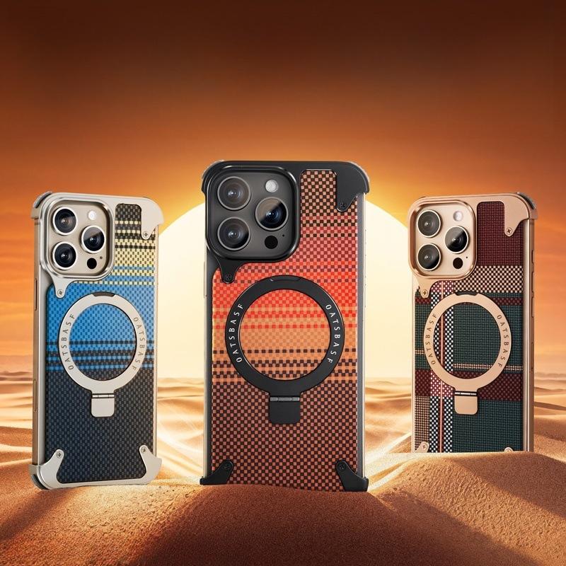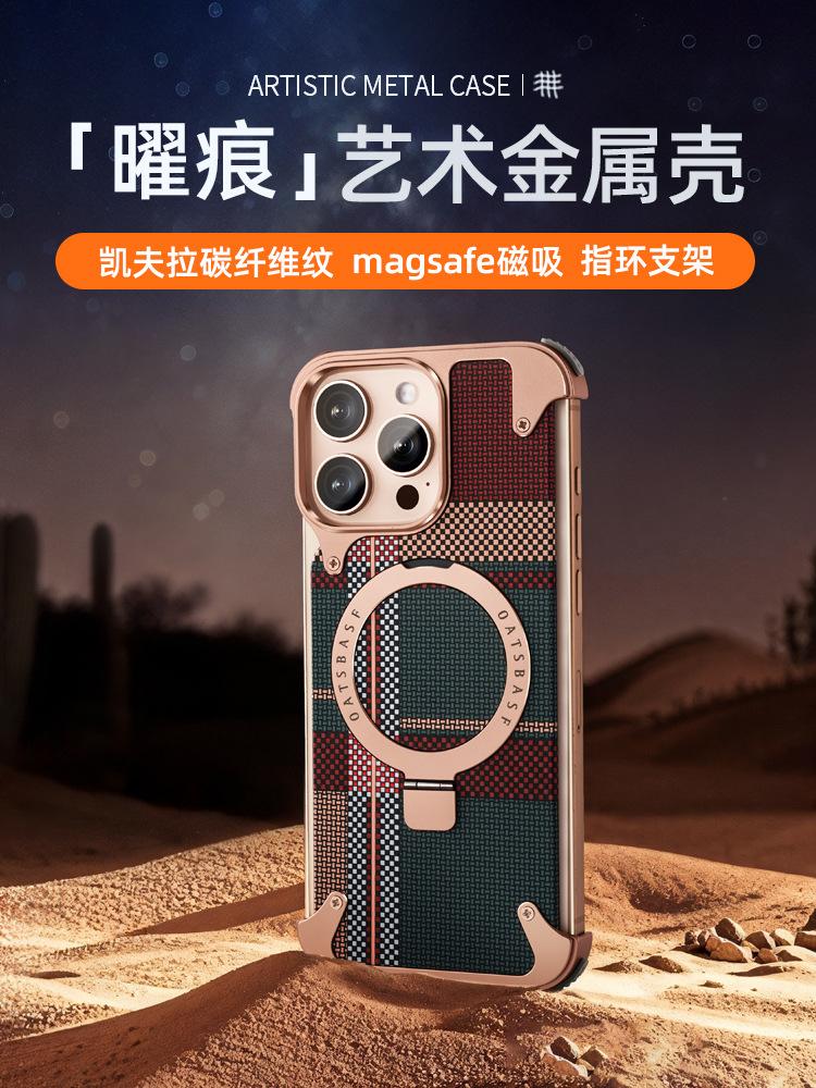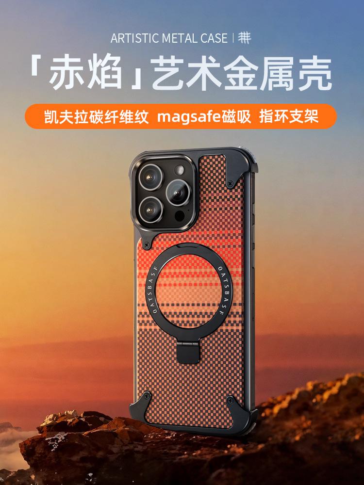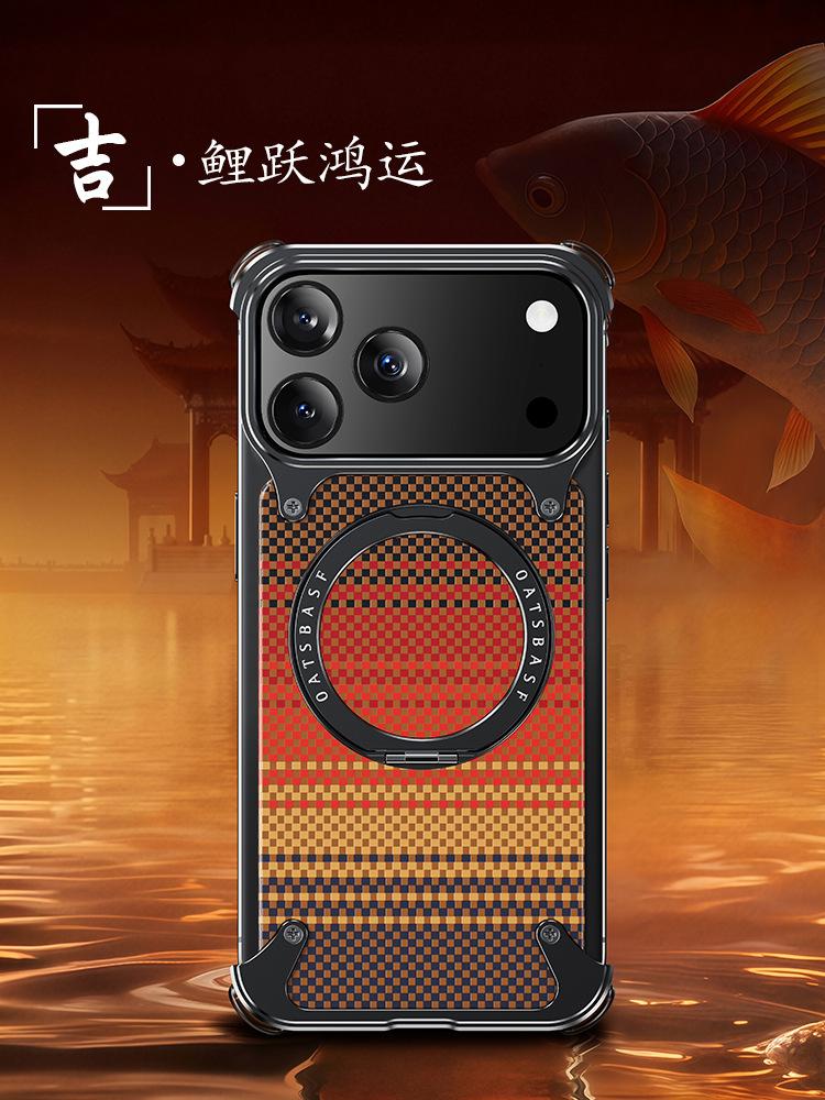 Kevlar es adecuado para la funda de teléfono de fibra de carbono Apple 17 Pro Max con soporte magnético giratorio, 16 Pm funda individual, a prueba de caídas