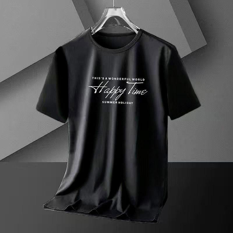 Playera de Verano de Seda de Hielo Versátil Estampada Malla Slim Estilo Americano Cuello Redondo Secado Rápido Manga Corta Playera Estilo Deportivo para Hombre