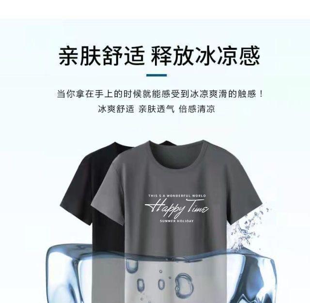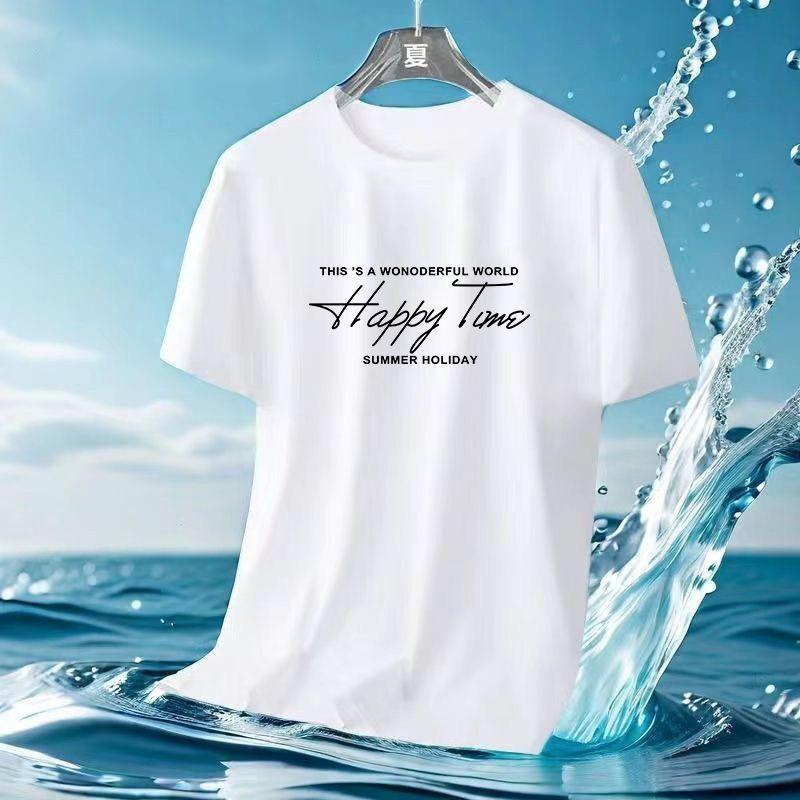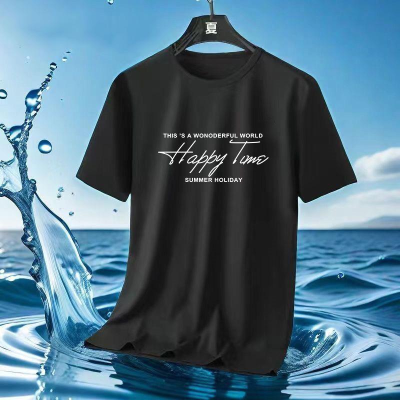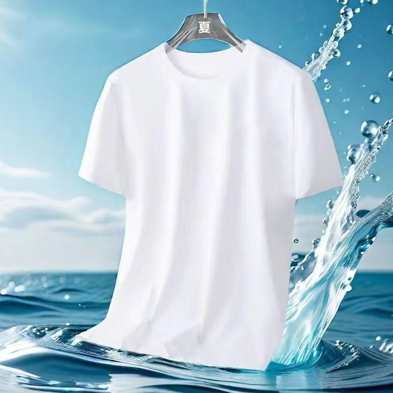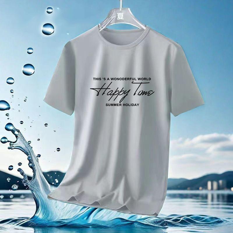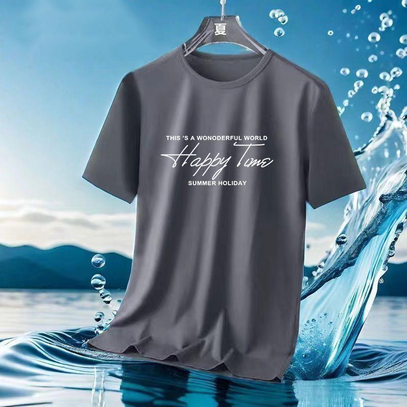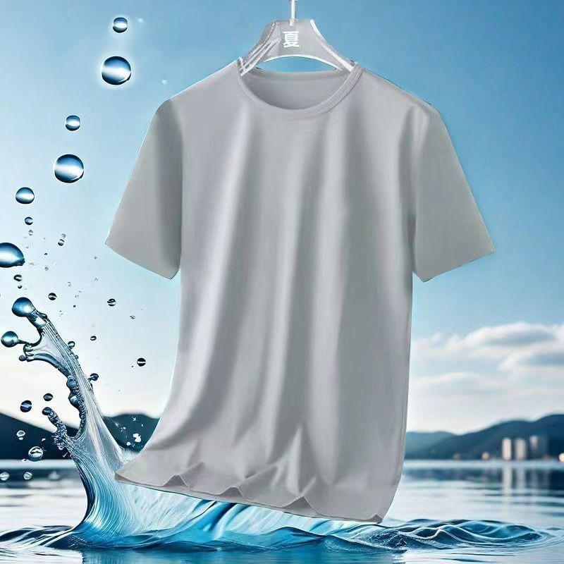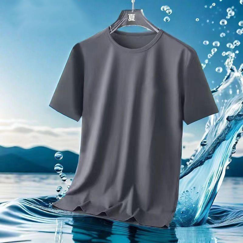 Camiseta de Malla de Seda de Hielo de Verano 2024 Versátil Estampada Slim Cuello Redondo Camiseta de Secado Rápido de Manga Corta Estilo Deportivo para Hombre