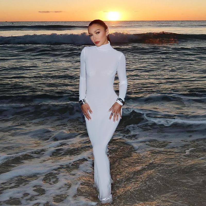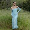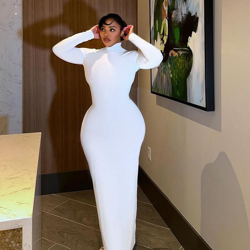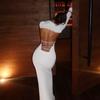 Estilo Europeo y Americano Transfronterizo Verano Nuevo Sexy Chica Caliente Espalda Descubierta Socialité Vestido Ajustado de Manga Larga con Tirantes Ins