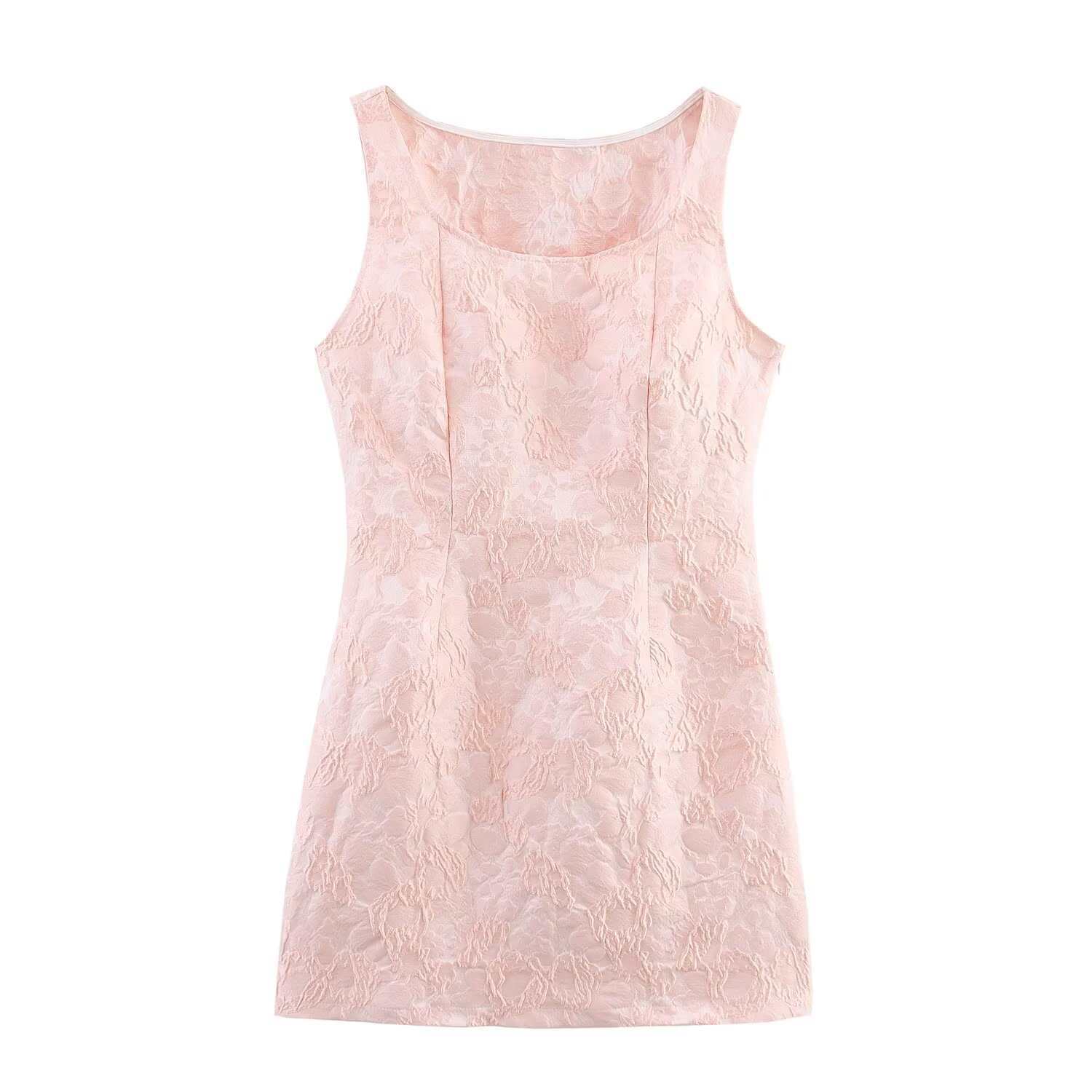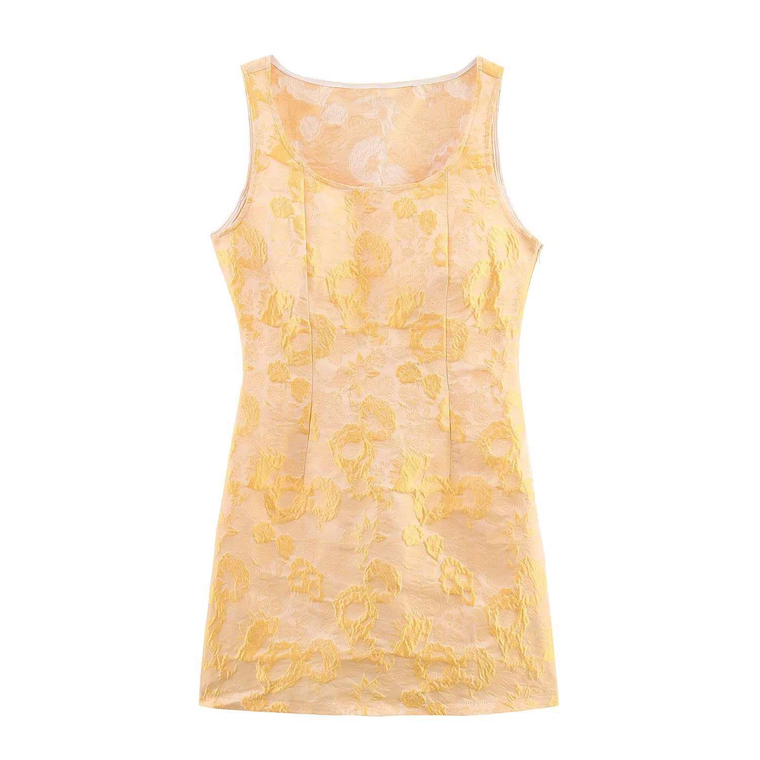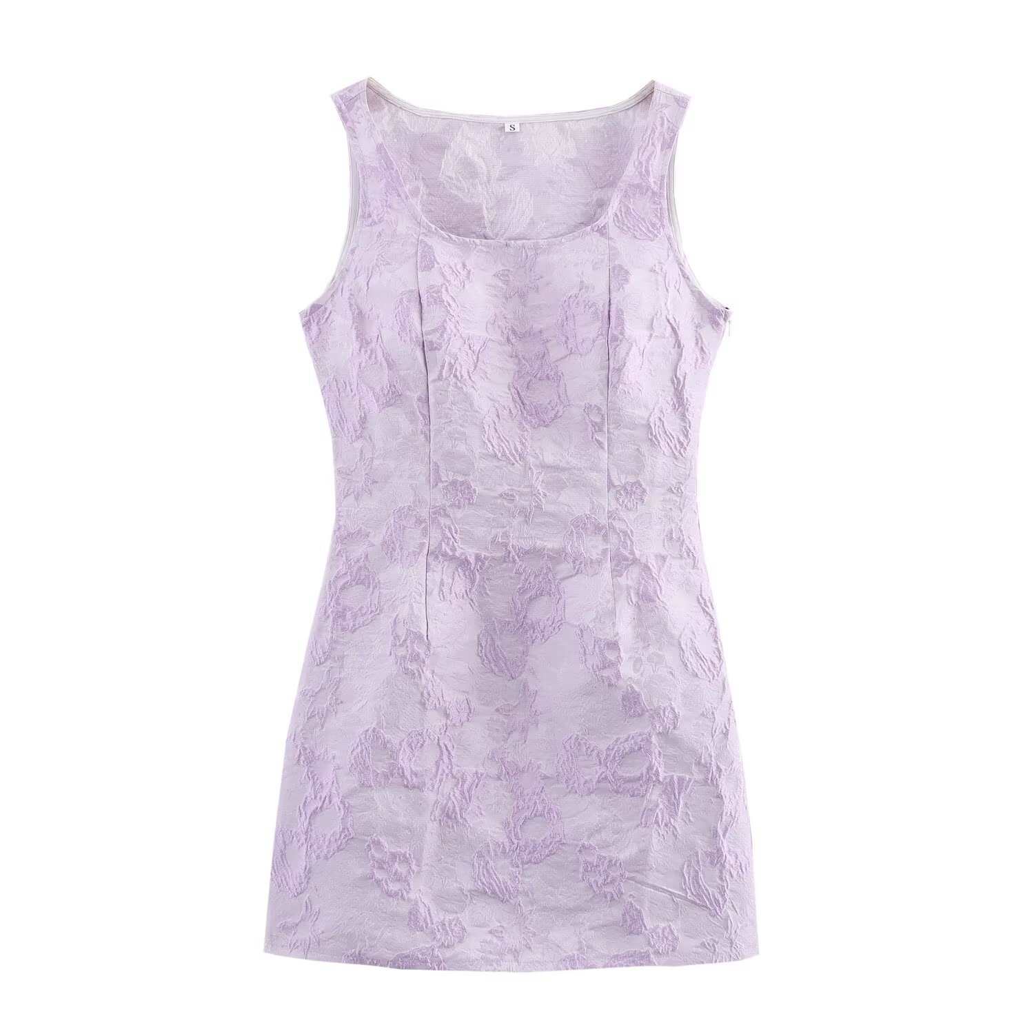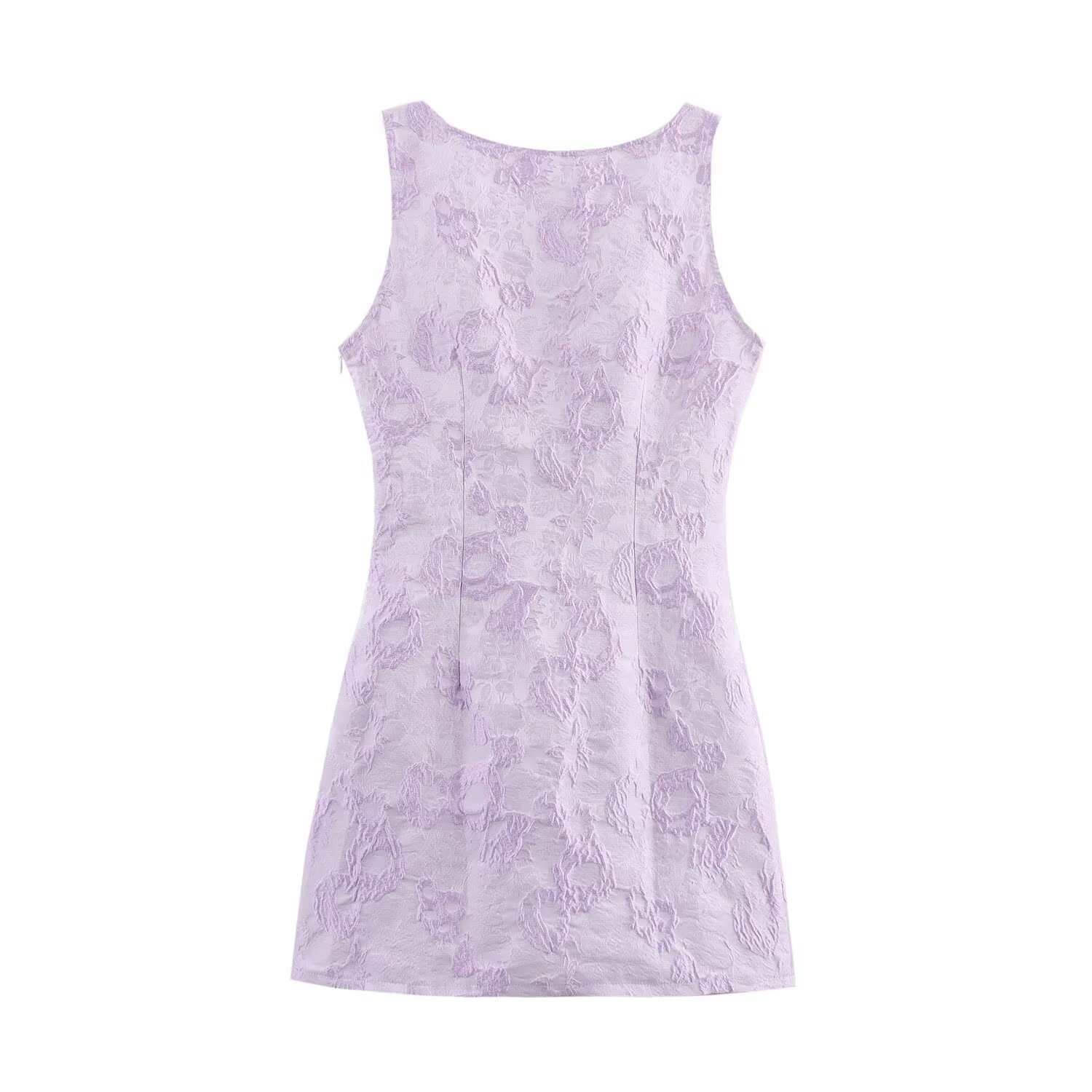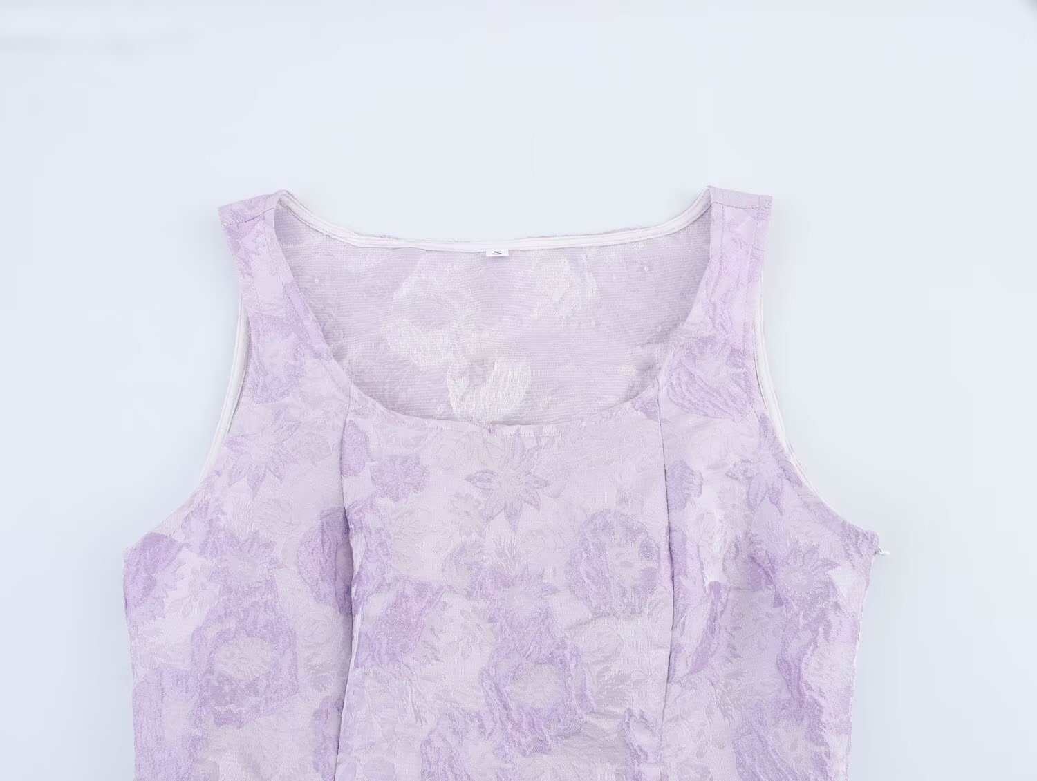 Nuevo vestido sin mangas estilo flor de verano francés tirantes cruzados sencillo estampado jacquard europeo y americano