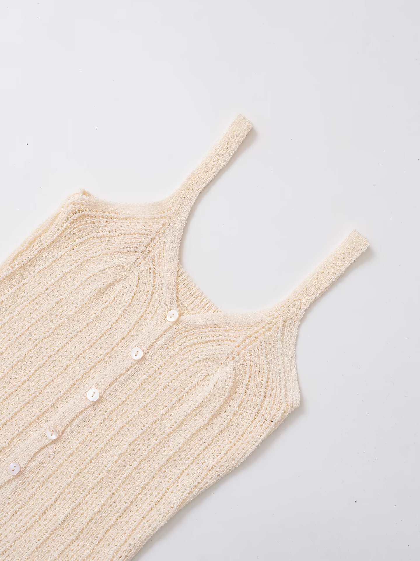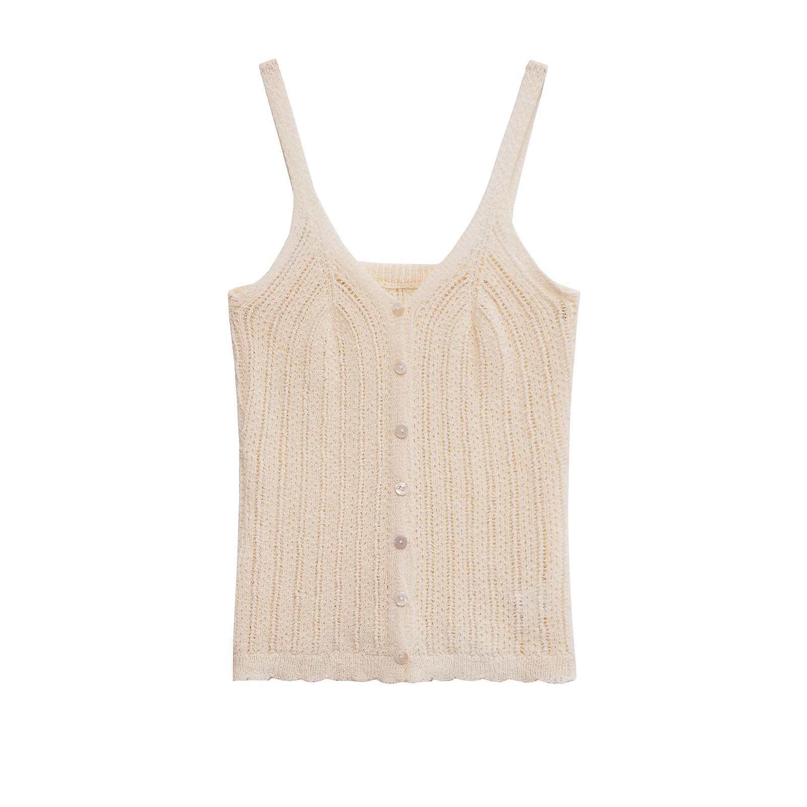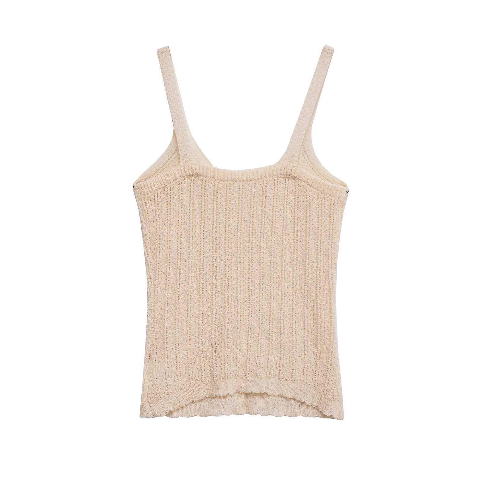 Chaleco de Punto para Mujer Cuello Ajustado Cintura Elegante Tirante Calado Top Vintage Estilo Francés
