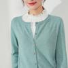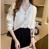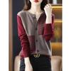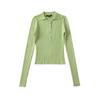 Cárdigan de punto de manga larga a rayas de color contrastante en el cuello para mujer, primavera temprana y otoño, corte ajustado, camiseta interior, top corto de cintura alta