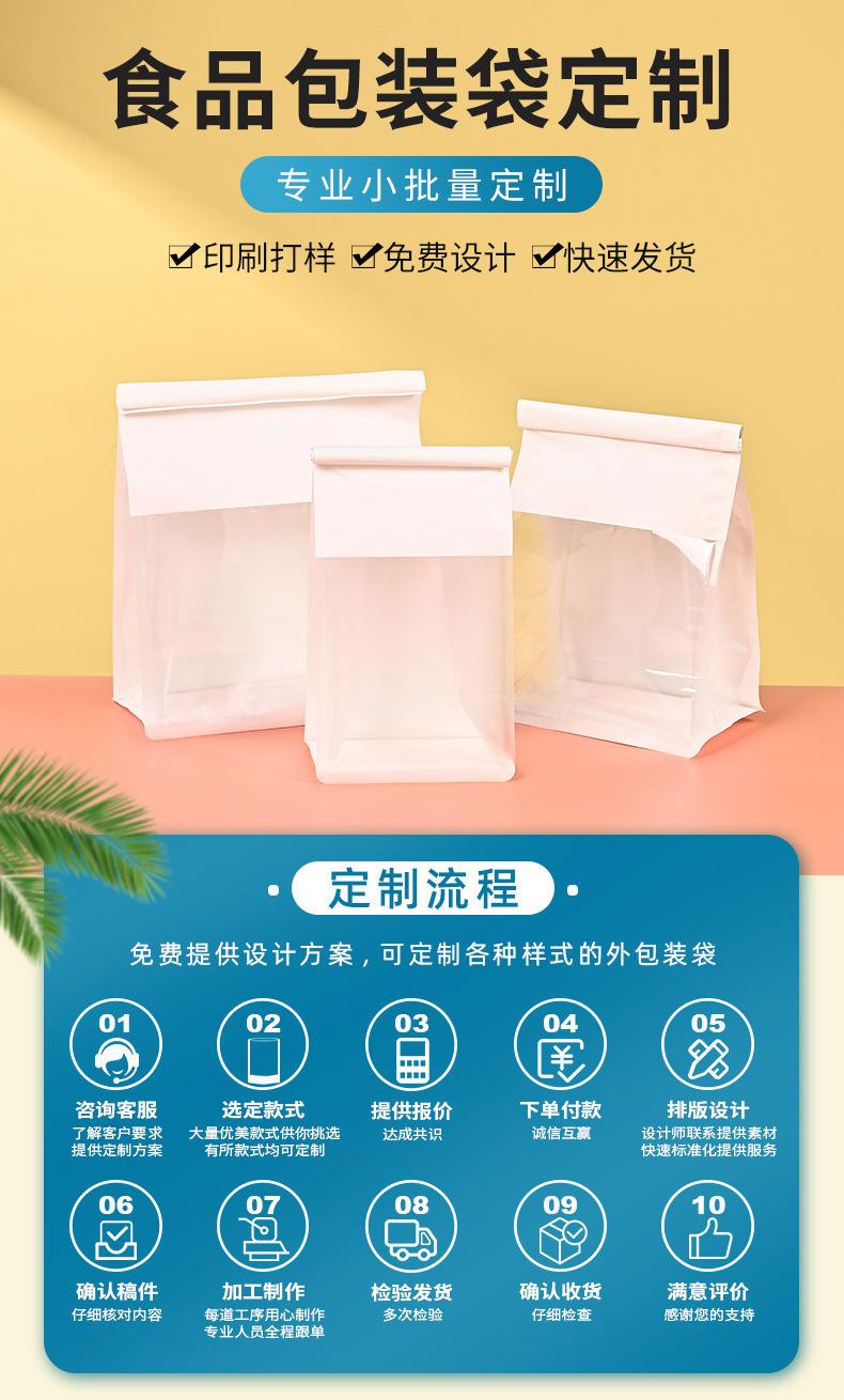 Bolsa Transparente Personalizada para Abrir Ventana para Tostadas de Pan, Bolsa de Papel Kraft para Alimentos a Prueba de Aceite para Hornear, Embalaje Autosellable Bolsa para Repostería y Postres