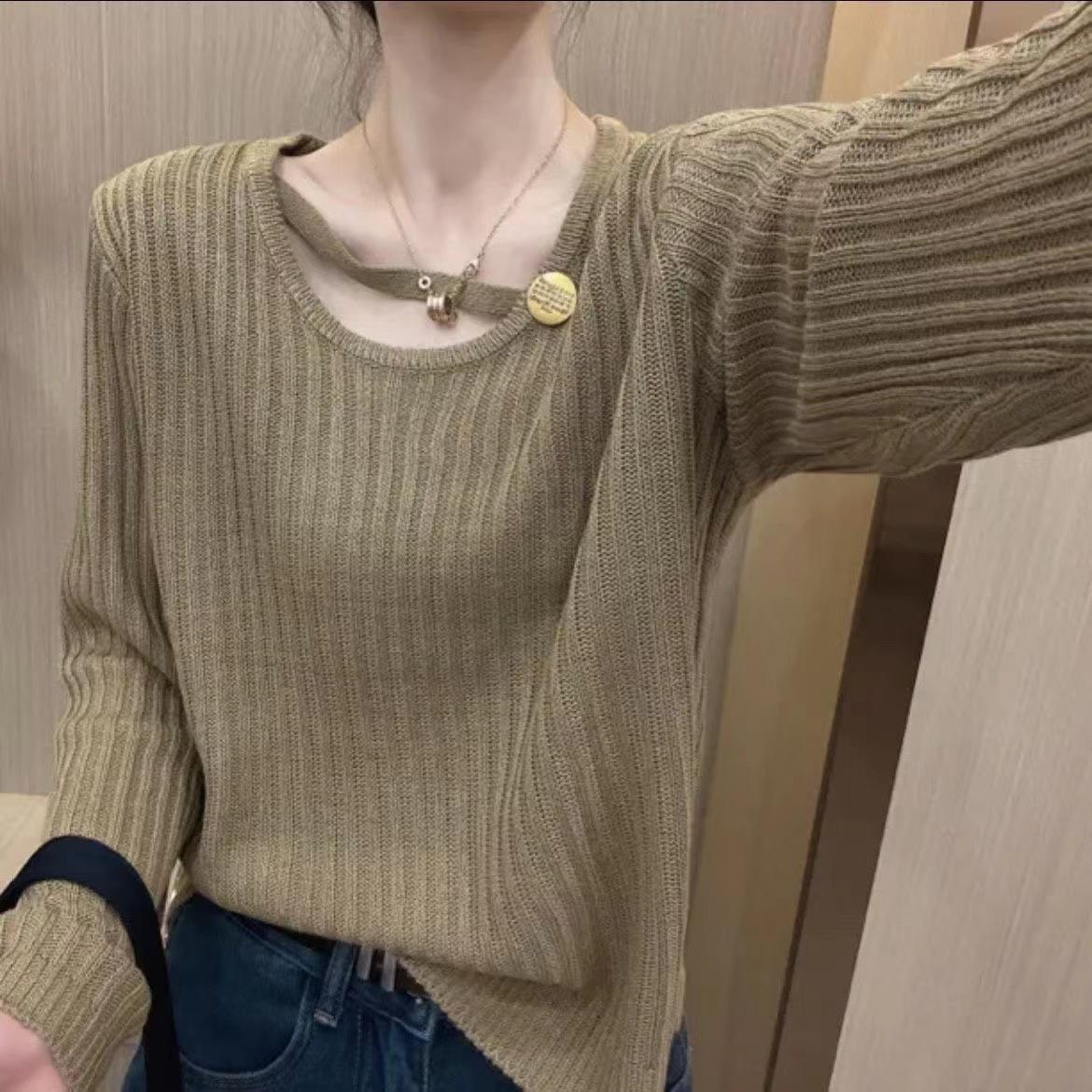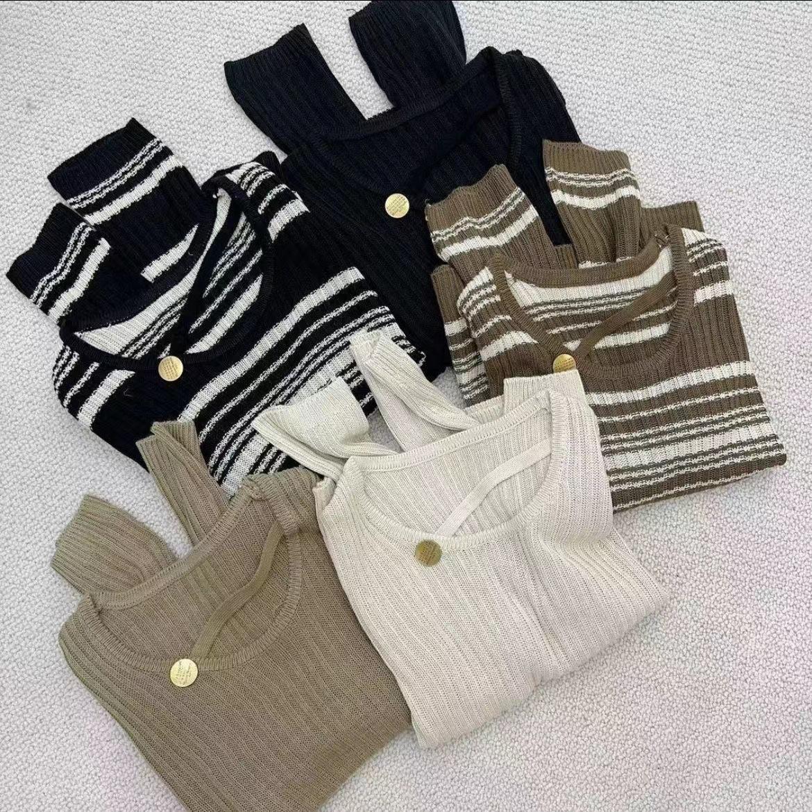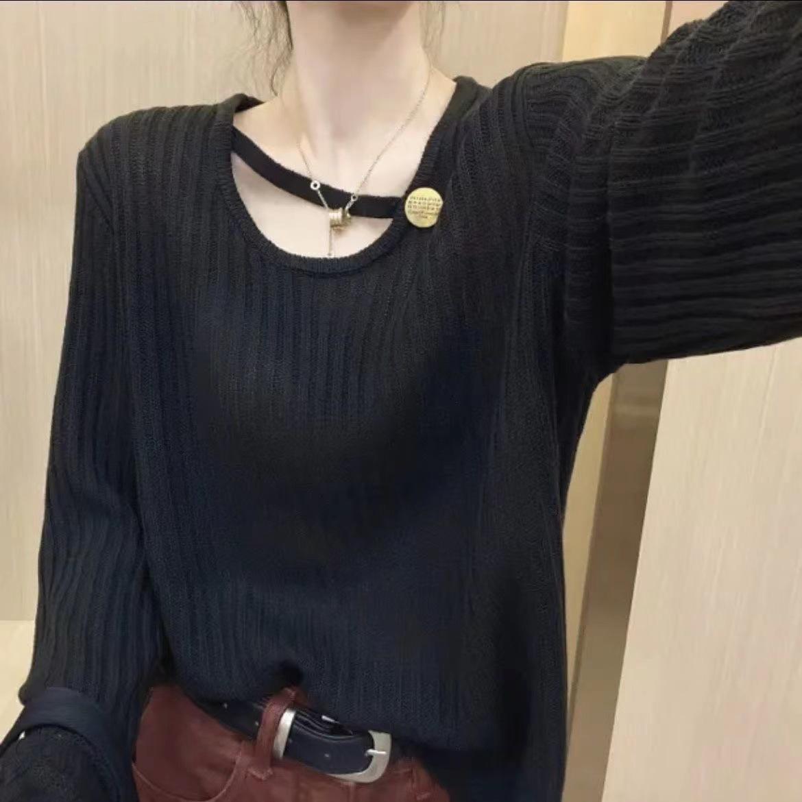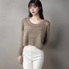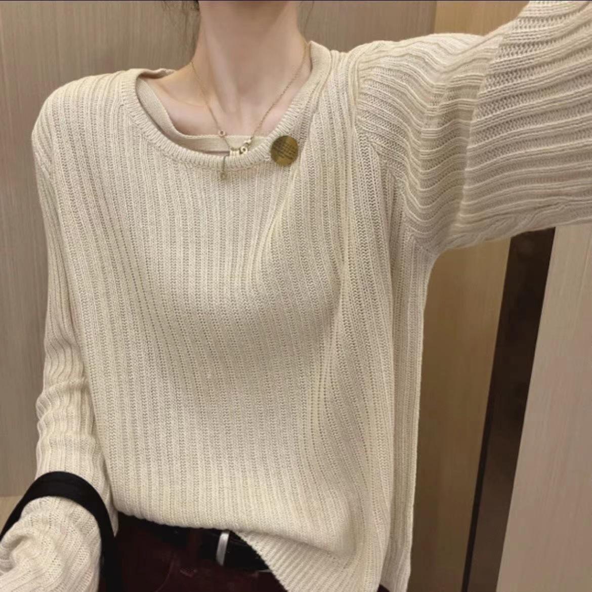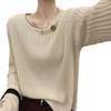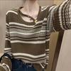 Suéter hueco a rayas estilo francés de manga larga para mujer otoño e invierno holgado perezoso moda adelgazante elegante combinable top estilo occidental