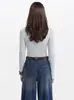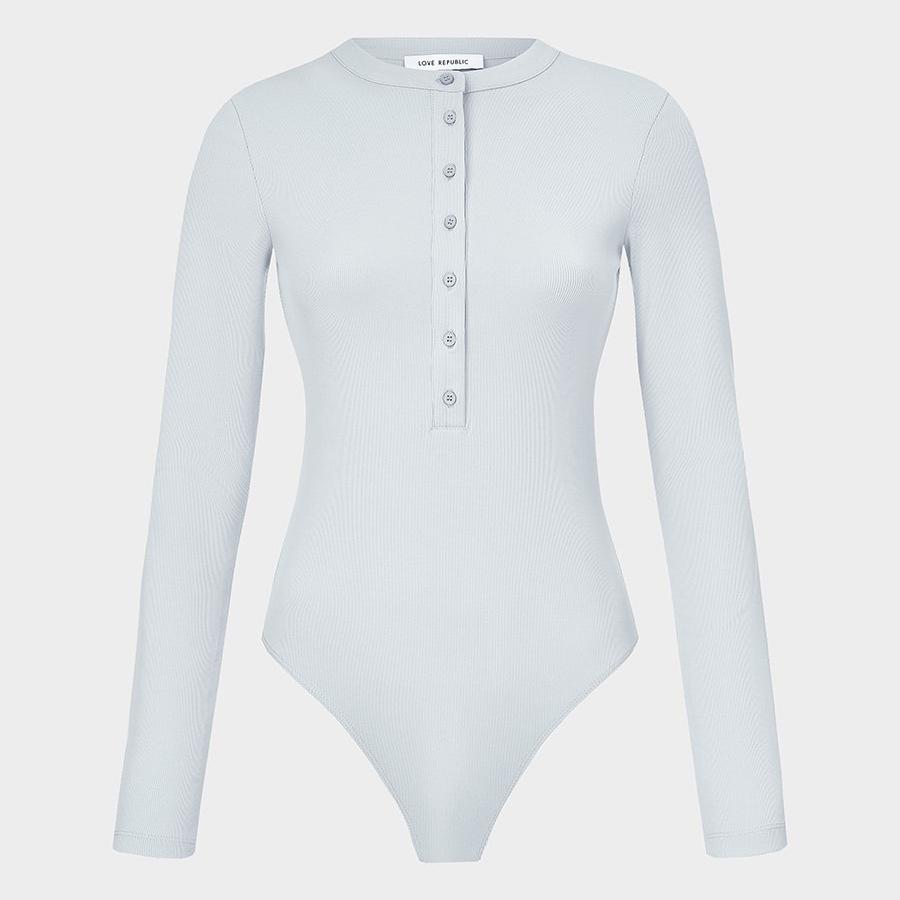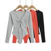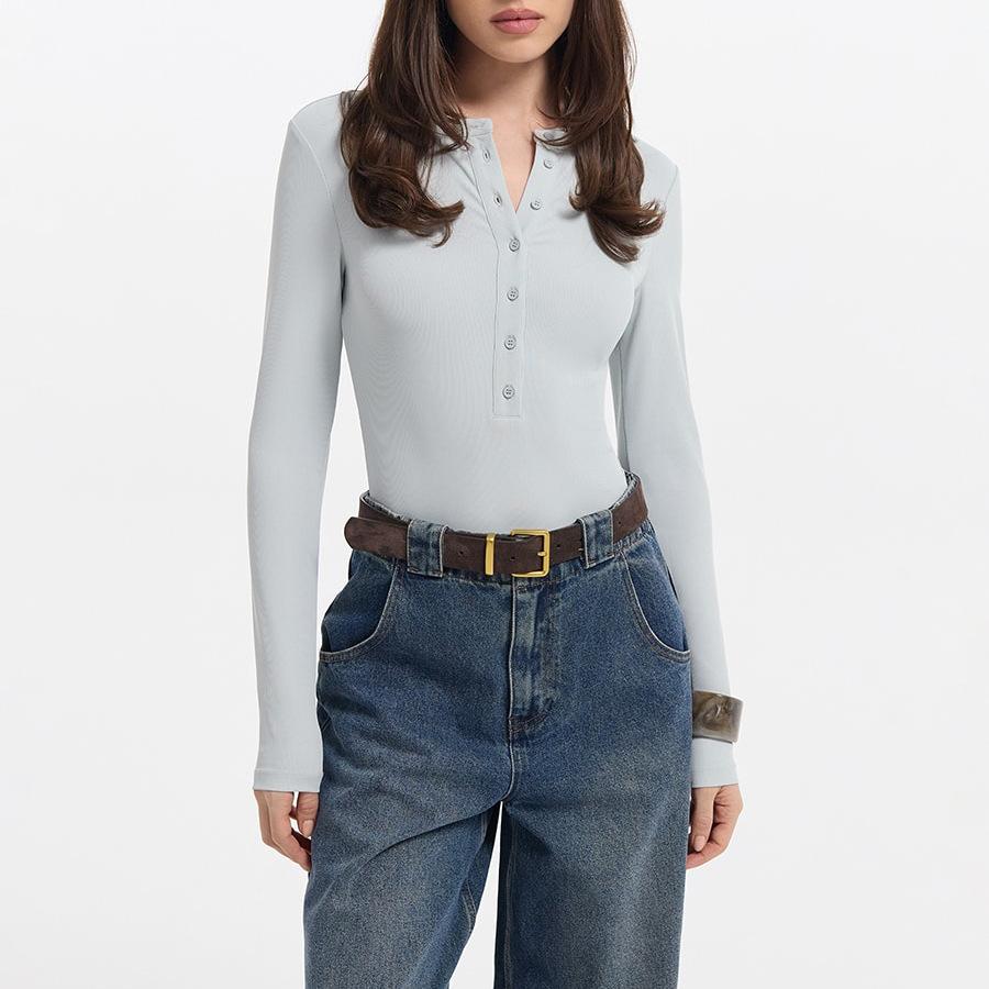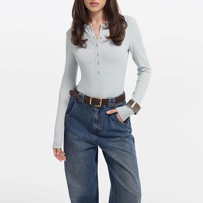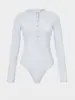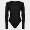 Europeo y Americano Ebay Transfronterizo Otoño Nuevo para Mujer Ajustado Botón Acanalado Moda Manga Larga Top Mono Ropa Interior
