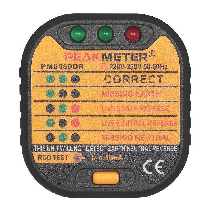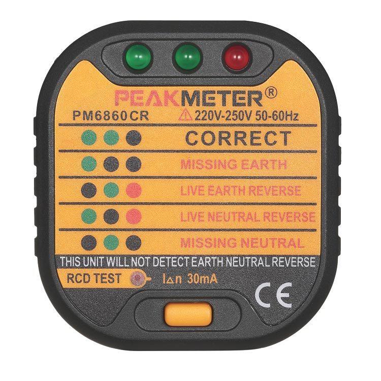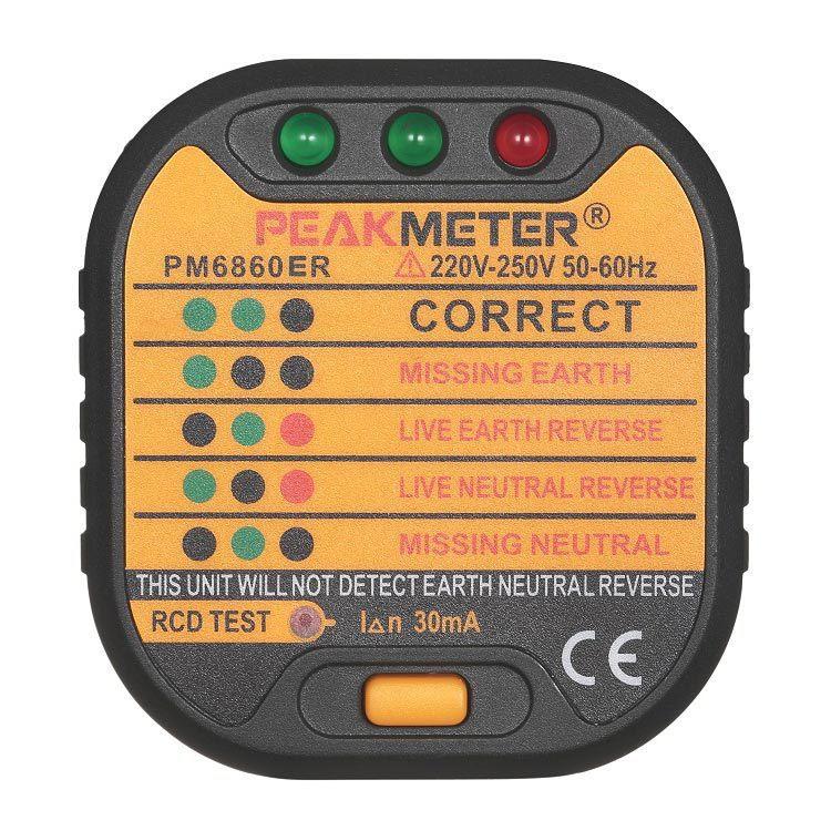 Huayi PM6860ER/BG/DR Probador de Enchufe Polaridad de Alimentación RCD Detector de Fase Electroscopio de Fuga
