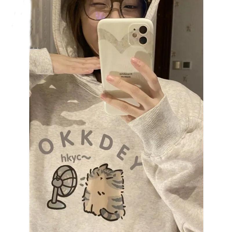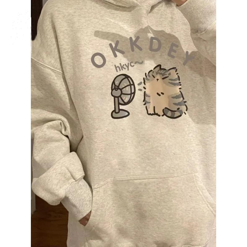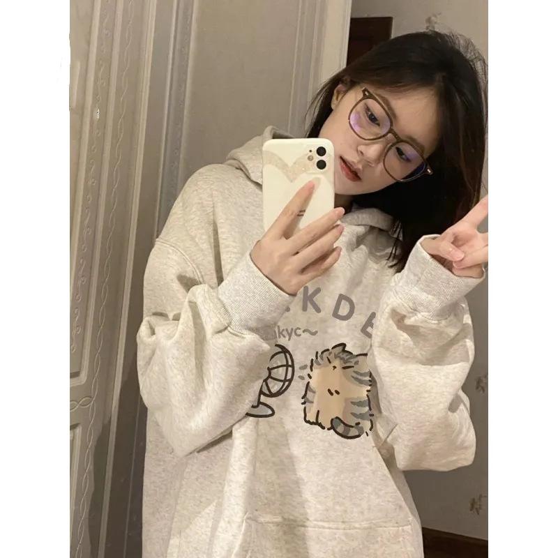 Sudadera para Mujer Top Americano Oversize con Capucha Otoño e Invierno Blanco Gris Estilo Relajado Suelto Pareja Ropa Exterior
