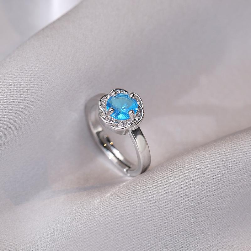 Anillo para Mujer Zircón Azul Anillo Abierto Diseño Dulce Nicho Moda Anillo de Dedo Popular en Internet Dedo Ajustable
