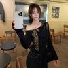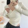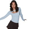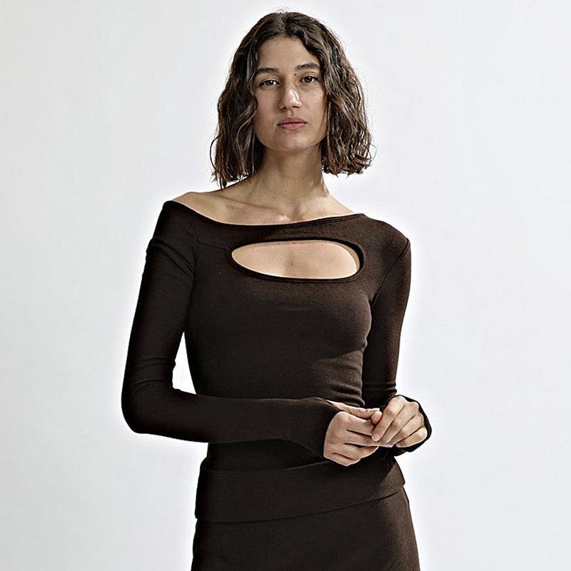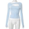 Otoño Europeo y Americano para Mujer Amazon Nuevo Color Sólido Cuello Irregular Calado Camiseta de Manga Larga Top para Mujer Ins