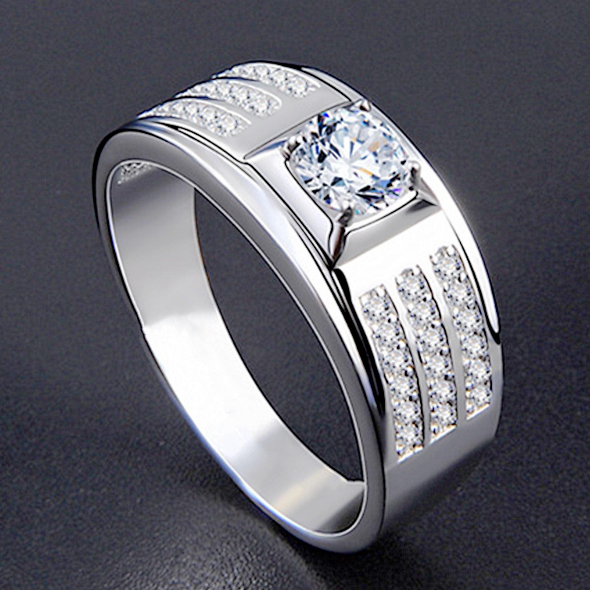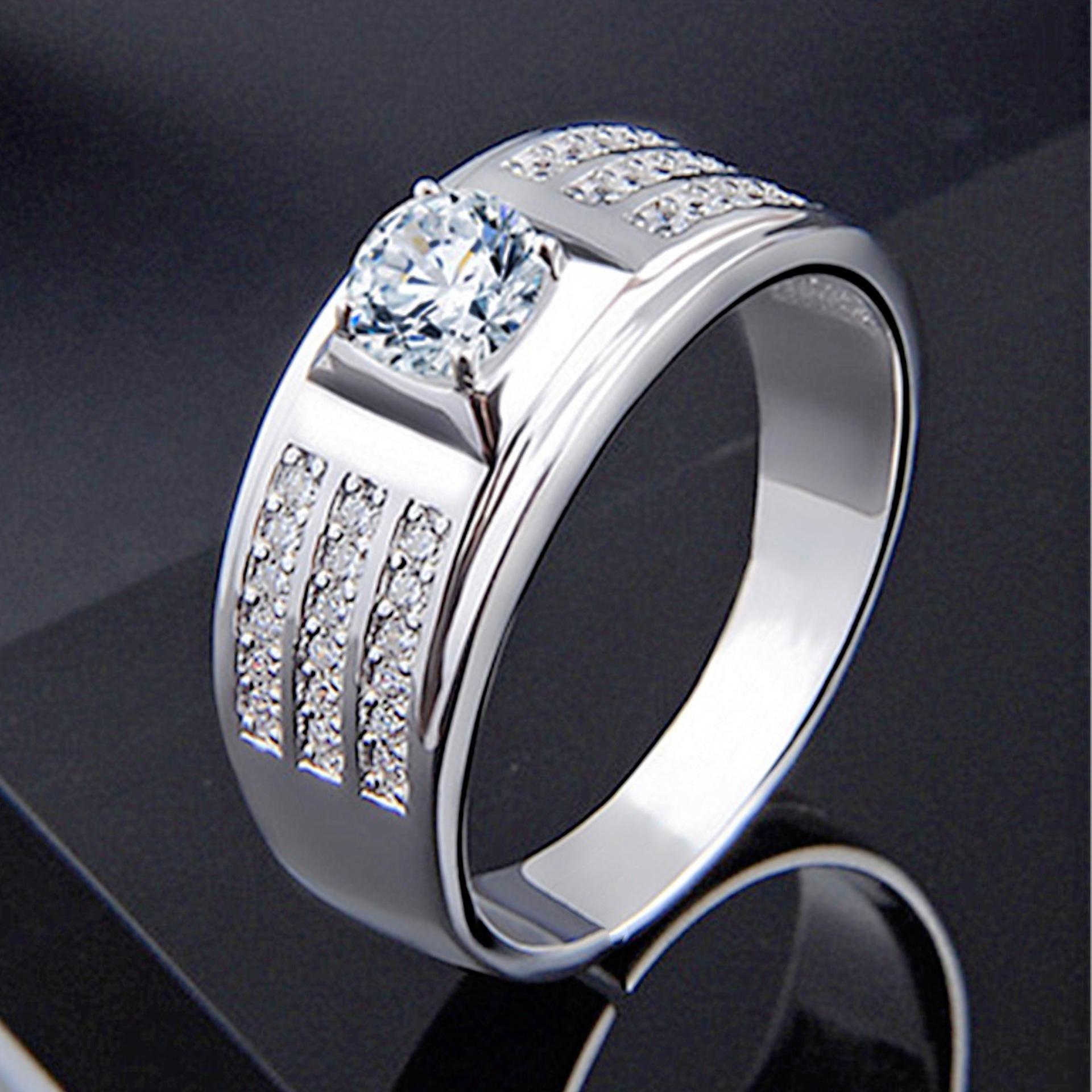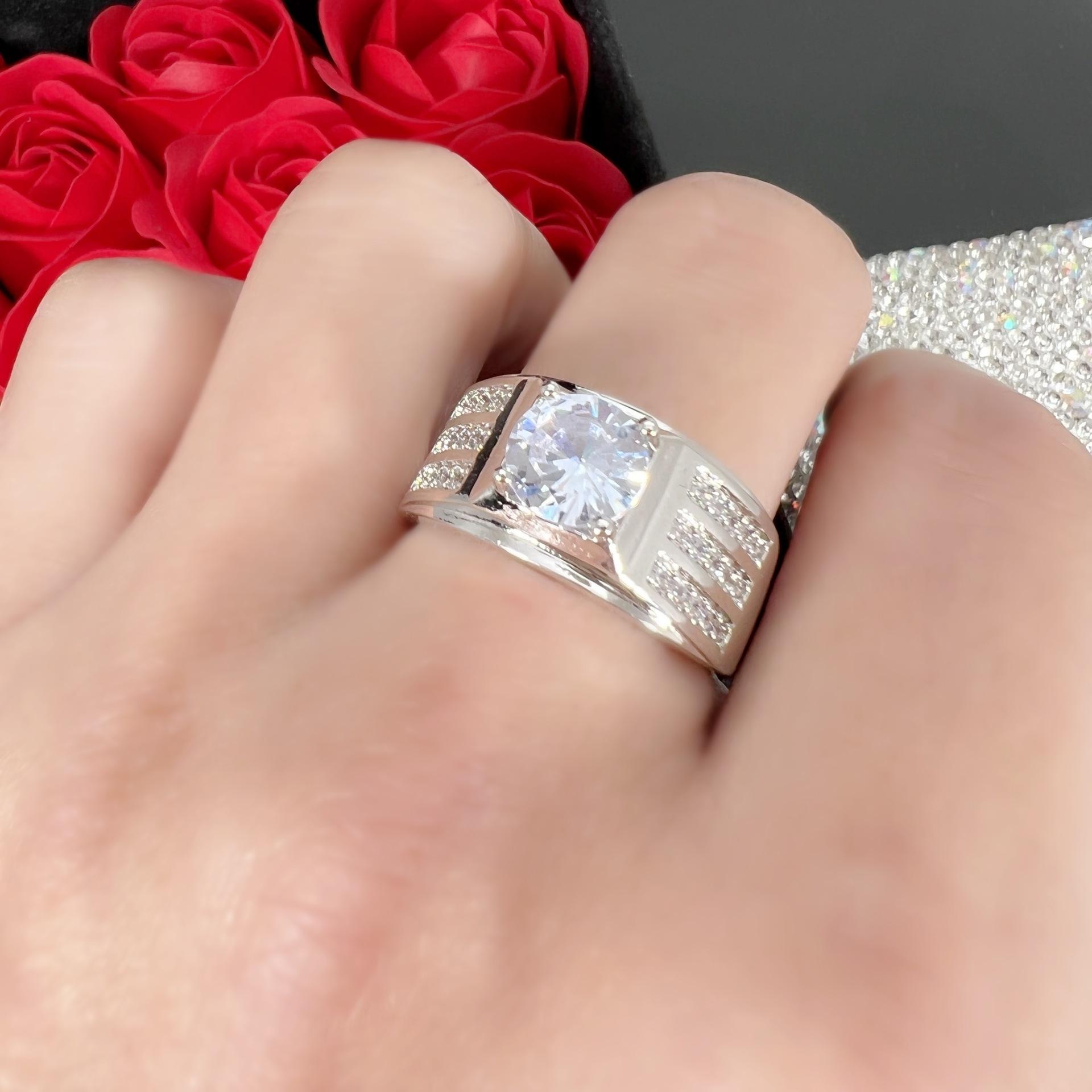Compra Anillo abierto clásico dominante de moda de cuatro garras engastado con tres filas de Diamante Zirconia de 2 quilates anillo creativo de compromiso al por mayor en Joom.pro