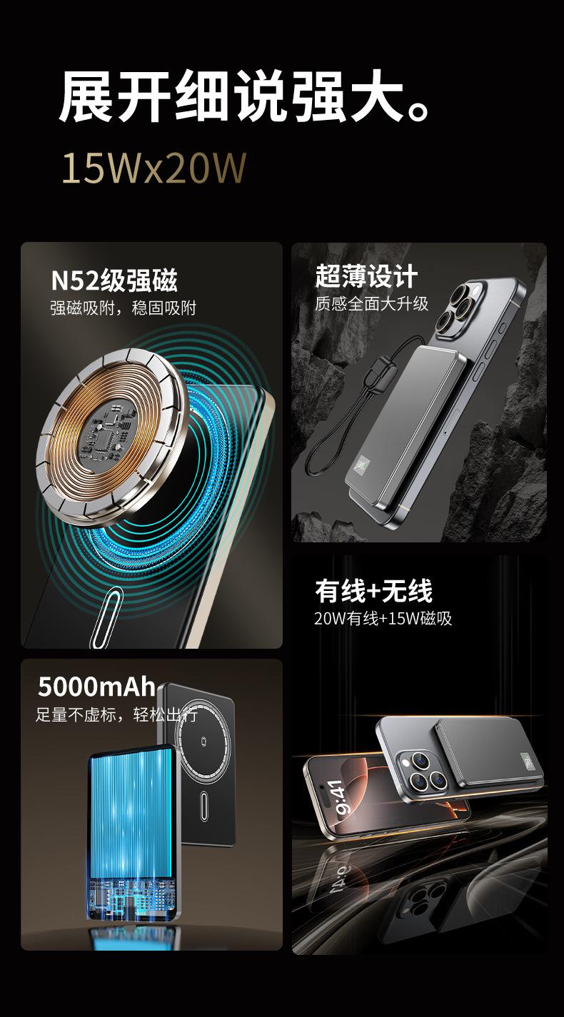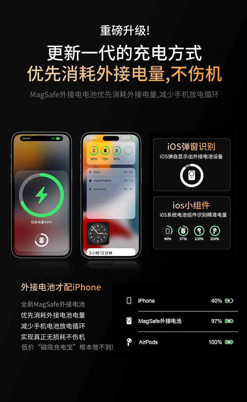 Ultra-thin [2-in-1] rechargeable mobile phone/headphones, Deep space gray 3-in-1 ultra-thin, can charge mobile...