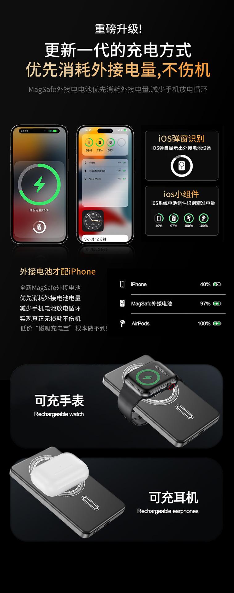 Tesoro de carga rápida inalámbrica de succión magnética 10000 mA es adecuado para batería externa Apple Magsafe fuente de alimentación móvil ultradelgada