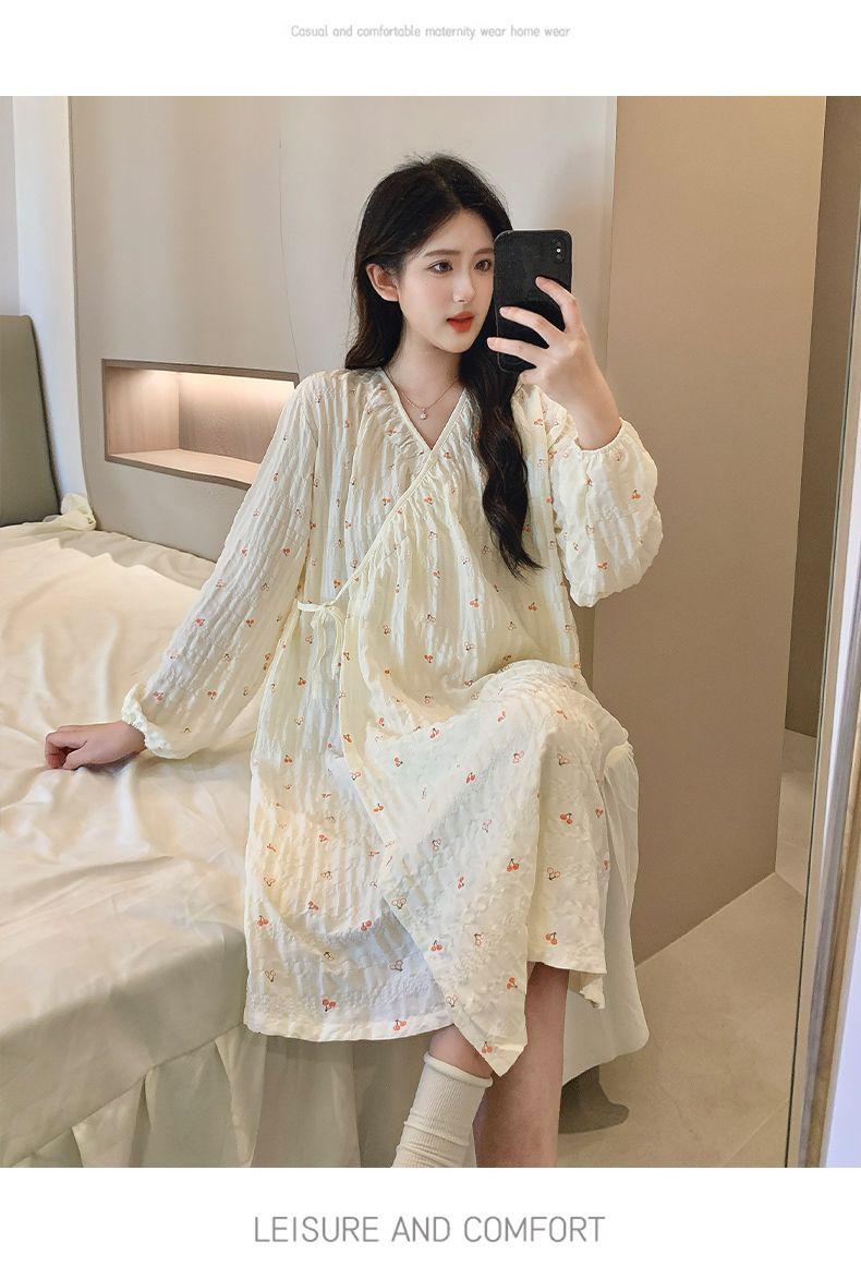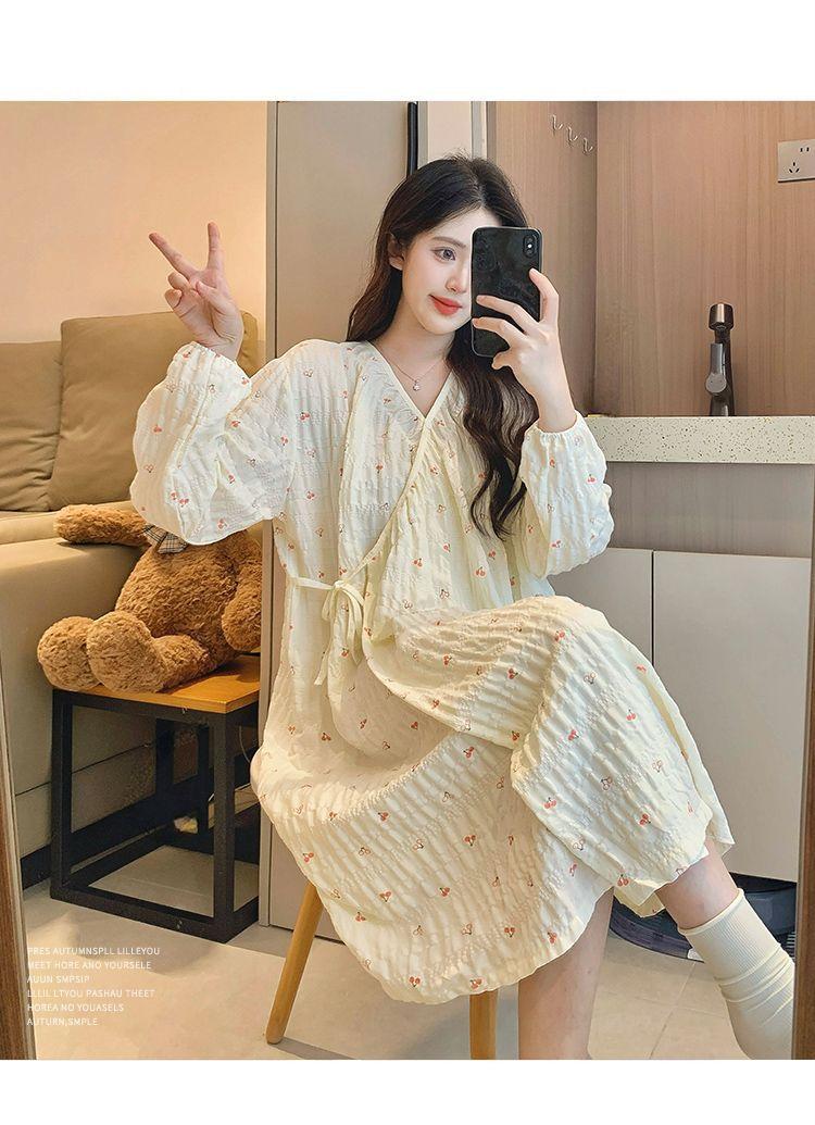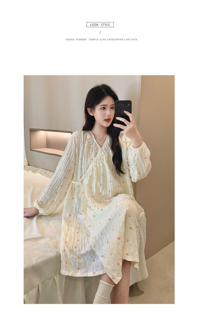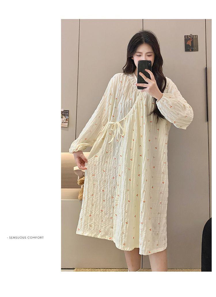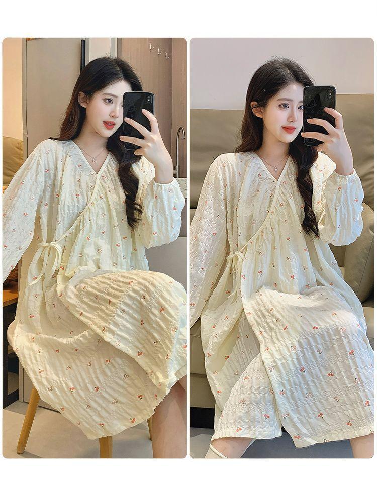 Camisón Kimono de Manga Larga para Mujer de Verano Vestido de Verano de Largo Medio con Cordones Pijama Suelto de Algodón de Nube de Verano para Mujer