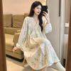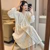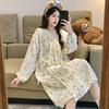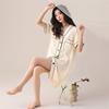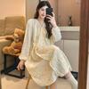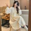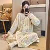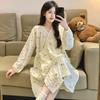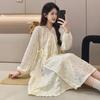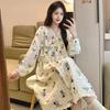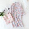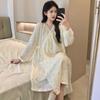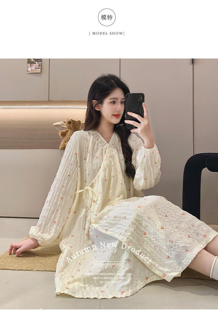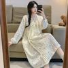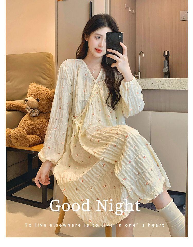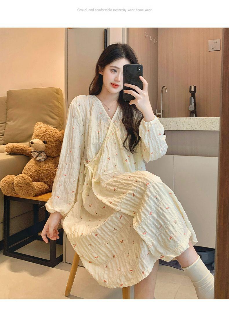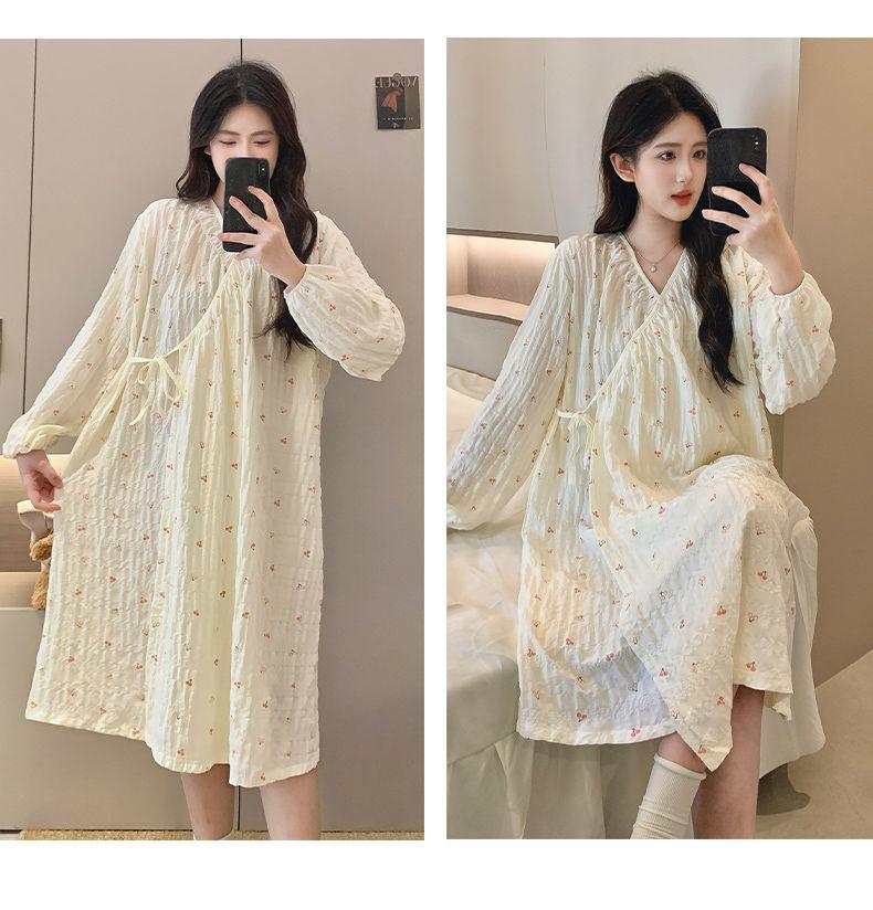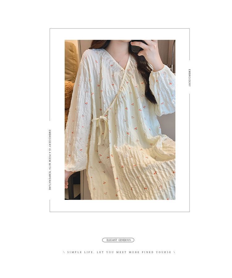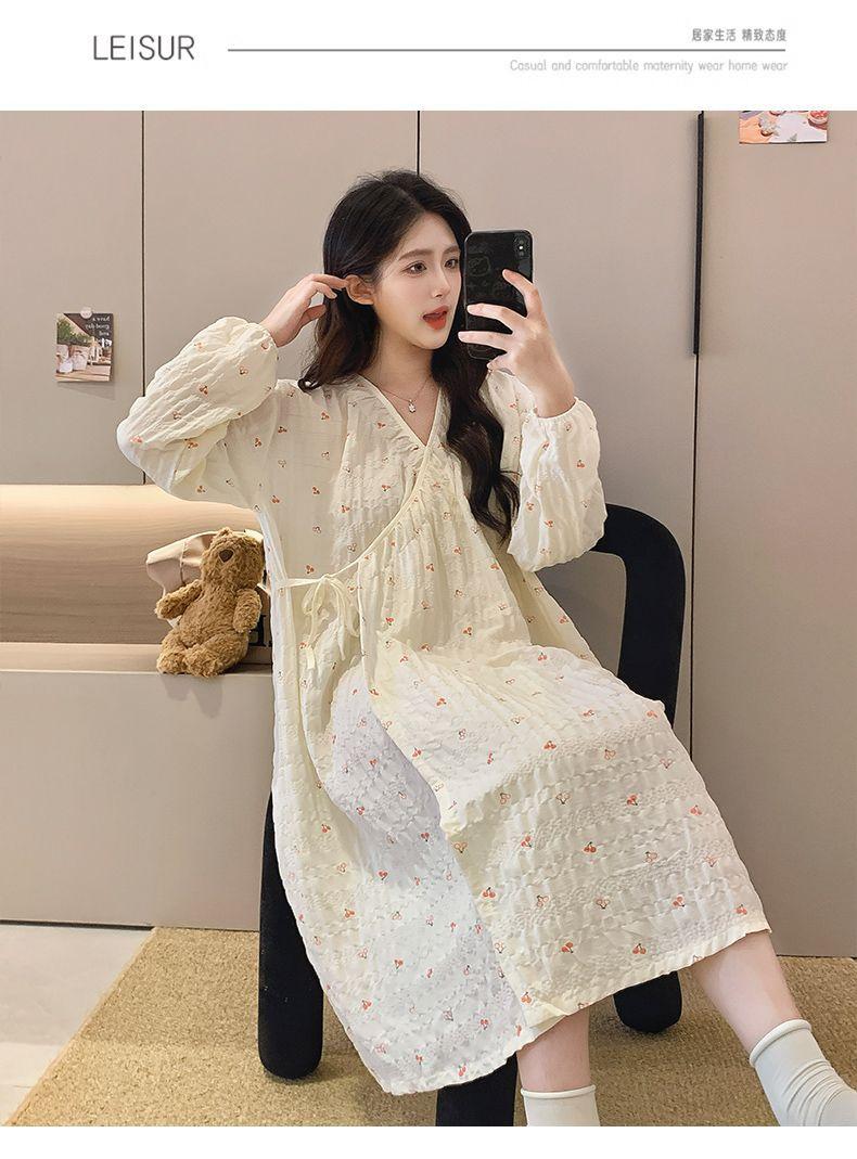 Camisón Kimono de Manga Larga para Mujer de Verano Vestido de Verano de Largo Medio con Cordones Pijama Suelto de Algodón de Nube de Verano para Mujer