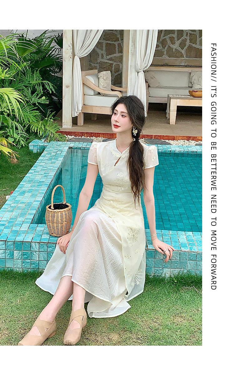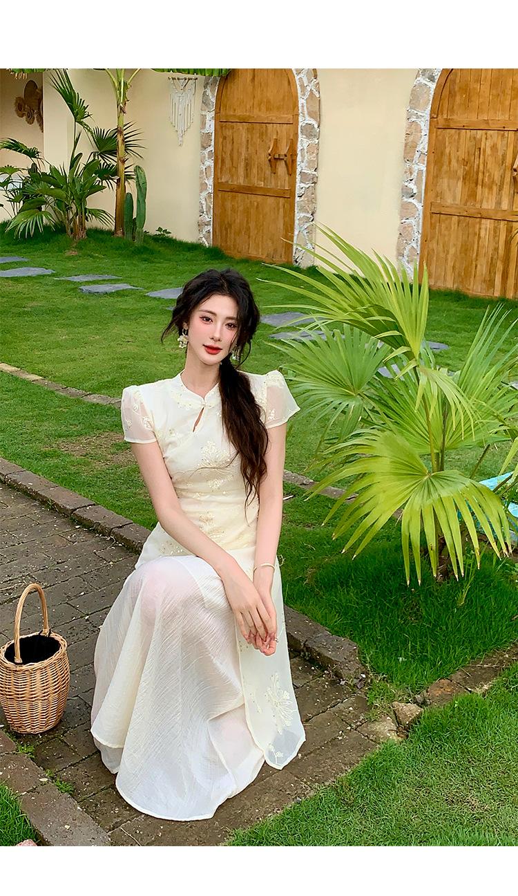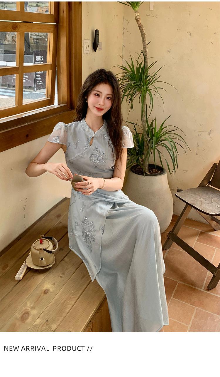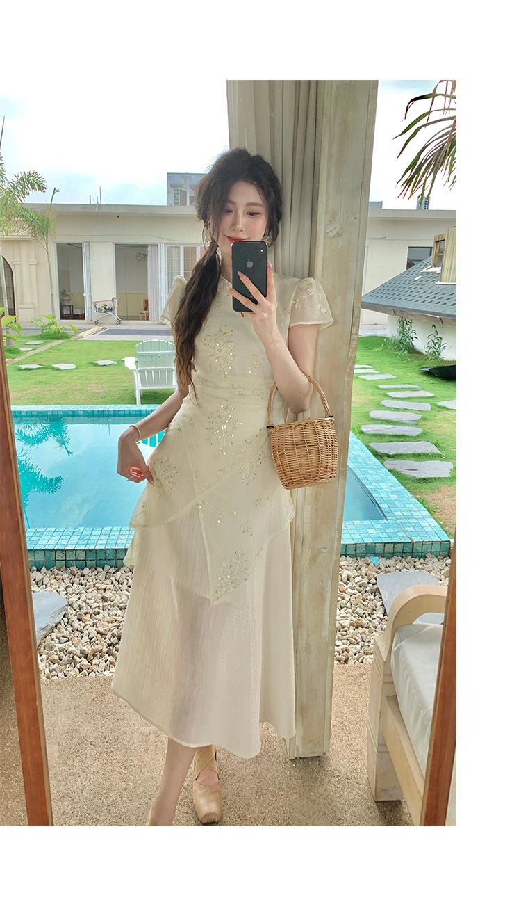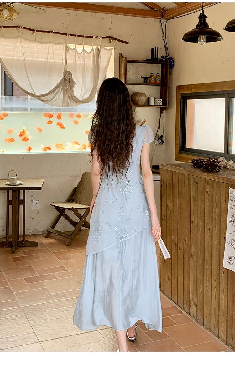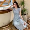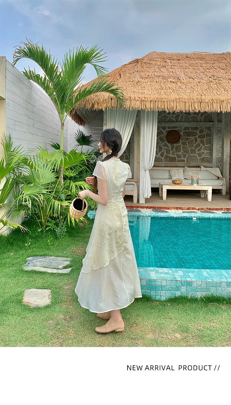 Verano Nuevo Estilo Chino Cuello Mao Asimétrico Falso Dos Piezas Cheongsam Mejorado