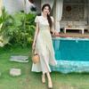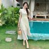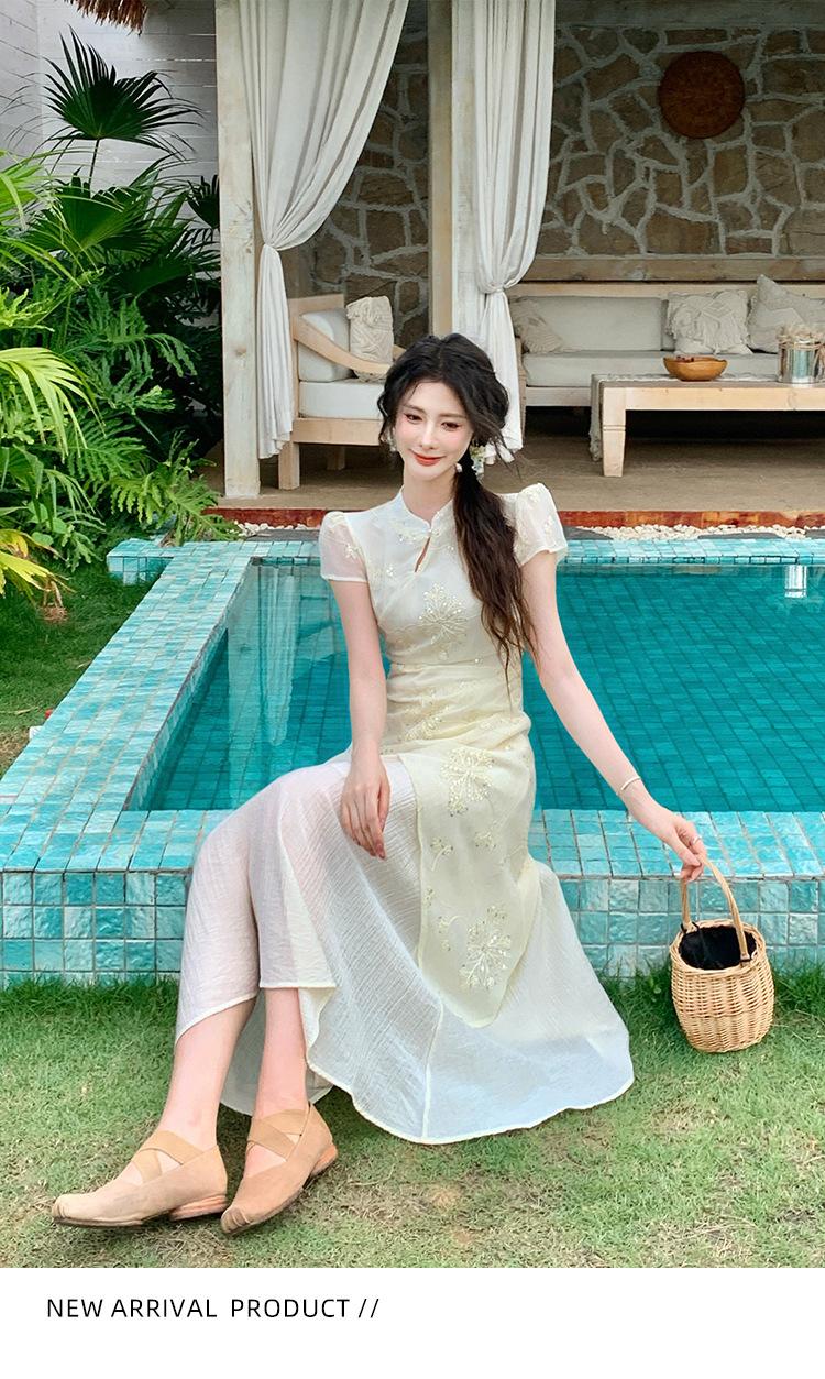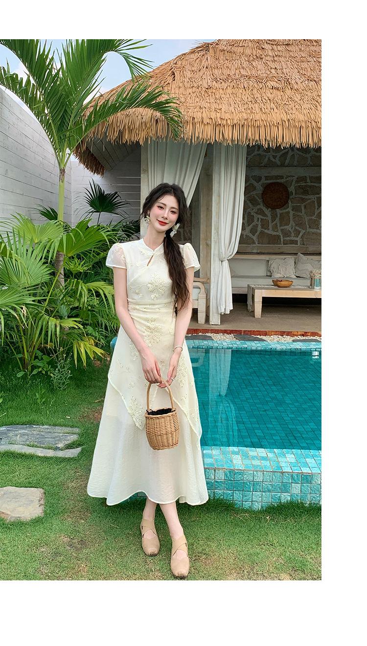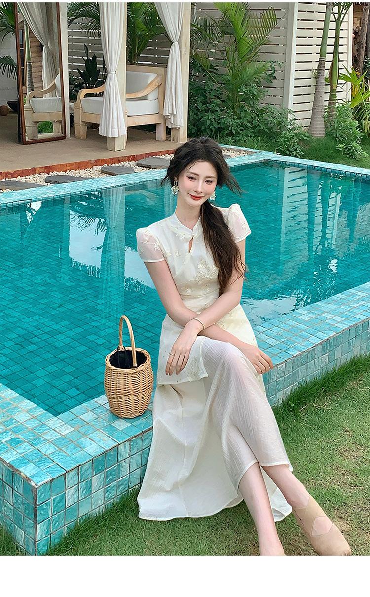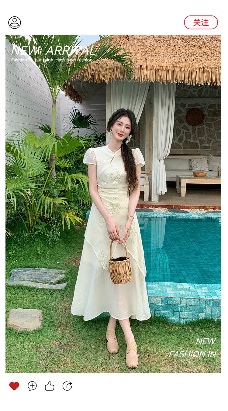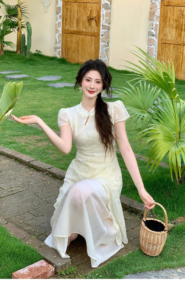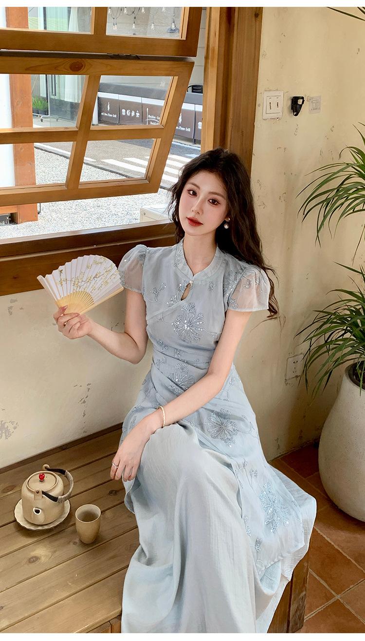 Verano Nuevo Estilo Chino Cuello Mao Asimétrico Falso Dos Piezas Cheongsam Mejorado