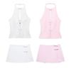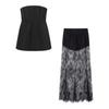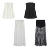 Conjunto de Vestido de Dos Piezas Europeo y Americano de Verano Nuevo Color Sólido Cintura Ajustada Sin Tirantes Cintura Alta Encaje Transparente