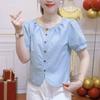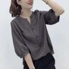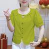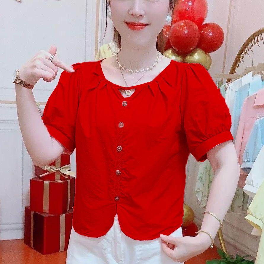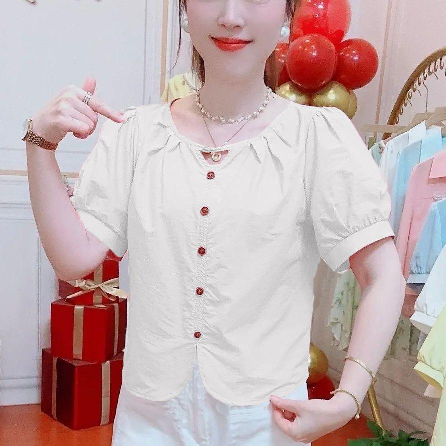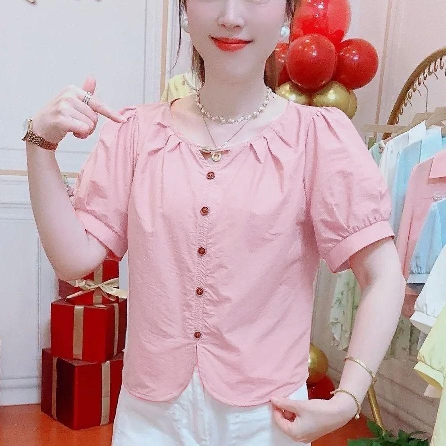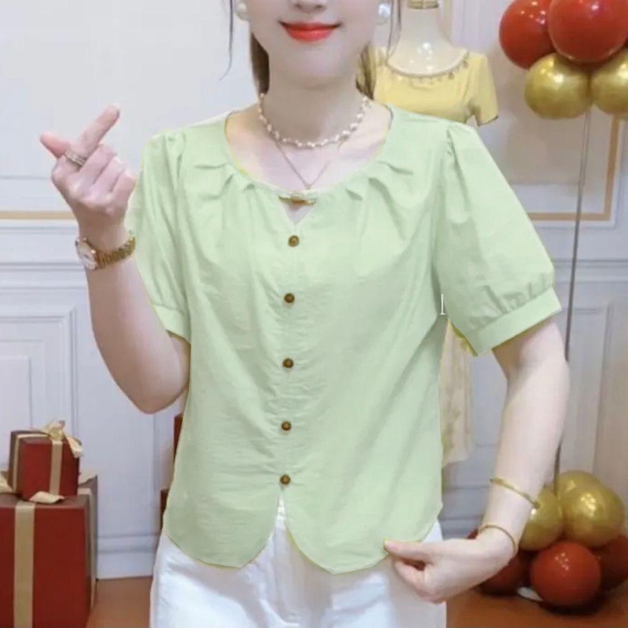 Camisas de Manga Corta para Mujer en Verano, Nueva Moda y Versátil Color Puro Corte Holgado Adelgazante y Tops que Reducen la Edad para Mujer, Exportación