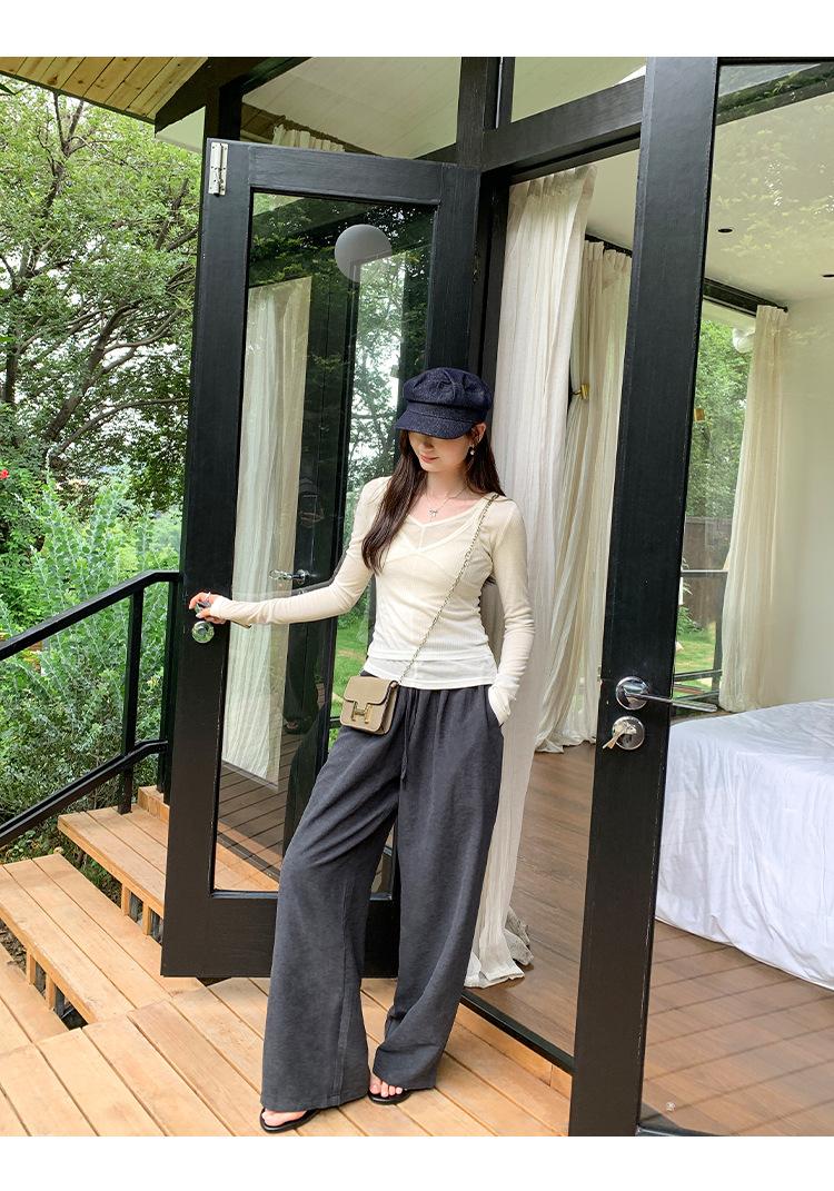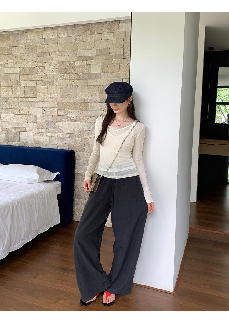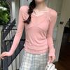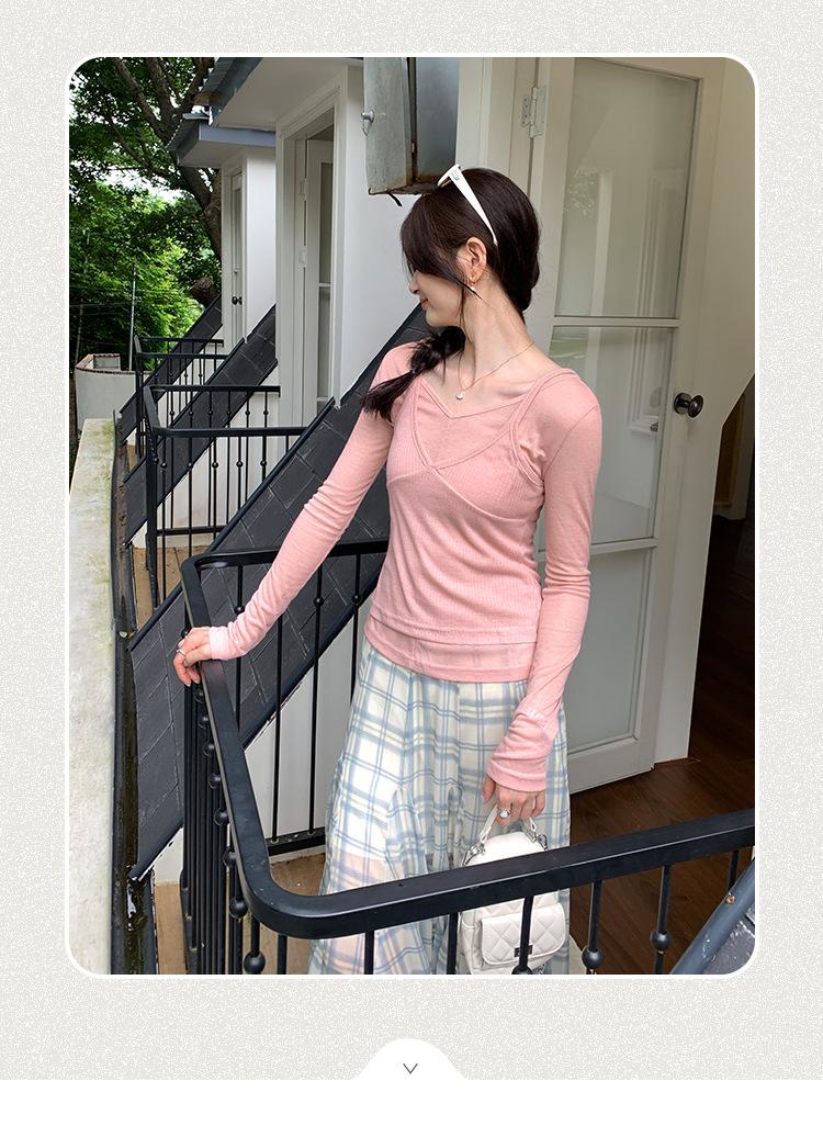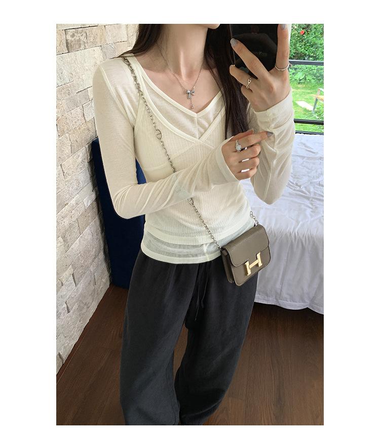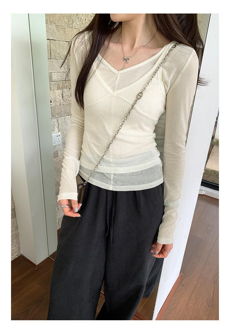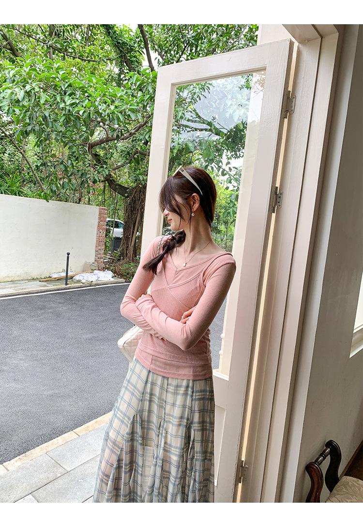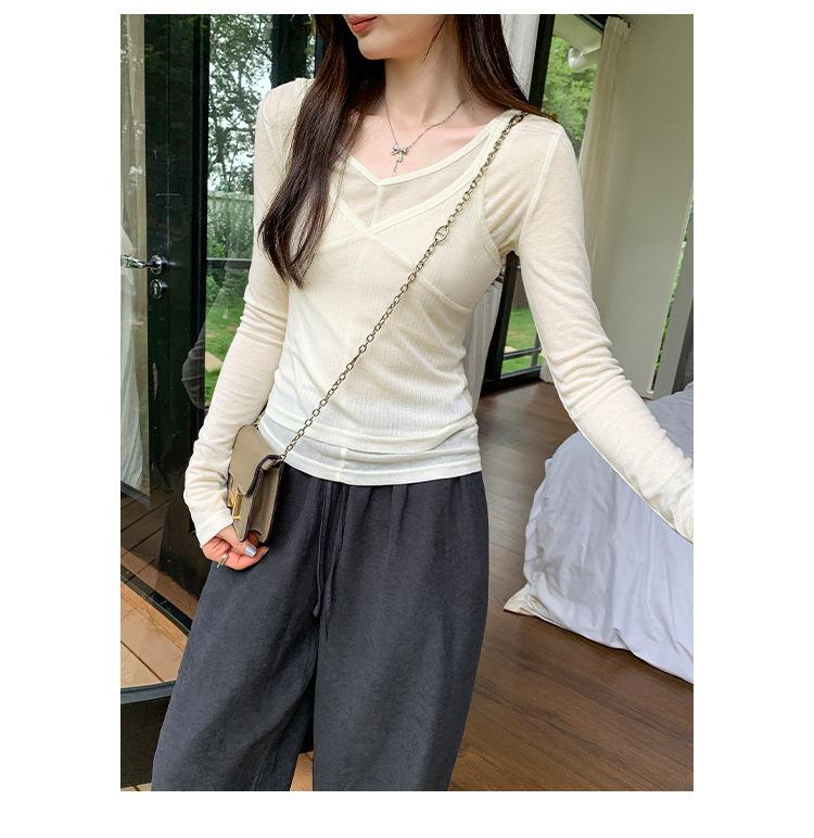 Rosa Francés Delgado Capa Exterior Chaleco Camiseta 2025 Nuevo Estilo Coreano Ajustado Cuello en V Manga Larga Top Set de Dos Piezas