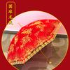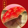 Paraguas Rojo Boda Paraguas de Boda Encaje Bordado Mango Largo Paraguas de Boda Chino Paraguas de Boda Retro Paraguas Nupcial