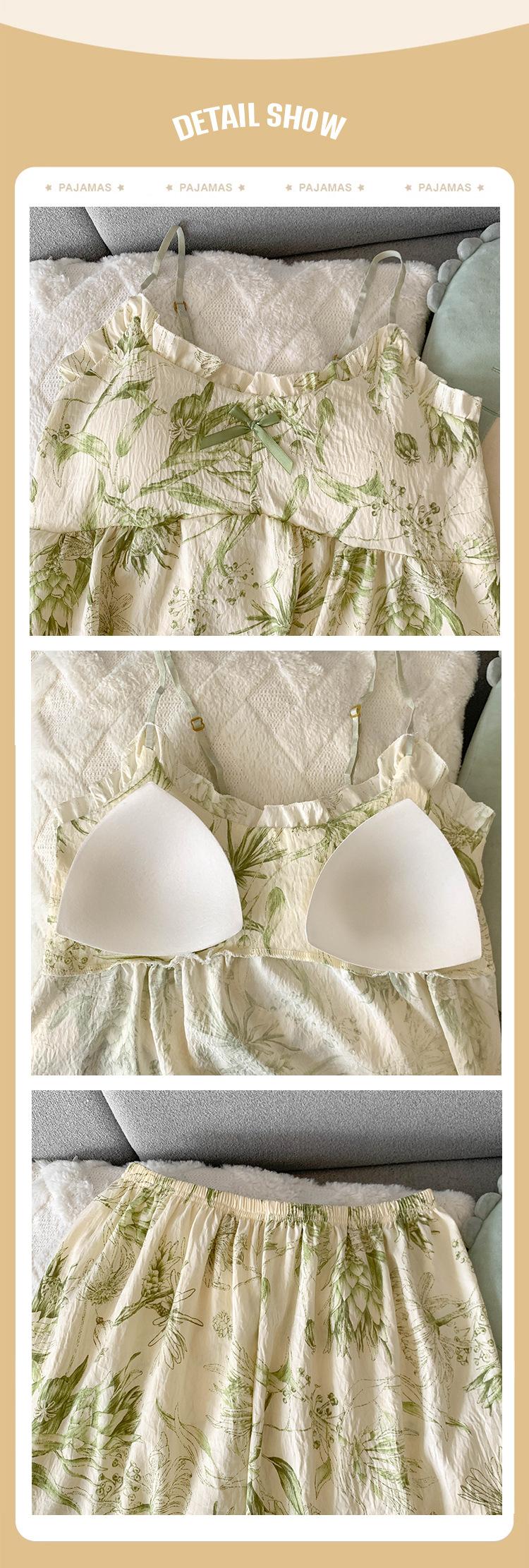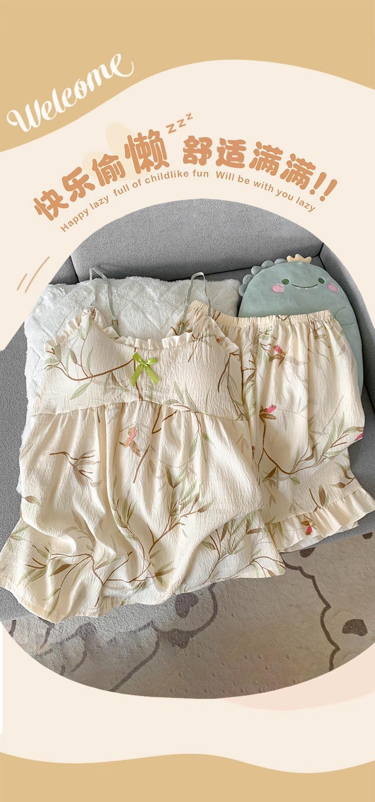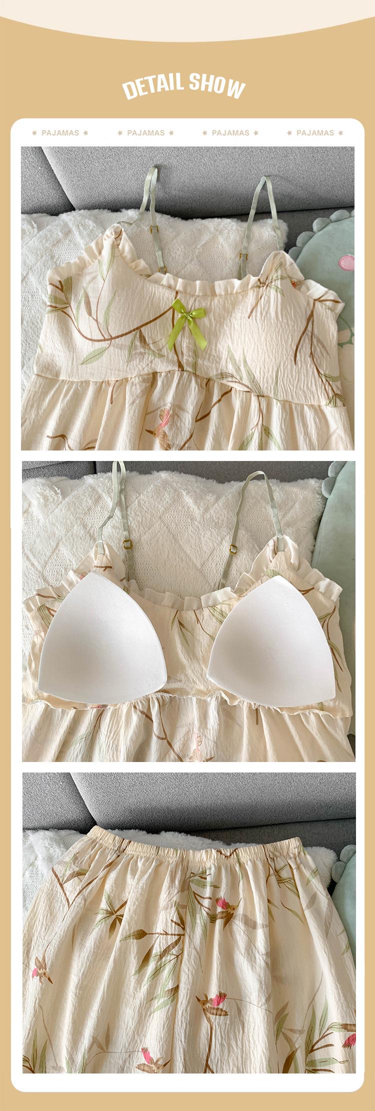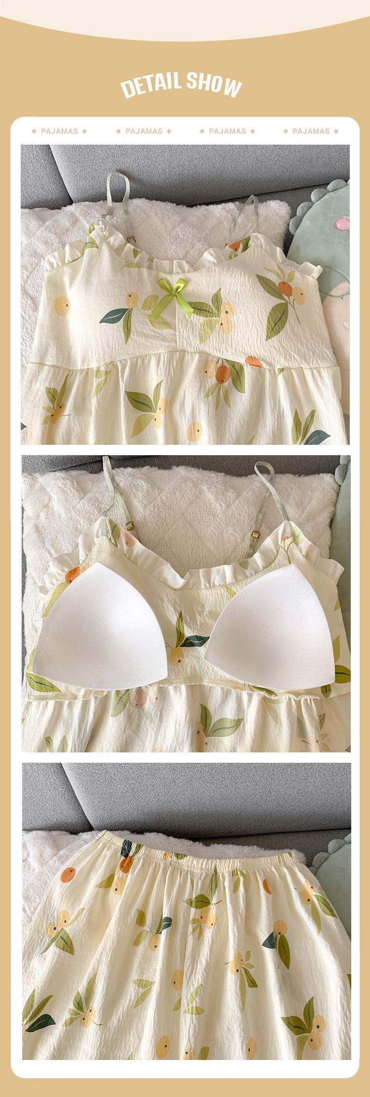 Pijama para Mujer Verano Algodón Nube Sexy Dulce Estilo Princesa Tirantes Shorts Traje con Almohadilla en el Pecho Ropa Nueva para el Hogar