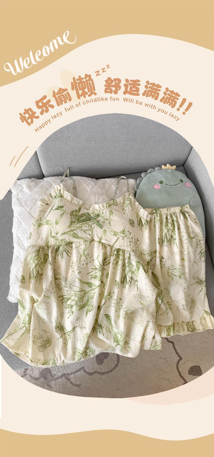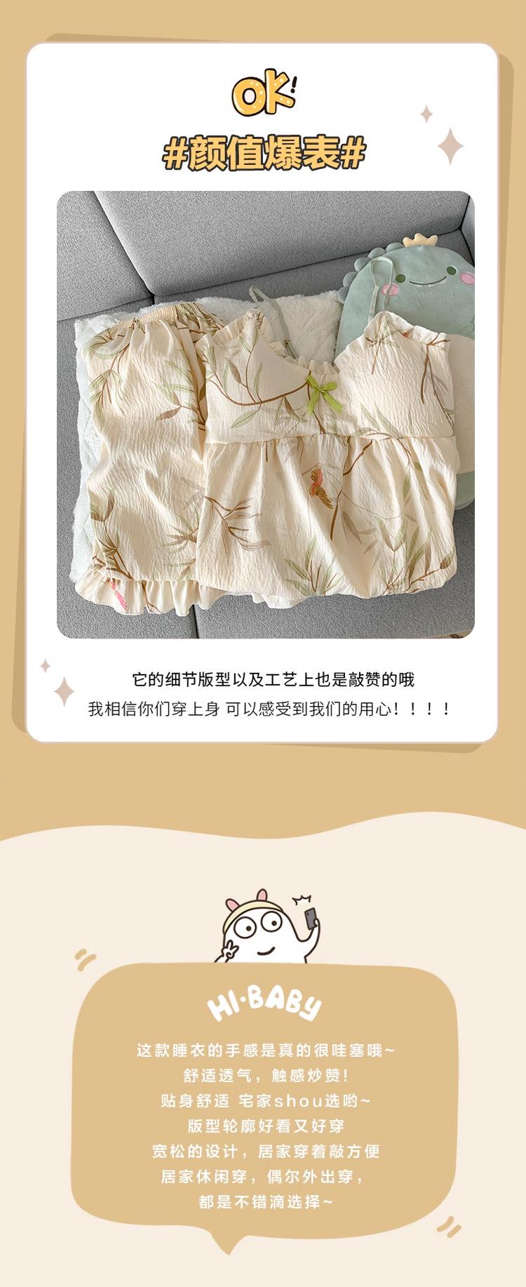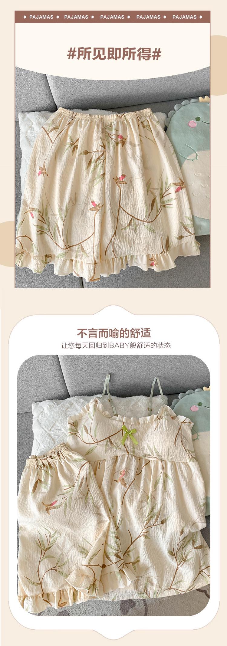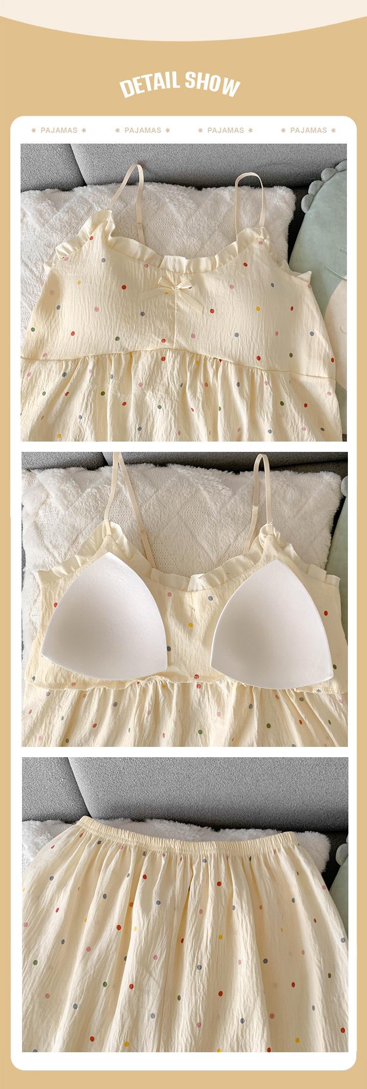 Pijama para Mujer Verano Algodón Nube Sexy Dulce Estilo Princesa Tirantes Shorts Traje con Almohadilla en el Pecho Ropa Nueva para el Hogar