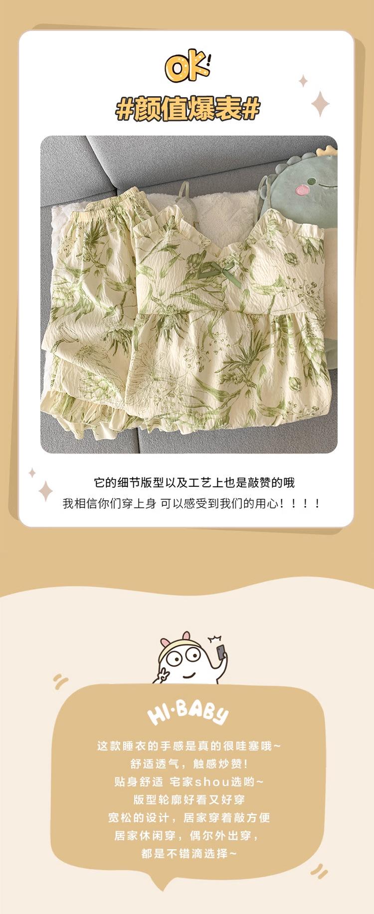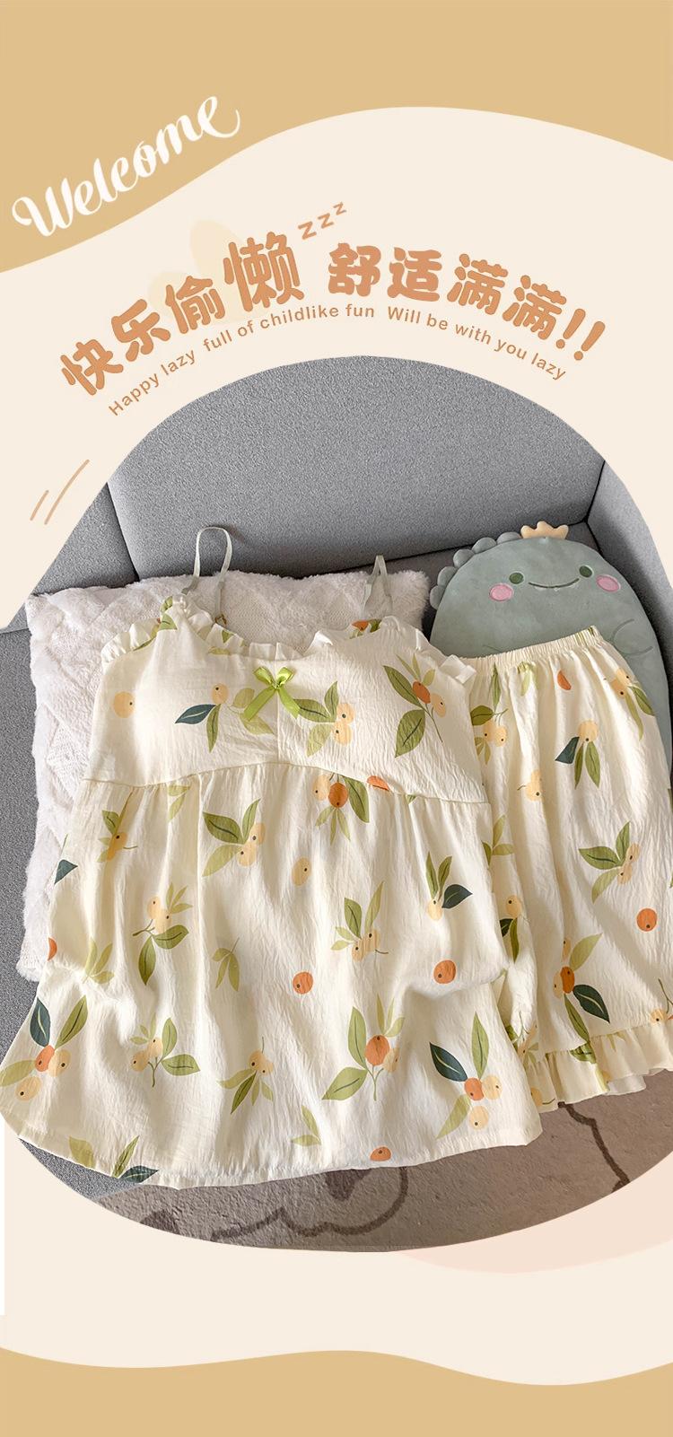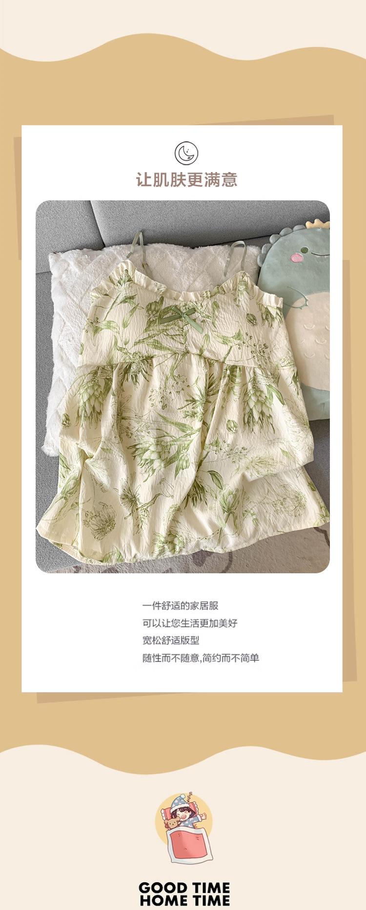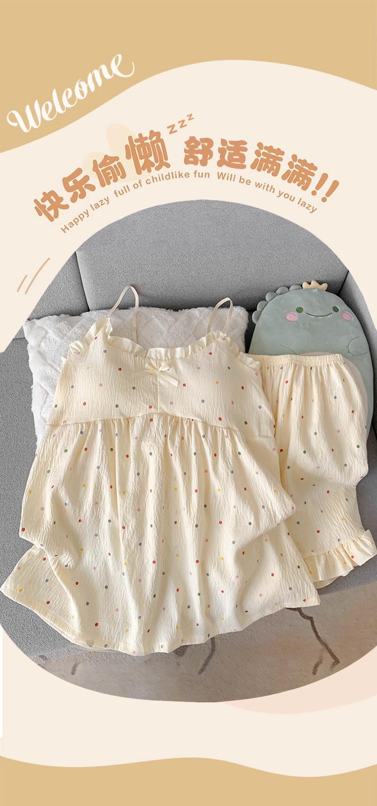 Pijama para Mujer Verano Algodón Nube Sexy Dulce Estilo Princesa Tirantes Shorts Traje con Almohadilla en el Pecho Ropa Nueva para el Hogar