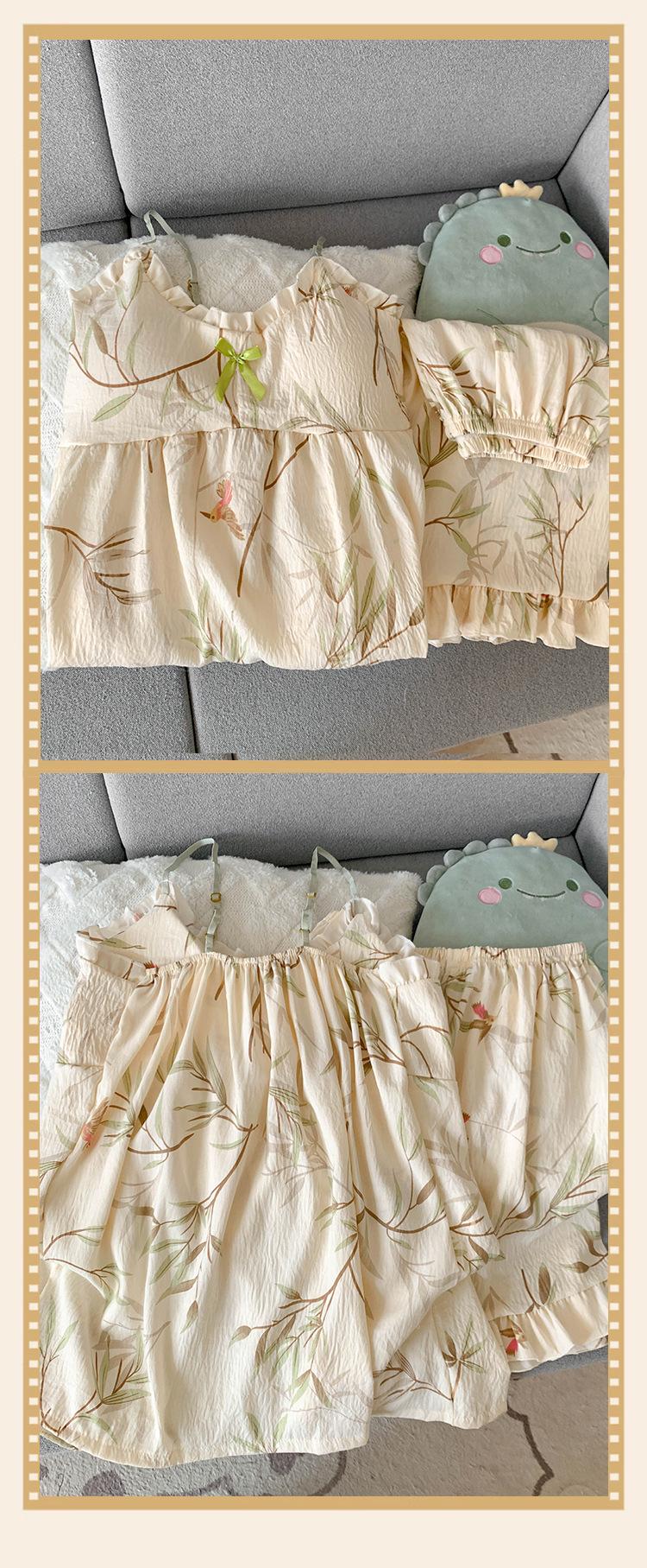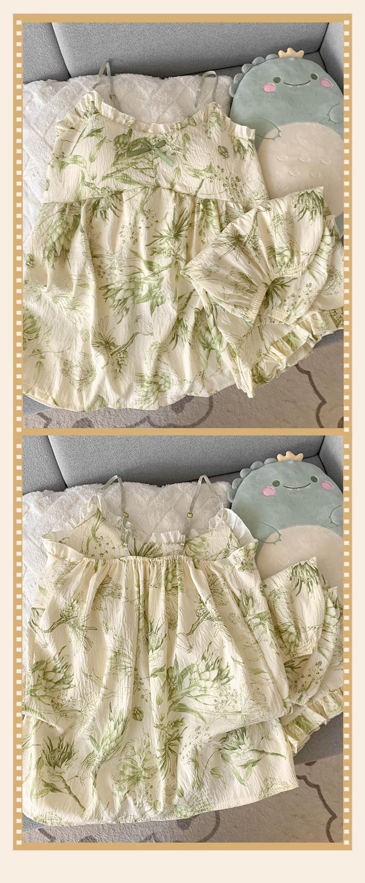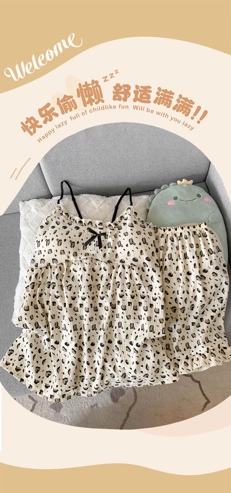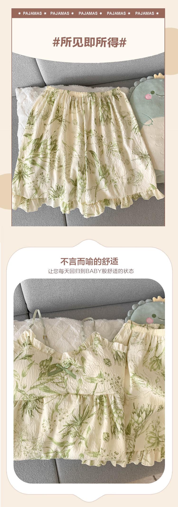 Pijama para Mujer Verano Algodón Nube Sexy Dulce Estilo Princesa Tirantes Shorts Traje con Almohadilla en el Pecho Ropa Nueva para el Hogar